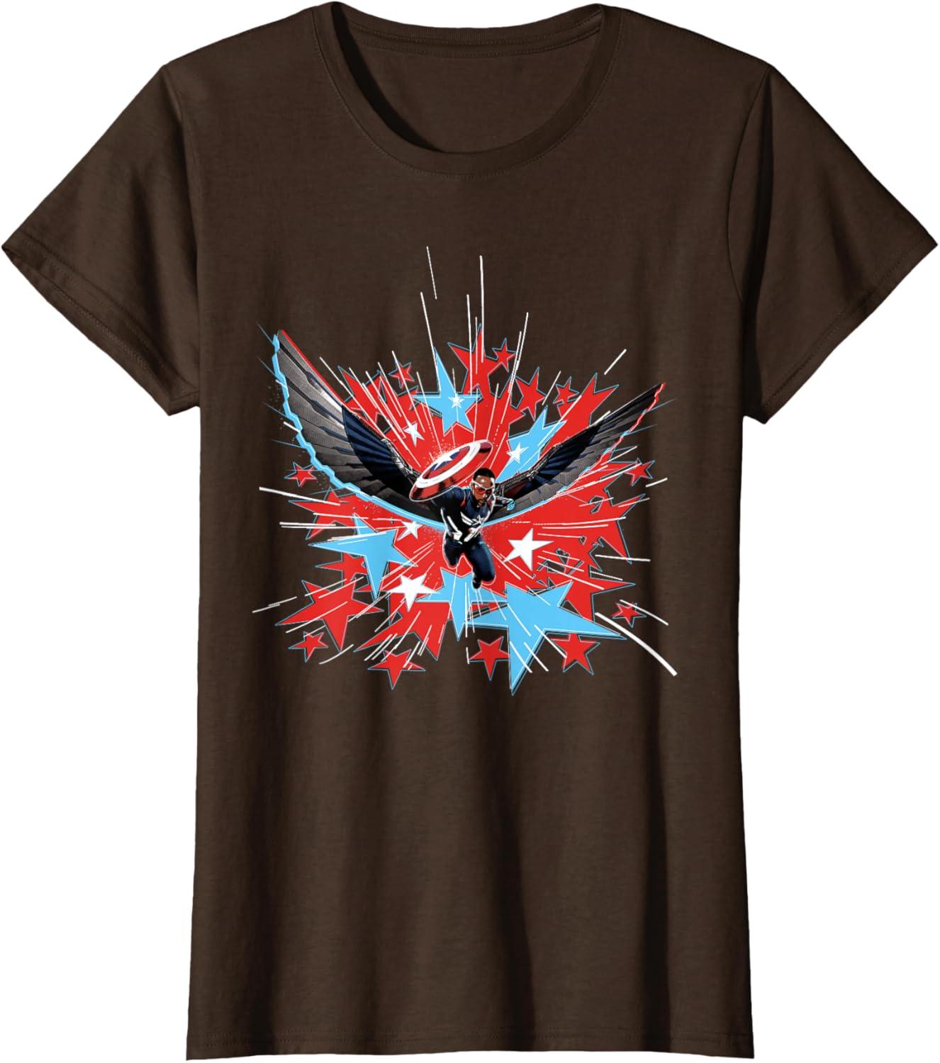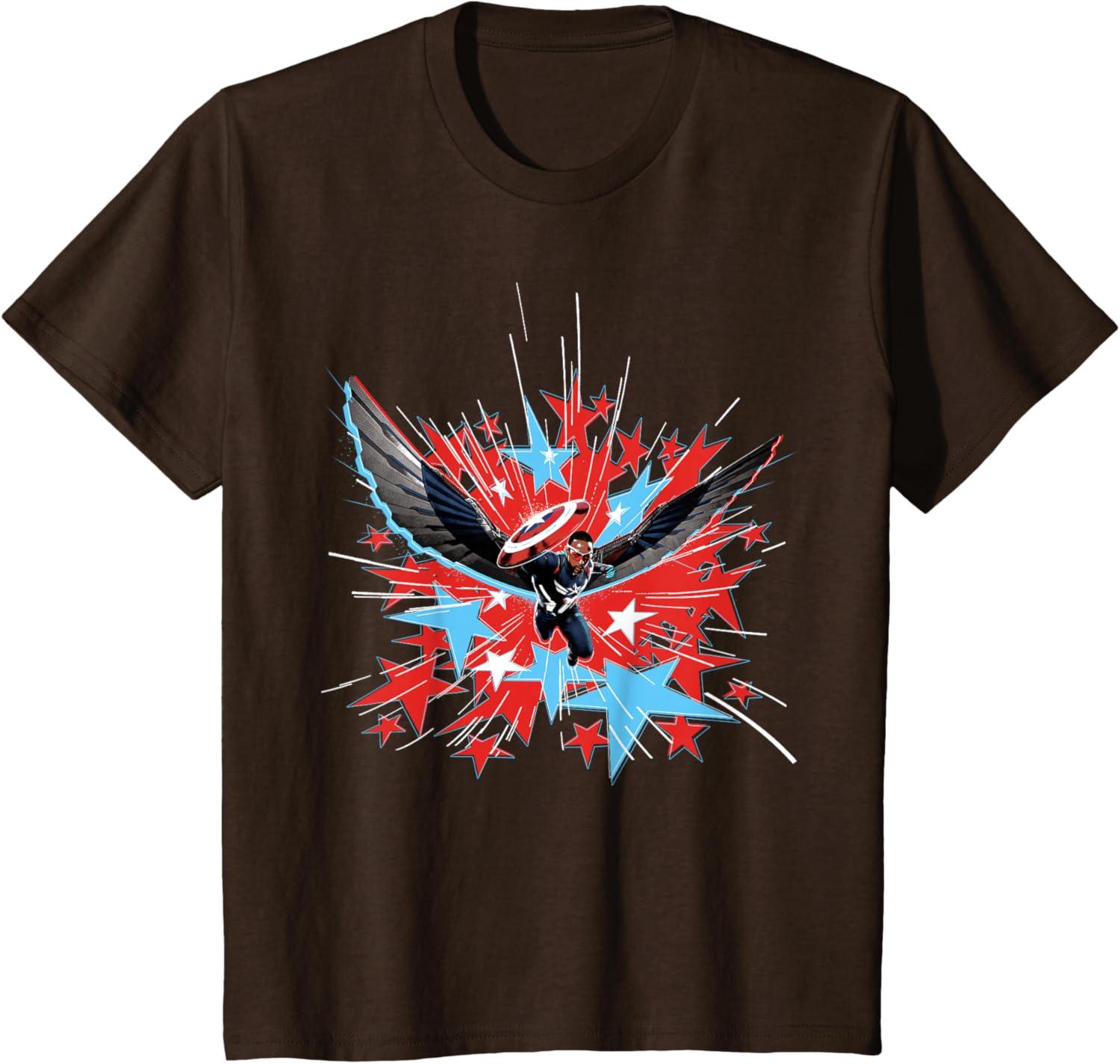 The new Captain America blasts into battle with a burst of patriotic red, white, and blue stars on this full-color official tee or hoodie from Marvel Studios’ blockbuster movie “Captain America: Brave New World”. The high-flying Sam Wilson takes up the mantle of Captain America in the thrilling and action-packed new adventure in the Marvel Cinematic Universe – look for the Joaquin Torres Falcon T-shirt design and get multiples for matching with friends and family on your trip to Avengers Campus at Disney California Adventure Park or any super destination! A great gift for a Marvel Super Heroes, Avengers, Captain America, or MCU movie fan. Available in youth and adult sizes. Find it in a t-shirt, premium t-shirt, tank top, v-neck, long sleeve tee, hoodie, and sweatshirt.