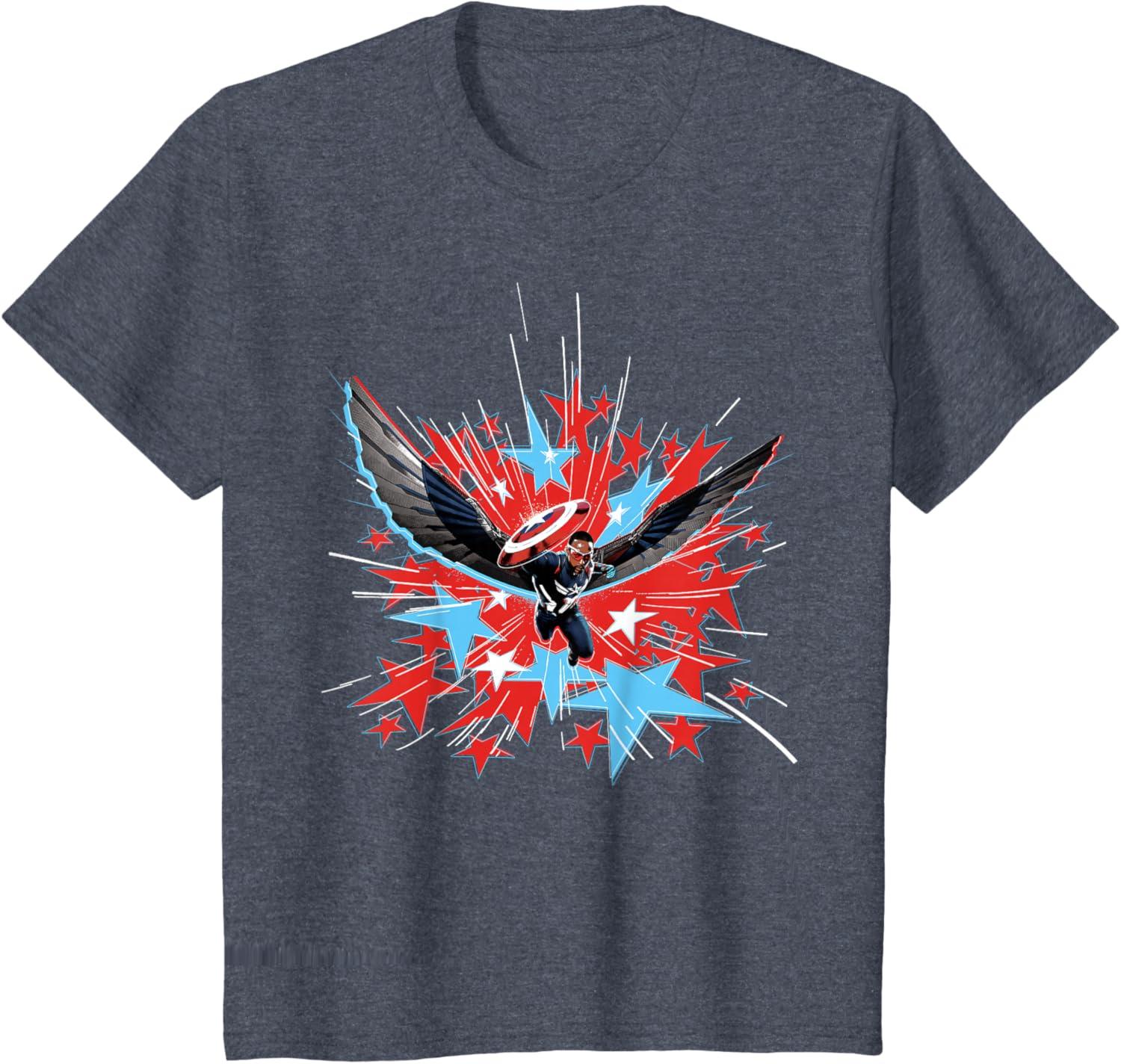 The new Captain America blasts into battle with a burst of patriotic red, white, and blue stars on this full-color official tee or hoodie from Marvel Studios’ blockbuster movie “Captain America: Brave New World”. The high-flying Sam Wilson takes up the mantle of Captain America in the thrilling and action-packed new adventure in the Marvel Cinematic Universe – look for the Joaquin Torres Falcon T-shirt design and get multiples for matching with friends and family on your trip to Avengers Campus at Disney California Adventure Park or any super destination! A great gift for a Marvel Super Heroes, Avengers, Captain America, or MCU movie fan. Available in youth and adult sizes. Find it in a t-shirt, premium t-shirt, tank top, v-neck, long sleeve tee, hoodie, and sweatshirt.