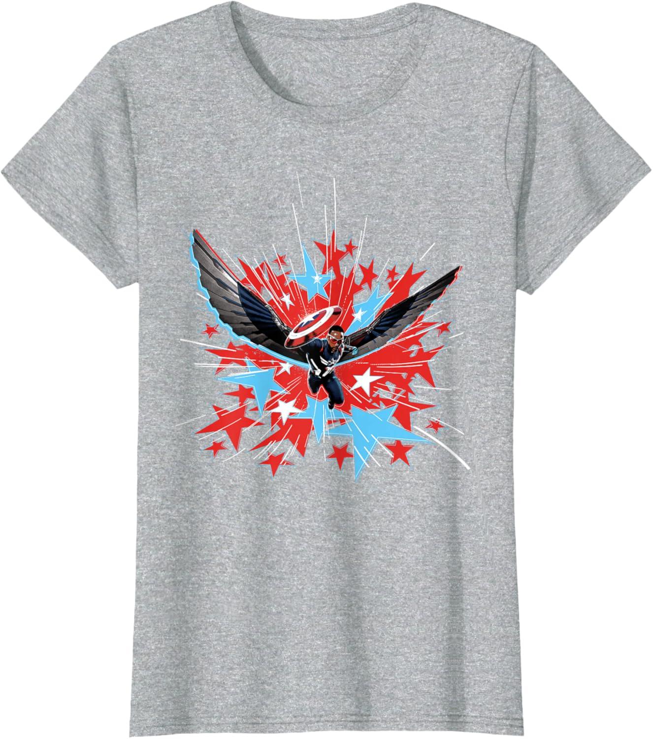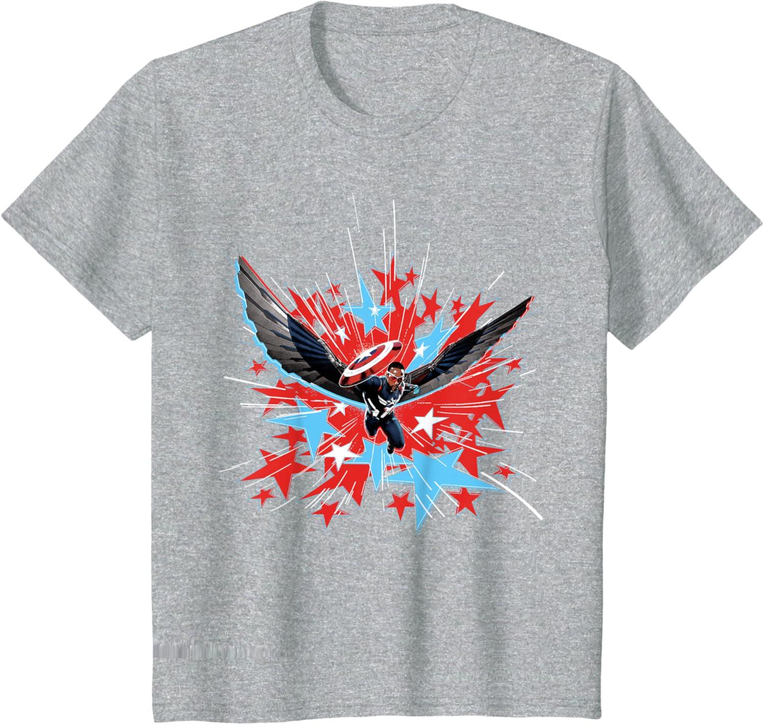 The new Captain America blasts into battle with a burst of patriotic red, white, and blue stars on this full-color official tee or hoodie from Marvel Studios’ blockbuster movie “Captain America: Brave New World”. The high-flying Sam Wilson takes up the mantle of Captain America in the thrilling and action-packed new adventure in the Marvel Cinematic Universe – look for the Joaquin Torres Falcon T-shirt design and get multiples for matching with friends and family on your trip to Avengers Campus at Disney California Adventure Park or any super destination! A great gift for a Marvel Super Heroes, Avengers, Captain America, or MCU movie fan. Available in youth and adult sizes. Find it in a t-shirt, premium t-shirt, tank top, v-neck, long sleeve tee, hoodie, and sweatshirt.