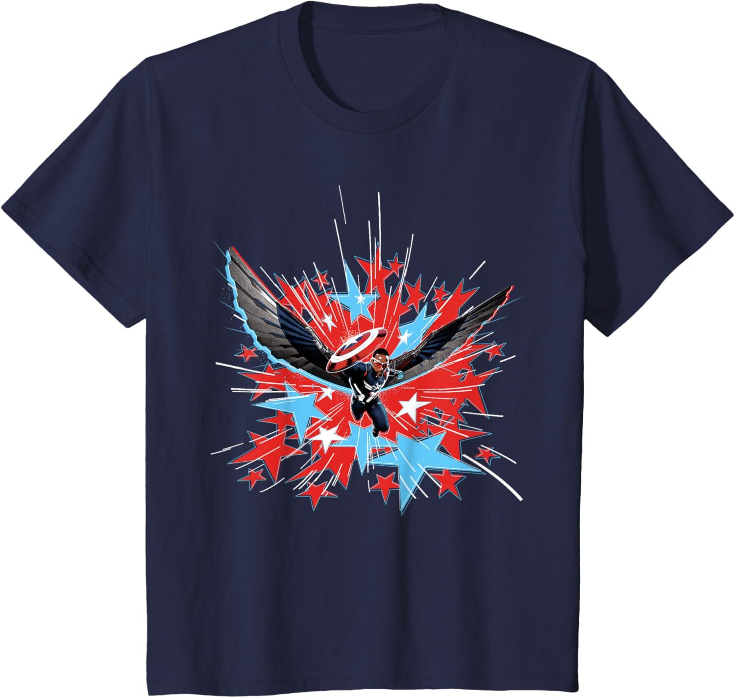 The new Captain America blasts into battle with a burst of patriotic red, white, and blue stars on this full-color official tee or hoodie from Marvel Studios’ blockbuster movie “Captain America: Brave New World”. The high-flying Sam Wilson takes up the mantle of Captain America in the thrilling and action-packed new adventure in the Marvel Cinematic Universe – look for the Joaquin Torres Falcon T-shirt design and get multiples for matching with friends and family on your trip to Avengers Campus at Disney California Adventure Park or any super destination! A great gift for a Marvel Super Heroes, Avengers, Captain America, or MCU movie fan. Available in youth and adult sizes. Find it in a t-shirt, premium t-shirt, tank top, v-neck, long sleeve tee, hoodie, and sweatshirt.