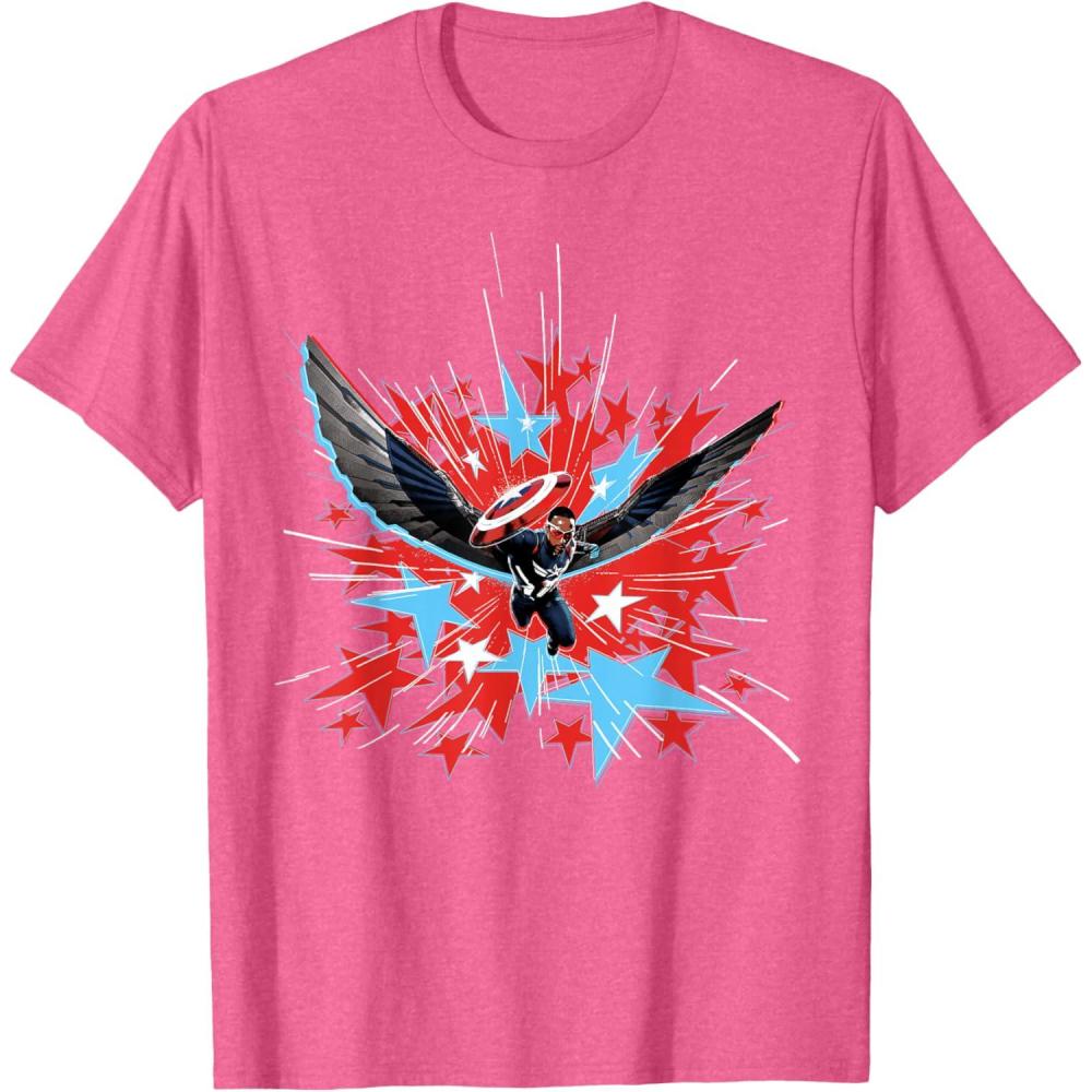 The new Captain America blasts into battle with a burst of patriotic red, white, and blue stars on this full-color official tee or hoodie from Marvel Studios’ blockbuster movie “Captain America: Brave New World”. The high-flying Sam Wilson takes up the mantle of Captain America in the thrilling and action-packed new adventure in the Marvel Cinematic Universe – look for the Joaquin Torres Falcon T-shirt design and get multiples for matching with friends and family on your trip to Avengers Campus at Disney California Adventure Park or any super destination! A great gift for a Marvel Super Heroes, Avengers, Captain America, or MCU movie fan. Available in youth and adult sizes. Find it in a t-shirt, premium t-shirt, tank top, v-neck, long sleeve tee, hoodie, and sweatshirt.