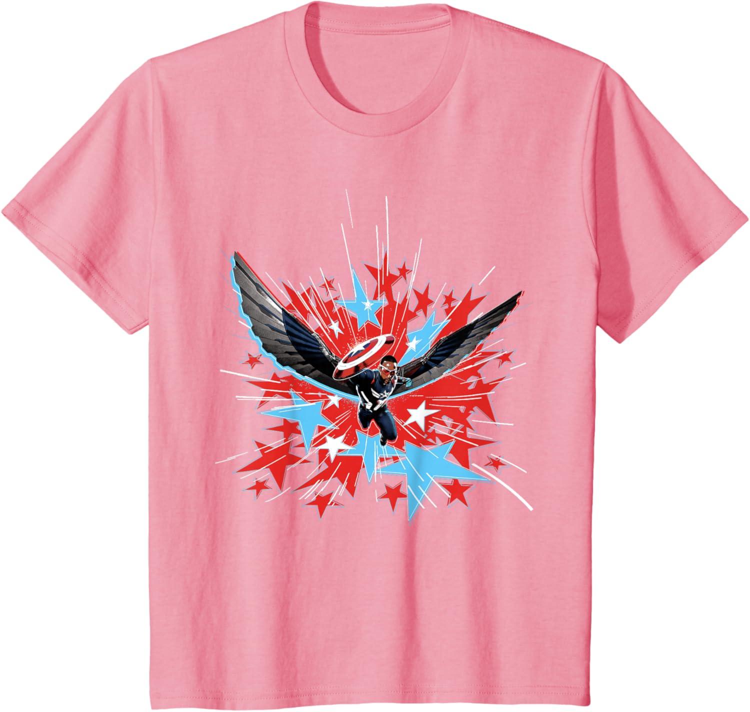 The new Captain America blasts into battle with a burst of patriotic red, white, and blue stars on this full-color official tee or hoodie from Marvel Studios’ blockbuster movie “Captain America: Brave New World”. The high-flying Sam Wilson takes up the mantle of Captain America in the thrilling and action-packed new adventure in the Marvel Cinematic Universe – look for the Joaquin Torres Falcon T-shirt design and get multiples for matching with friends and family on your trip to Avengers Campus at Disney California Adventure Park or any super destination! A great gift for a Marvel Super Heroes, Avengers, Captain America, or MCU movie fan. Available in youth and adult sizes. Find it in a t-shirt, premium t-shirt, tank top, v-neck, long sleeve tee, hoodie, and sweatshirt.