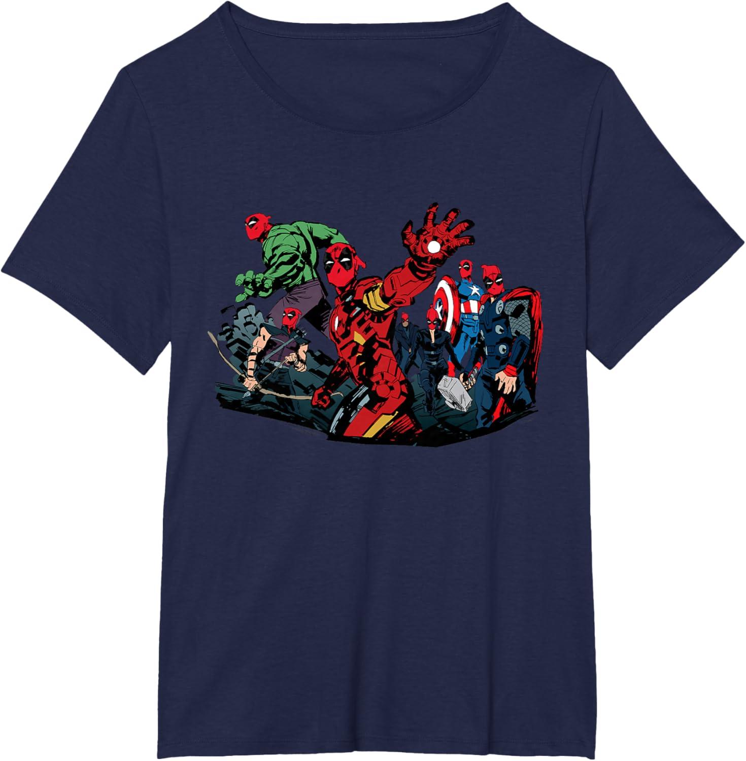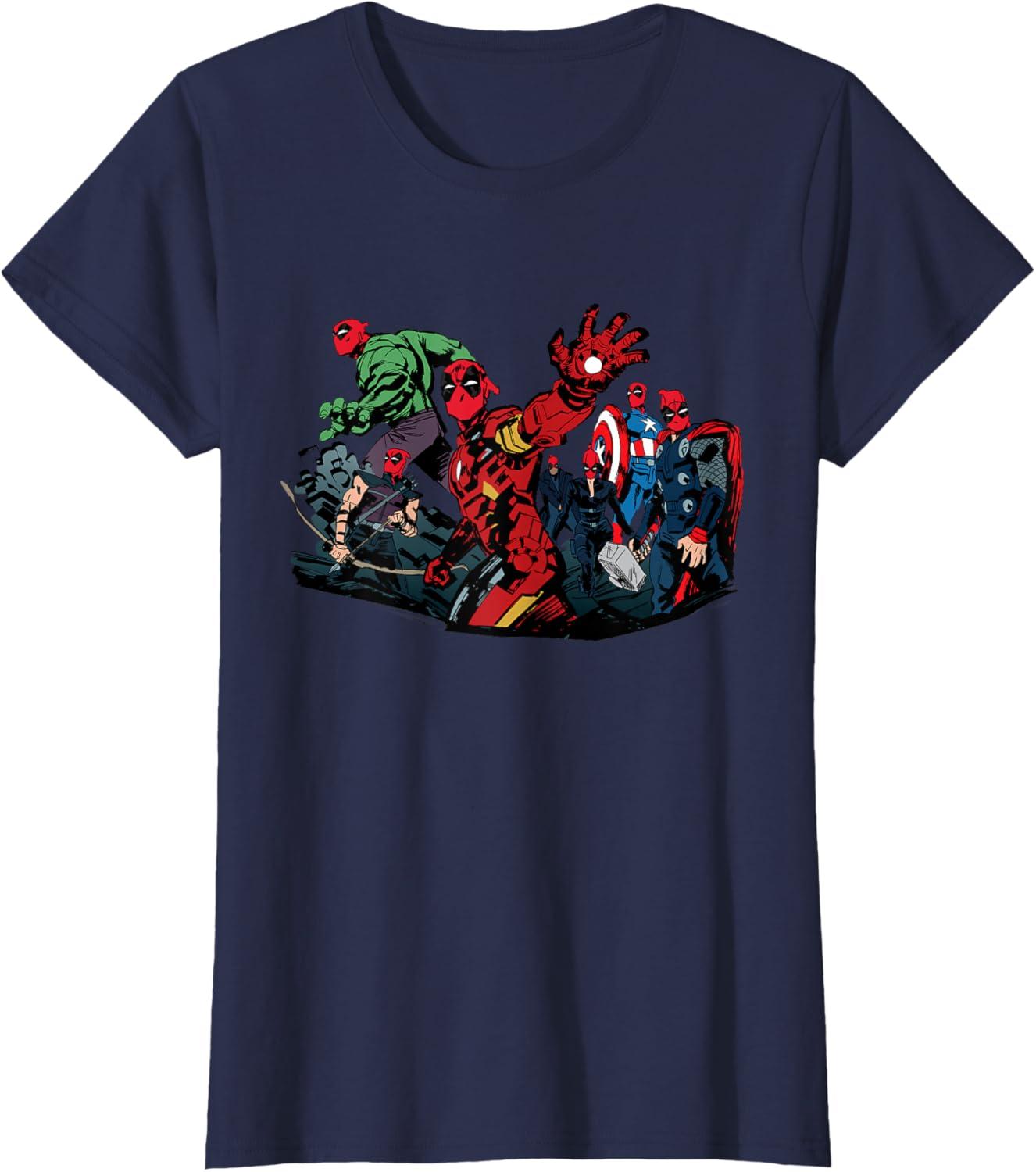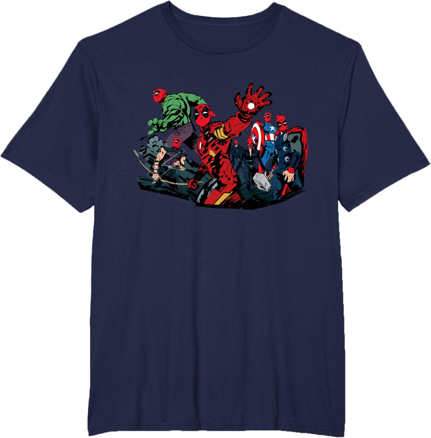 Marvel Studios Deadpool & Wolverine Avengers Assemble Homage T-Shirt(Navy Blue)