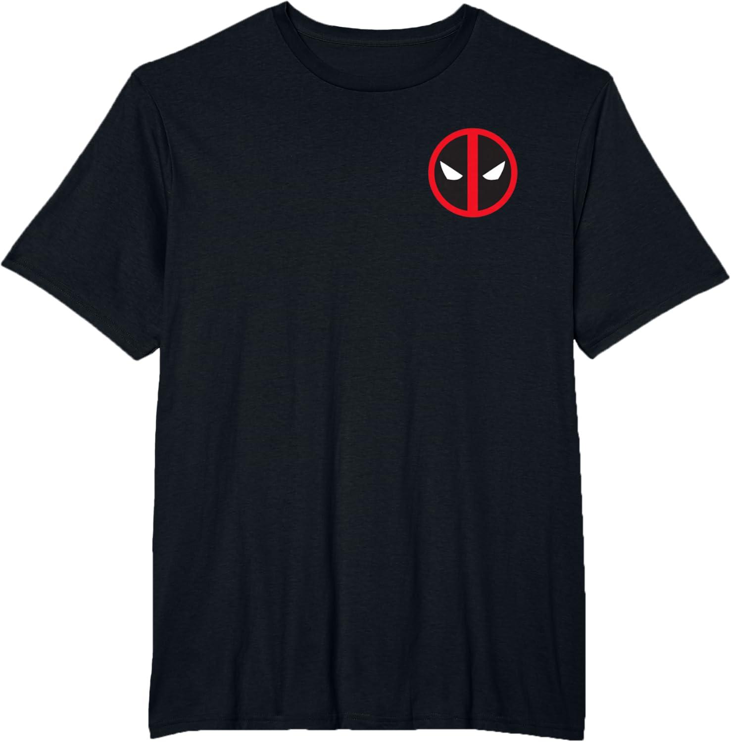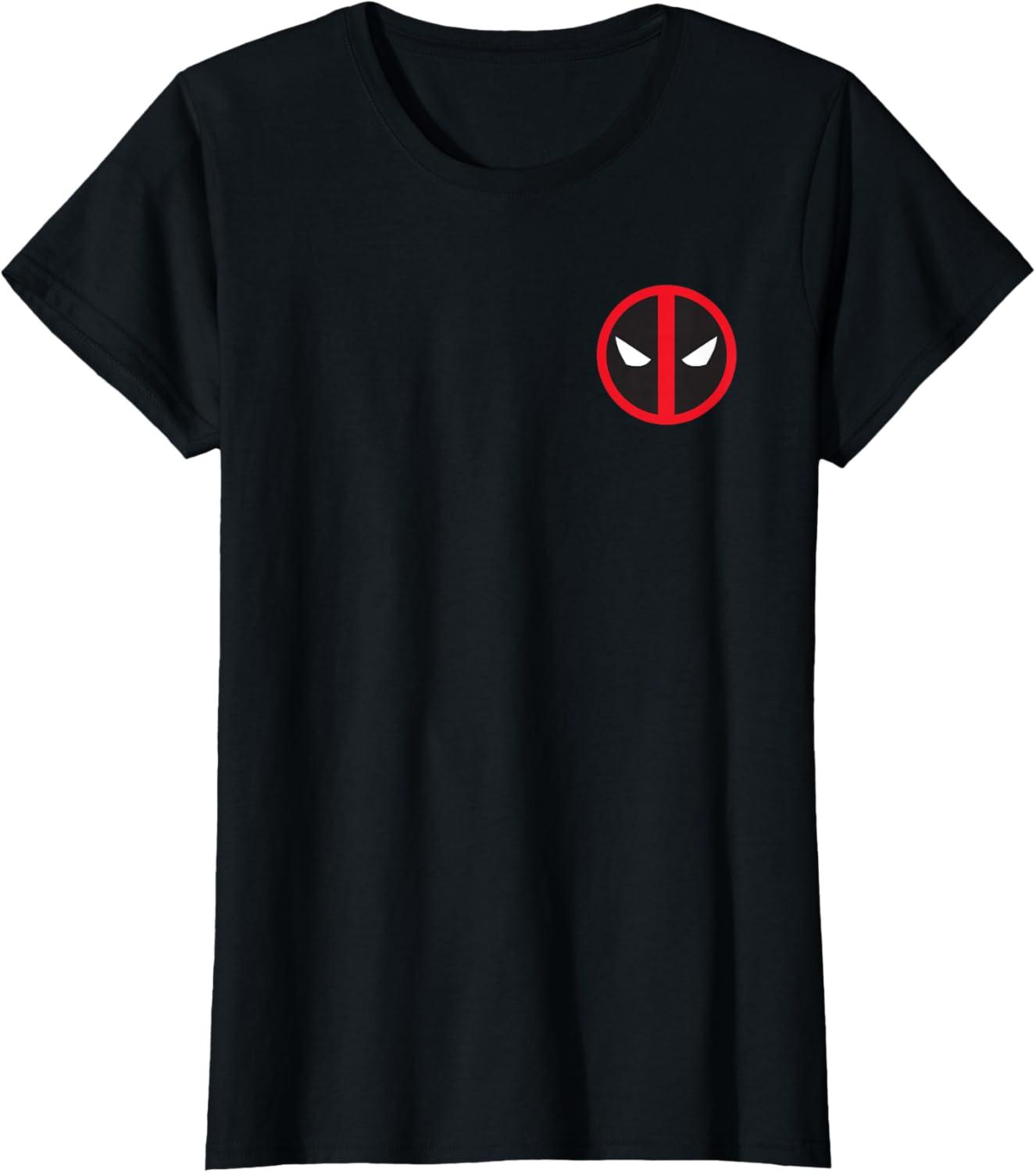Wear Deadpool’s famous symbol on this official tee or hoodie from the blockbuster new Marvel Studios movie “Deadpool & Wolverine”, featuring the Merc with a Mouth’s iconic mask-in-a-circle logo at upper left in bold, bright red, black, and white. A great gift for a Deadpool or Marvel Cinematic Universe (MCU) fan! Get multiples to coordinate and match with friends and family for even more superhero-sized fun. Find it in a t-shirt, premium t-shirt, tank top, v-neck, long sleeve tee, hoodie, and sweatshirt.