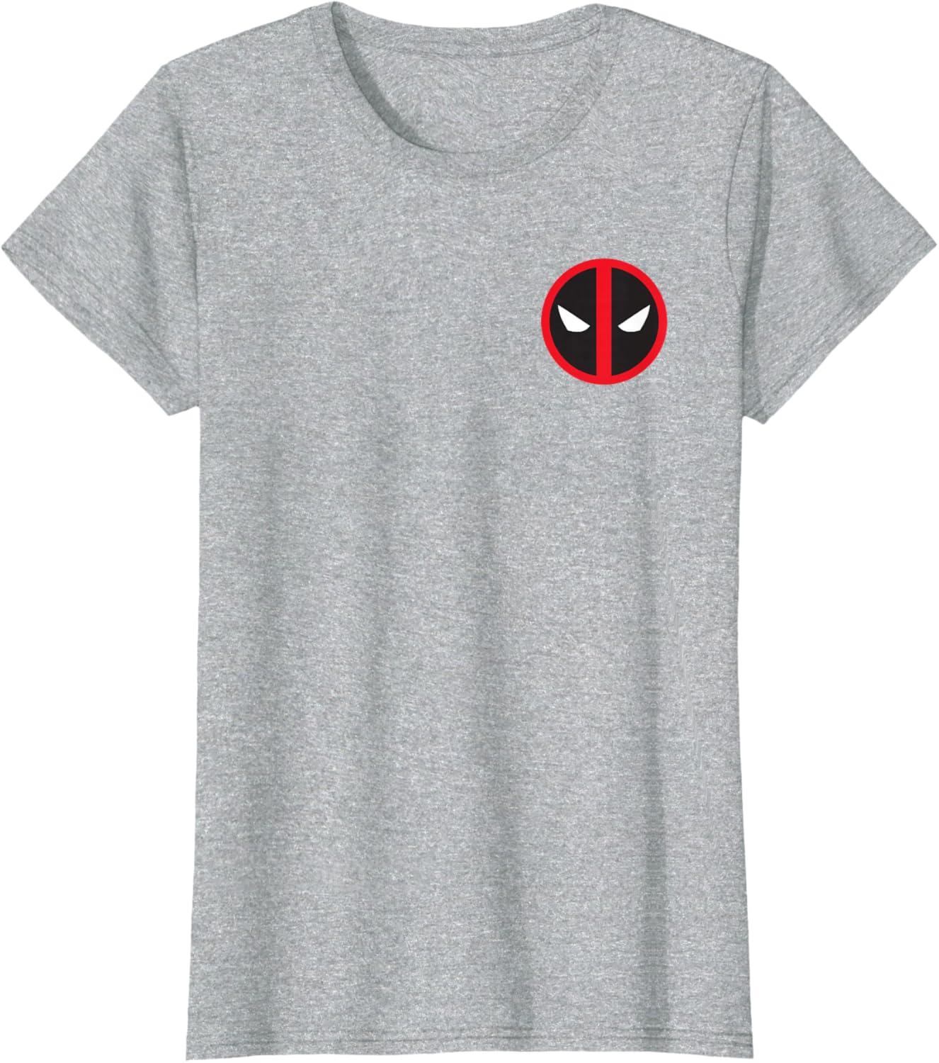 Wear Deadpool’s famous symbol on this official tee or hoodie from the blockbuster new Marvel Studios movie “Deadpool & Wolverine”, featuring the Merc with a Mouth’s iconic mask-in-a-circle logo at upper left in bold, bright red, black, and white. A great gift for a Deadpool or Marvel Cinematic Universe (MCU) fan! Get multiples to coordinate and match with friends and family for even more superhero-sized fun. Find it in a t-shirt, premium t-shirt, tank top, v-neck, long sleeve tee, hoodie, and sweatshirt.