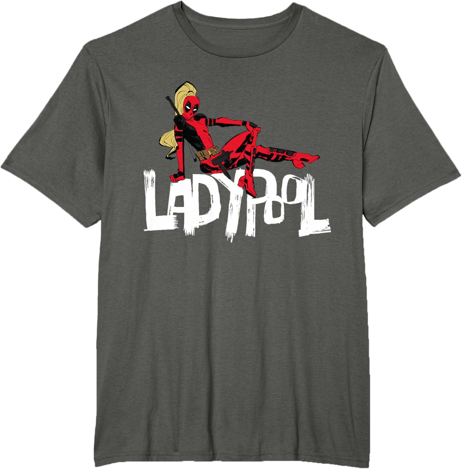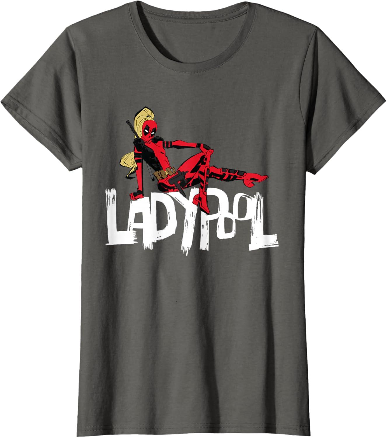 Look out for Ladypool! Blasting out of the blockbuster new Marvel Studios movie “Deadpool & Wolverine”, this member of the multiversal Deadpool Corps is ready for action on an official Marvel tee or hoodie, featuring an eye-catching illustration of the deadly Deadpool variant seated on top of her name. A great gift for a Deadpool, Ladypool, or Marvel Cinematic Universe (MCU) fan. Get multiples to coordinate and match with friends and family for even more superhero-sized fun! Find it in a t-shirt, premium t-shirt, tank top, v-neck, long sleeve tee, hoodie, and sweatshirt.