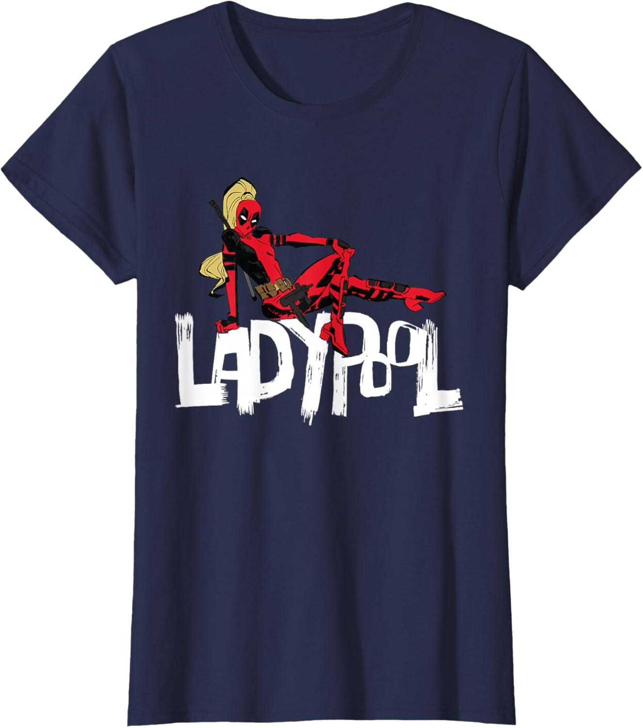 Look out for Ladypool! Blasting out of the blockbuster new Marvel Studios movie “Deadpool & Wolverine”, this member of the multiversal Deadpool Corps is ready for action on an official Marvel tee or hoodie, featuring an eye-catching illustration of the deadly Deadpool variant seated on top of her name. A great gift for a Deadpool, Ladypool, or Marvel Cinematic Universe (MCU) fan. Get multiples to coordinate and match with friends and family for even more superhero-sized fun! Find it in a t-shirt, premium t-shirt, tank top, v-neck, long sleeve tee, hoodie, and sweatshirt.