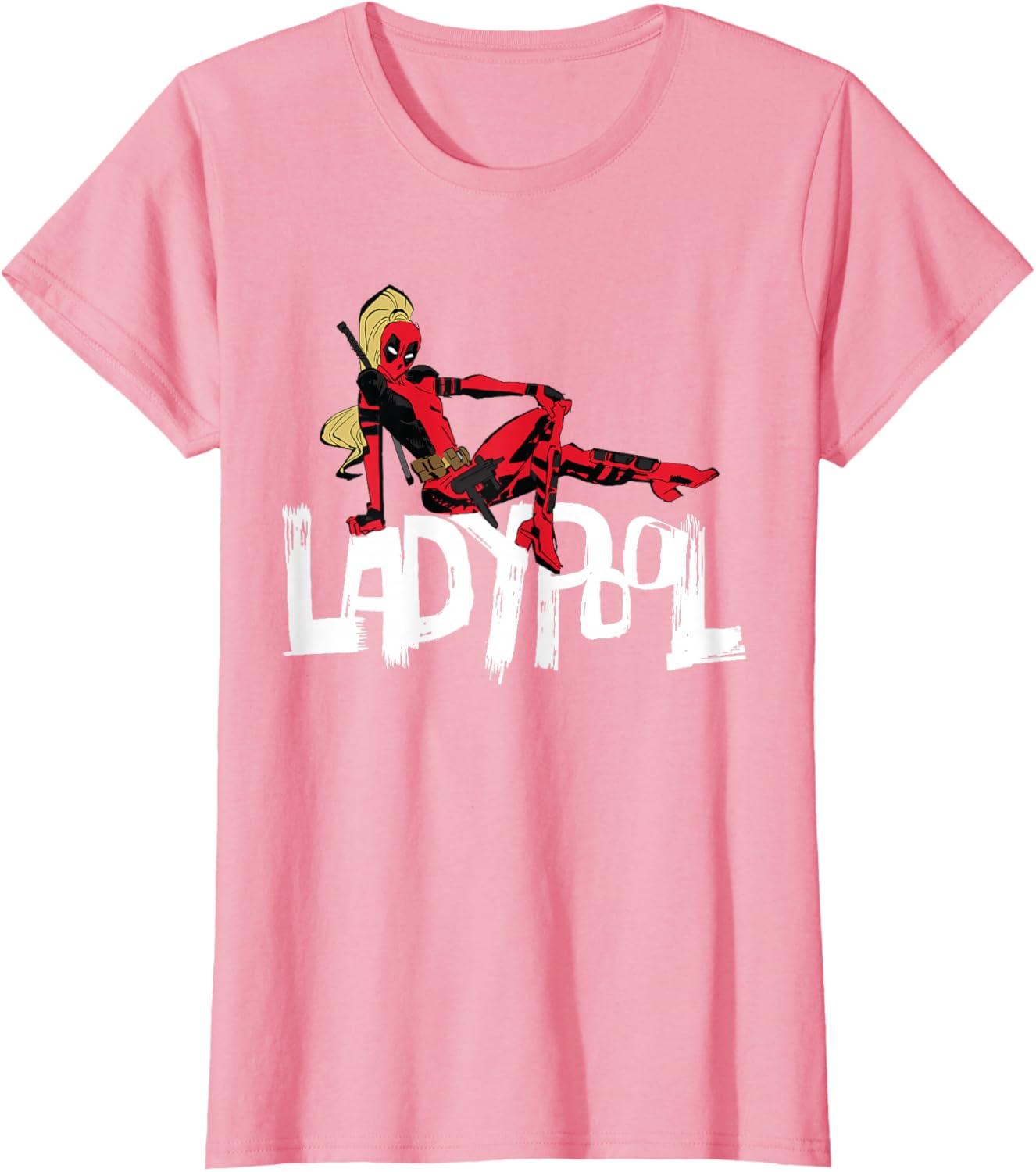 Look out for Ladypool! Blasting out of the blockbuster new Marvel Studios movie “Deadpool & Wolverine”, this member of the multiversal Deadpool Corps is ready for action on an official Marvel tee or hoodie, featuring an eye-catching illustration of the deadly Deadpool variant seated on top of her name. A great gift for a Deadpool, Ladypool, or Marvel Cinematic Universe (MCU) fan. Get multiples to coordinate and match with friends and family for even more superhero-sized fun! Find it in a t-shirt, premium t-shirt, tank top, v-neck, long sleeve tee, hoodie, and sweatshirt.
