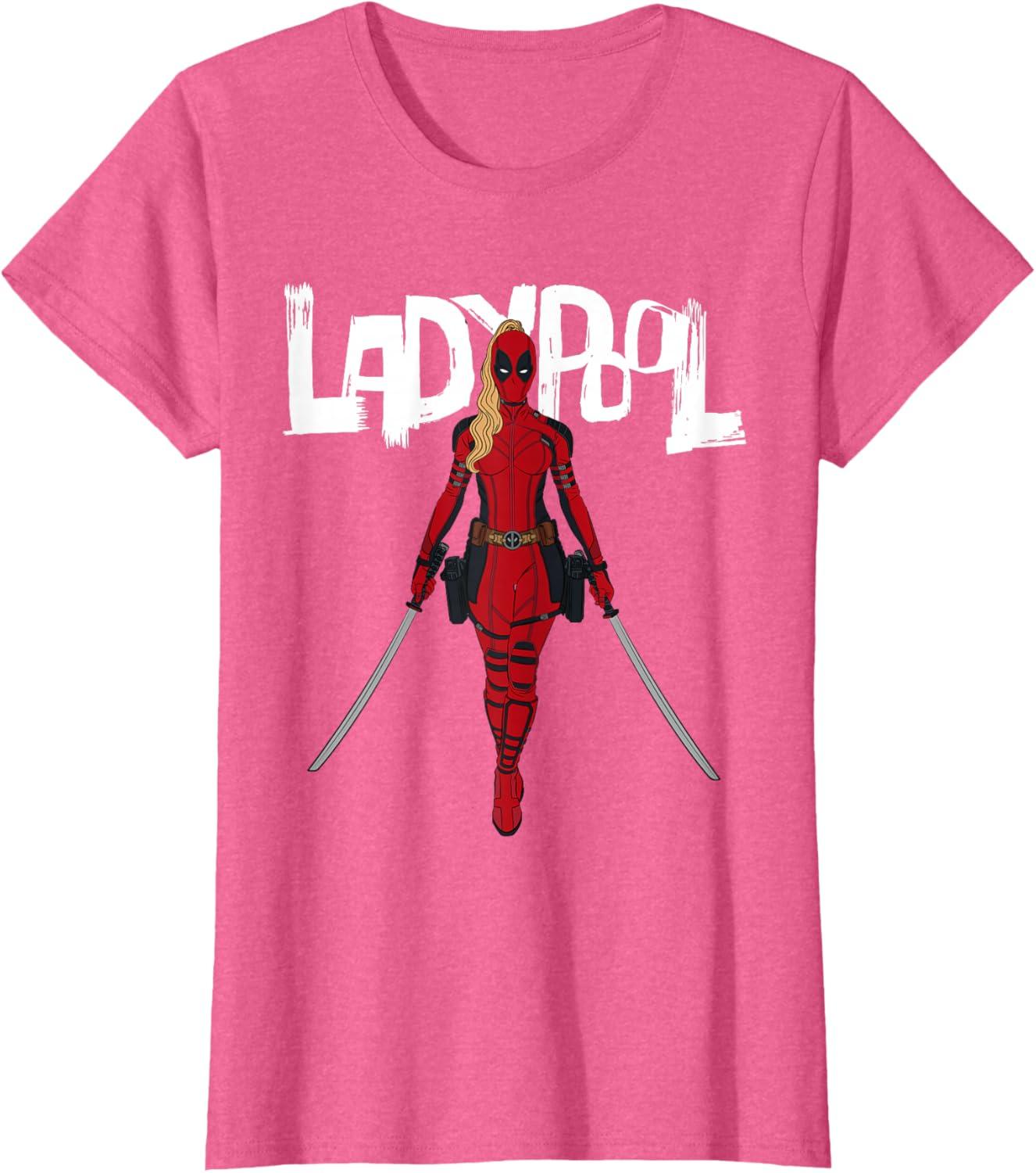 Look out for Ladypool! Blasting out of the blockbuster new Marvel Studios movie “Deadpool & Wolverine”, this member of the multiversal Deadpool Corps is ready for action on an official Marvel tee or hoodie, featuring an eye-catching illustration of the deadly Deadpool variant approaching with her twin katana swords in hand and her name in the background. A great gift for a Deadpool, Ladypool, or Marvel Cinematic Universe (MCU) fan. Get multiples to coordinate and match with friends and family for even more superhero-sized fun! Find it in a t-shirt, premium t-shirt, tank top, v-neck, long sleeve tee, hoodie, and sweatshirt.