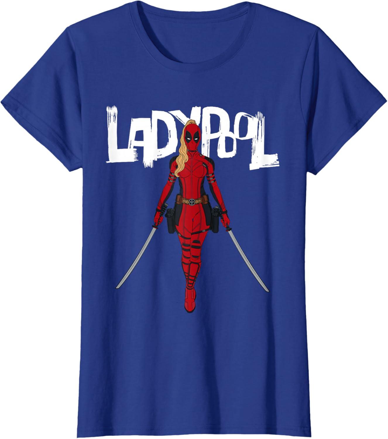 imageMarvel Studios Deadpool ampamp Wolverine Ladypool with Swords TShirtRoyal Blue