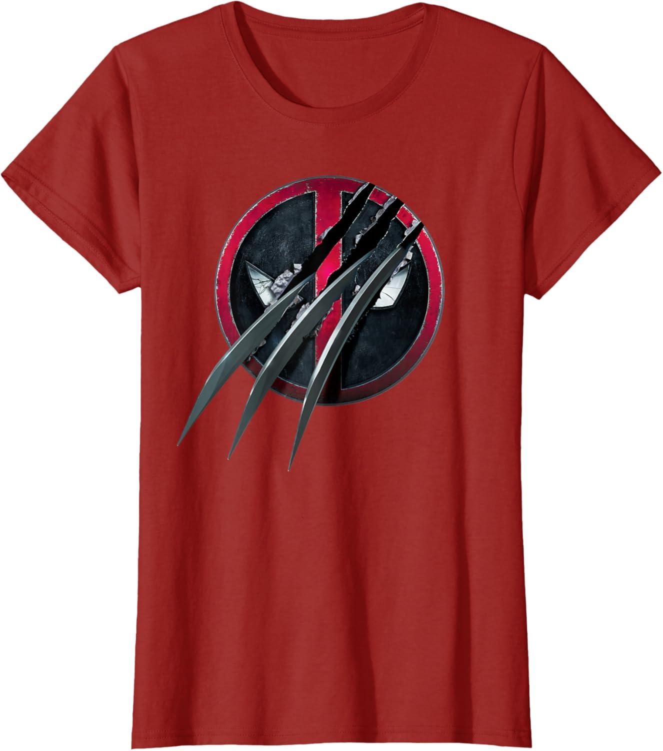 Marvel Studios Deadpool & Wolverine Slashed Icon with Claws T-Shirt(Cranberry Red)