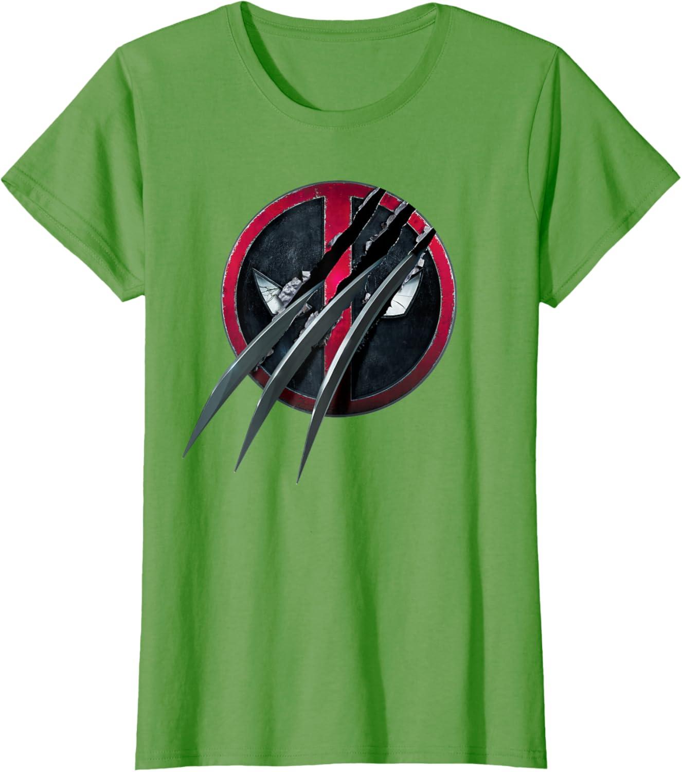 Be the first to review “Marvel Studios Deadpool & Wolverine Slashed Icon with Claws T-Shirt(Grass Green)”