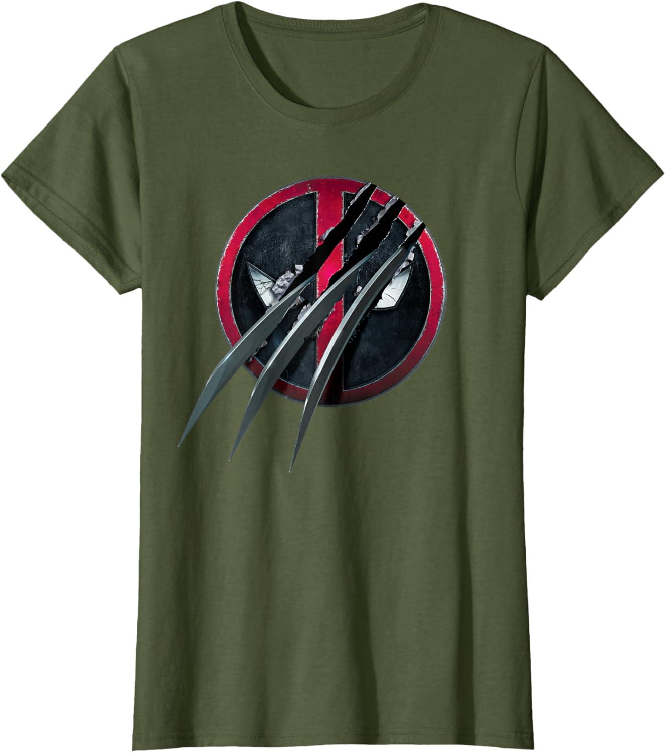 imageMarvel Studios Deadpool ampamp Wolverine Slashed Icon with Claws TShirtOlive Green