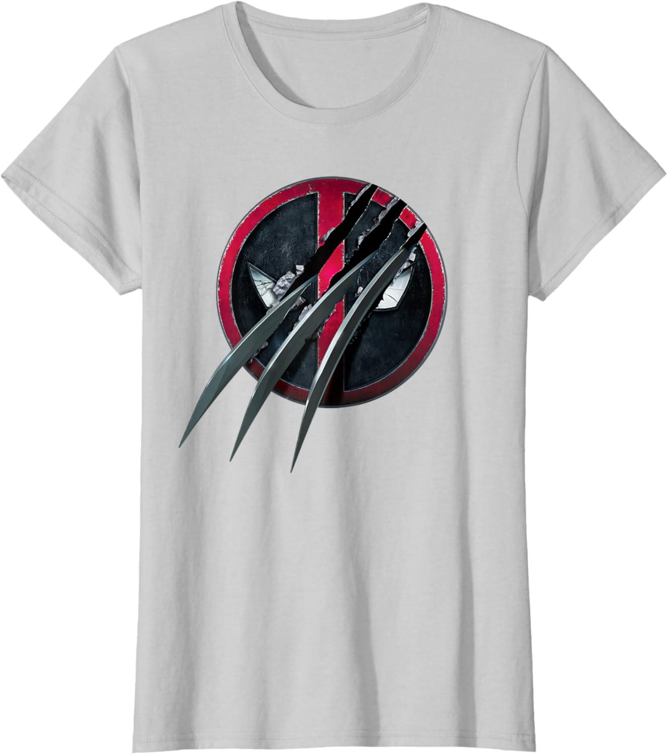 imageMarvel Studios Deadpool ampamp Wolverine Slashed Icon with Claws TShirtSilver Grey