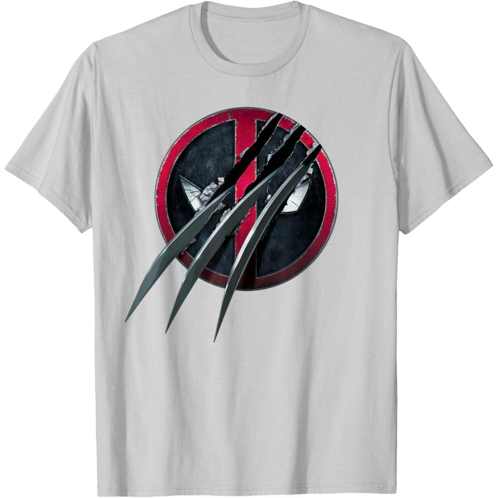 Marvel Studios Deadpool & Wolverine Slashed Icon with Claws T-Shirt(Silver Grey)