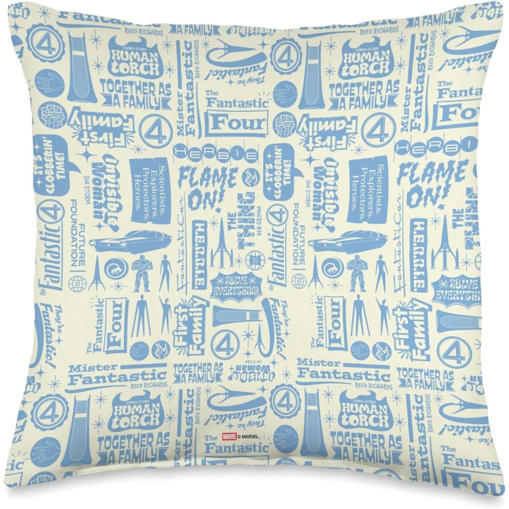 Marvel Studios The Fantastic Four: First Steps Words & Icons Throw Pillow(18×18)