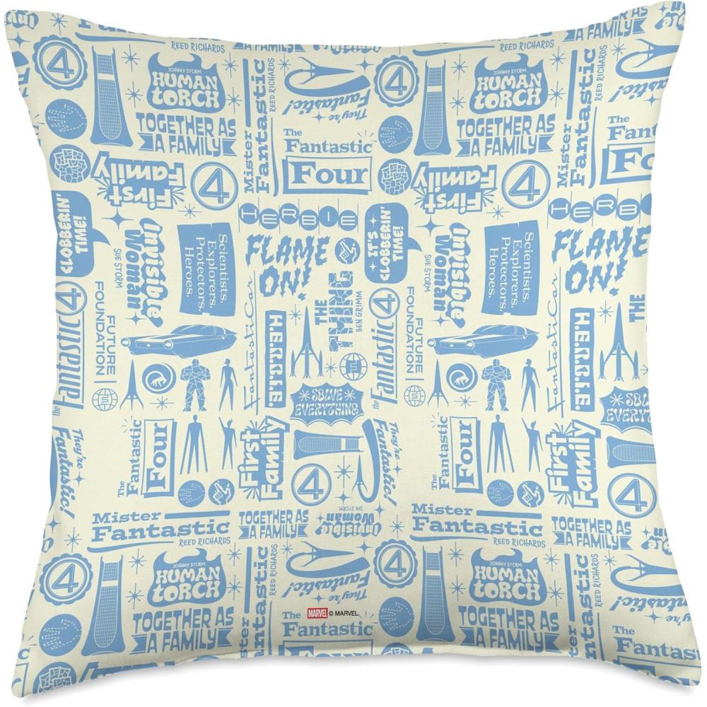 Join the First Family of the Marvel Cinematic Universe on your shopping trip or home décor with this official Marvel tote bag or pillow from Marvel Studios' blockbuster new movie “The Fantastic Four: First Steps”, featuring an eye-catching pattern of retro Atomic Age-style illustrated icons, logos, and phrases from the film, including “Together as a Family”, “They're Fantastic!”, “First Family”, “Scientists, Explorers, Protectors, Heroes”, and many more. A perfect gift for a Marvel Super Heroes, MCU, or Fantastic Four fan. It's available as a versatile tote – perfect for picnics, gifts, parties, and as a reusable grocery bag – or as a 16″ x 16″ or 18″ x 18″ pillow that Marvel-loving guests, kids, and grown-up fans are sure to enjoy.
