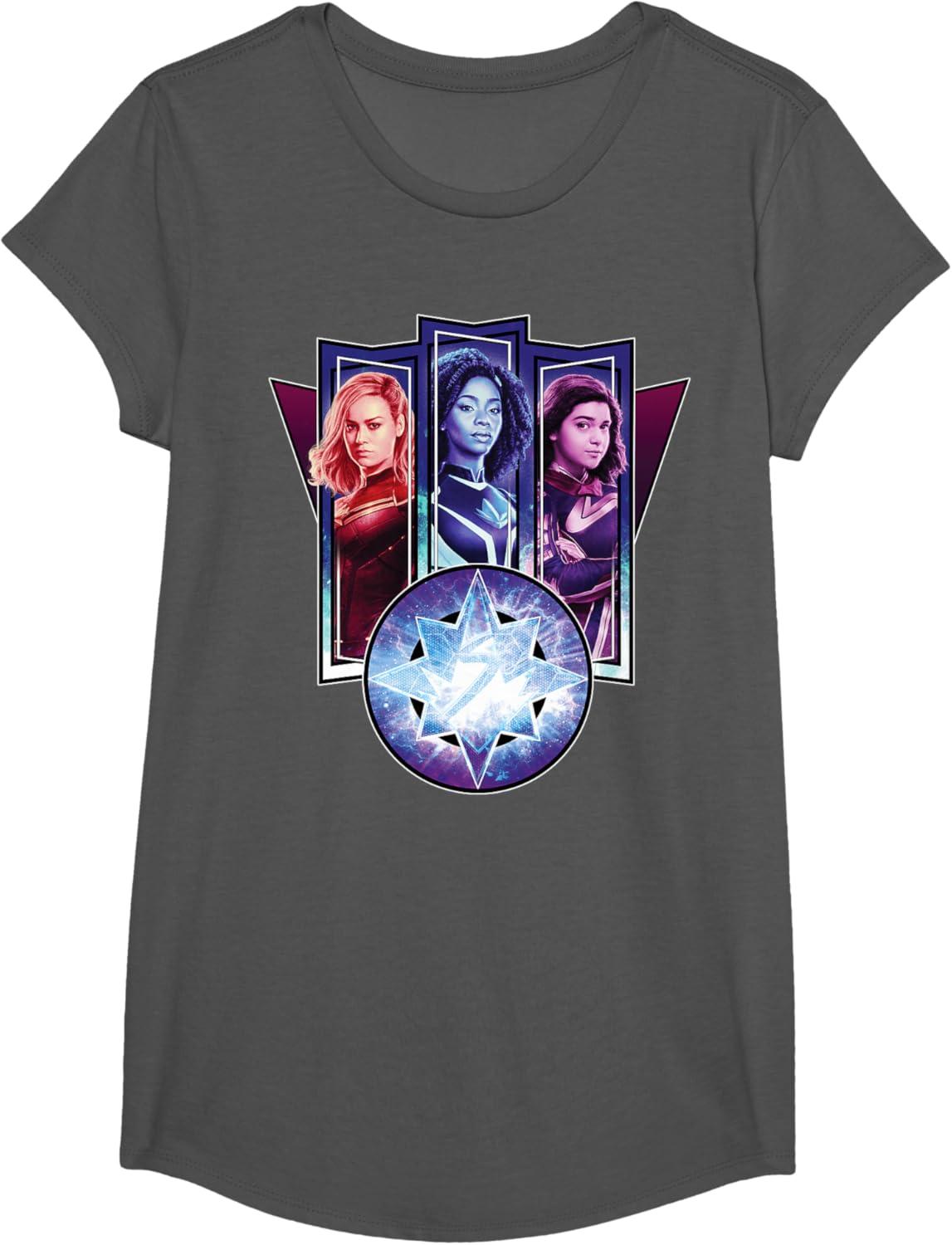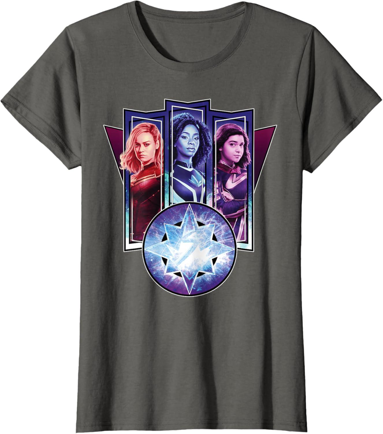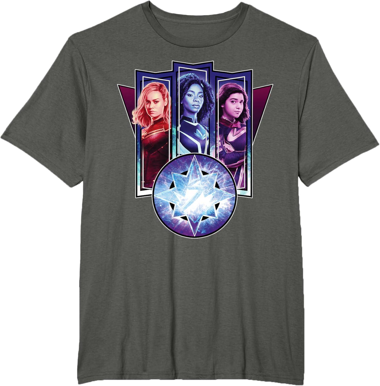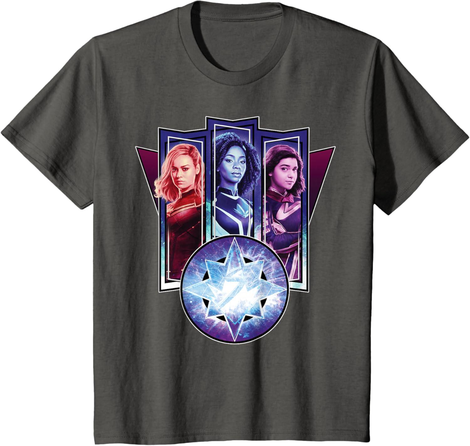Three Marvels unite in Marvel Studios’ cosmic new movie “The Marvels”, the sequel to “Captain Marvel” and the newest exciting chapter in the Marvel Cinematic Universe! This official tee or hoodie features awesome images of Captain Marvel, Photon, and Ms. Marvel – a.k.a. Carol Danvers (“Captain Marvel”), Monica Rambeau (“WandaVision”), and Kamala Khan (“Ms. Marvel”) – along with an icon combining all three of their symbols. When these super heroes team up, incredible adventure is in store. A great gift for a fan of The Marvels or the MCU! Available in youth and adult sizes. Find it in a t-shirt, premium t-shirt, tank top, v-neck, long sleeve tee, hoodie, and sweatshirt.