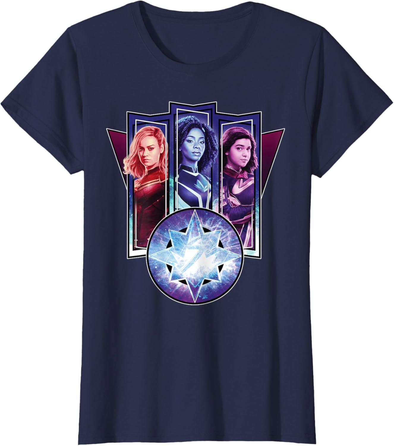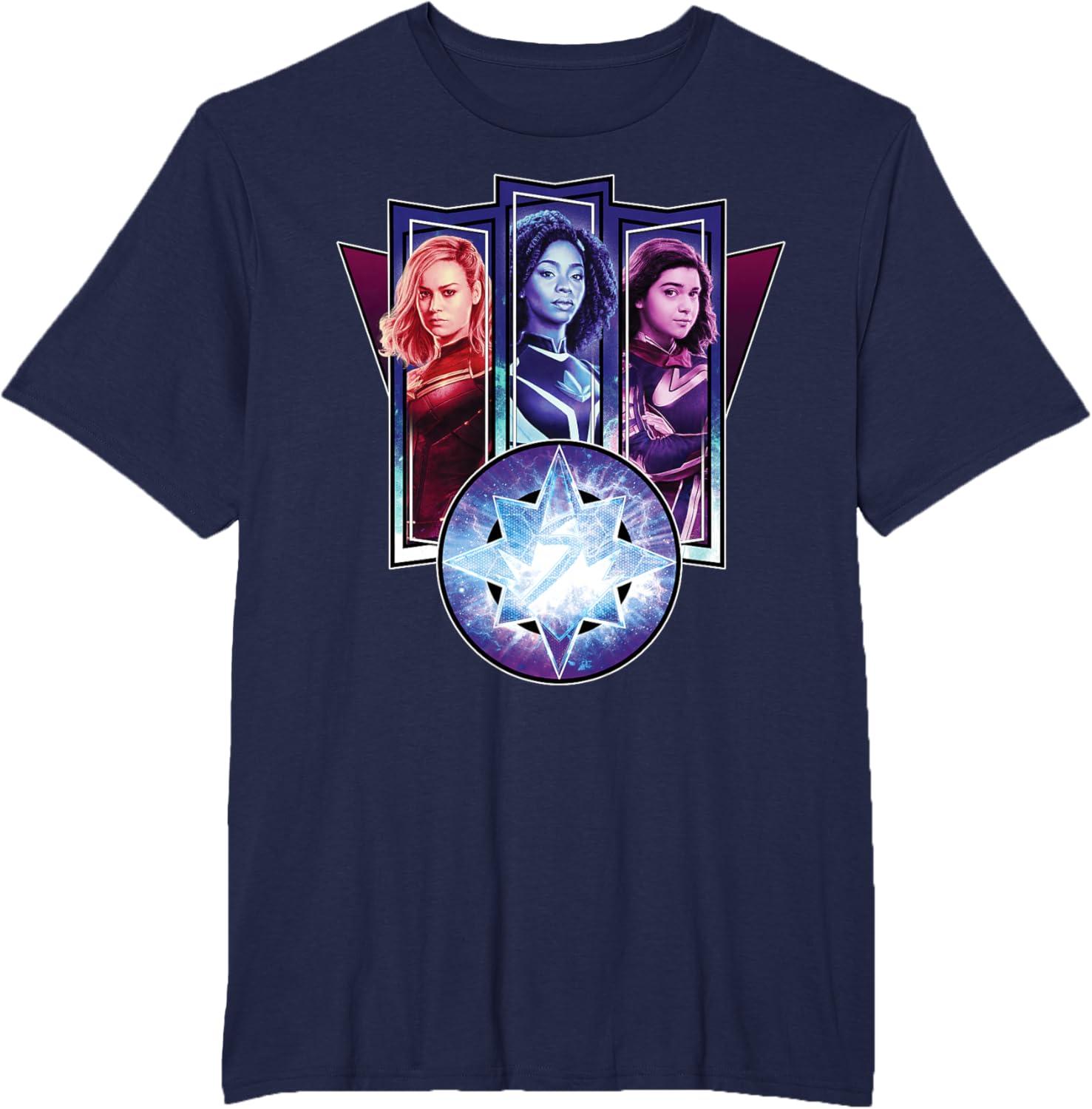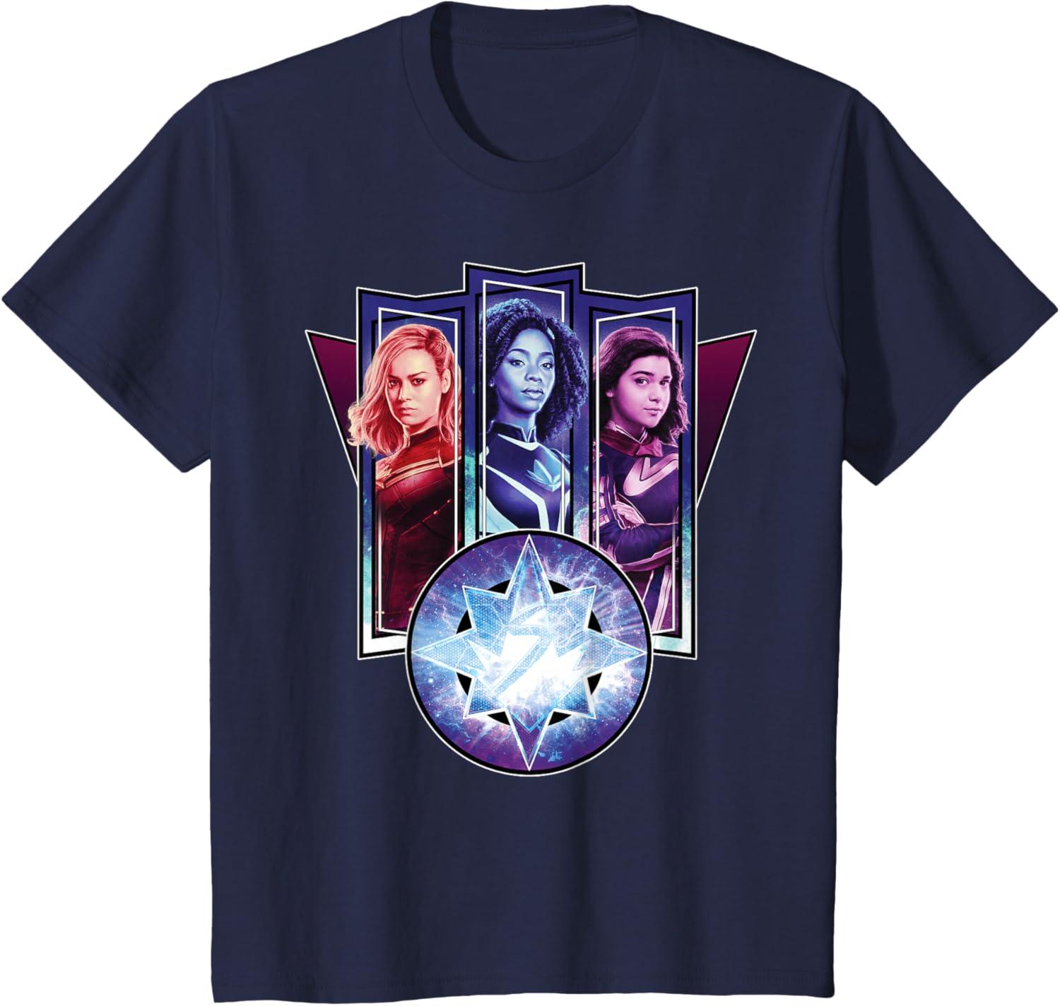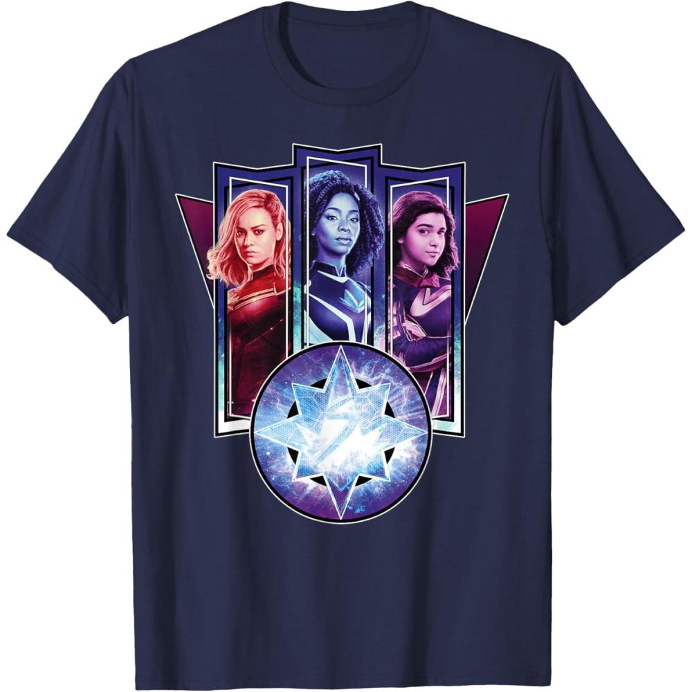 Three Marvels unite in Marvel Studios’ cosmic new movie “The Marvels”, the sequel to “Captain Marvel” and the newest exciting chapter in the Marvel Cinematic Universe! This official tee or hoodie features awesome images of Captain Marvel, Photon, and Ms. Marvel – a.k.a. Carol Danvers (“Captain Marvel”), Monica Rambeau (“WandaVision”), and Kamala Khan (“Ms. Marvel”) – along with an icon combining all three of their symbols. When these super heroes team up, incredible adventure is in store. A great gift for a fan of The Marvels or the MCU! Available in youth and adult sizes. Find it in a t-shirt, premium t-shirt, tank top, v-neck, long sleeve tee, hoodie, and sweatshirt.