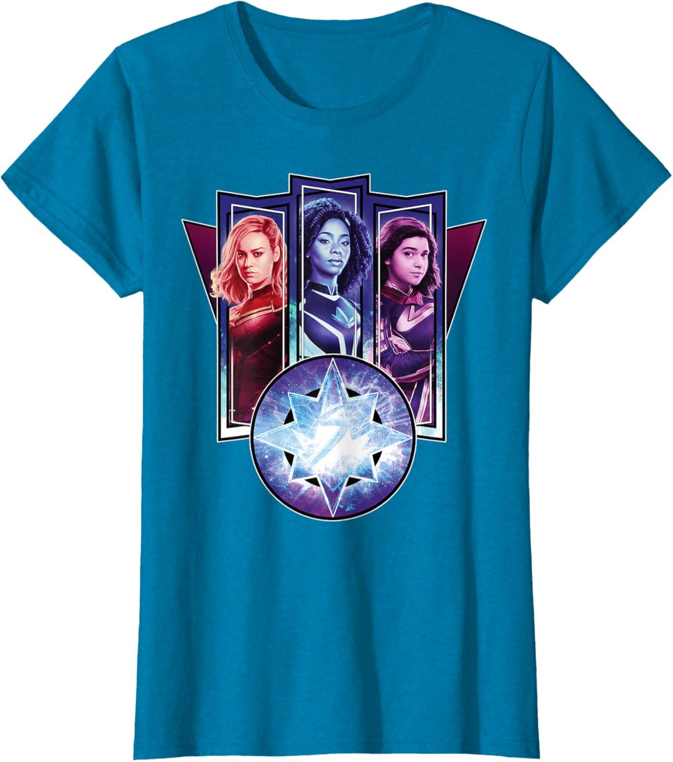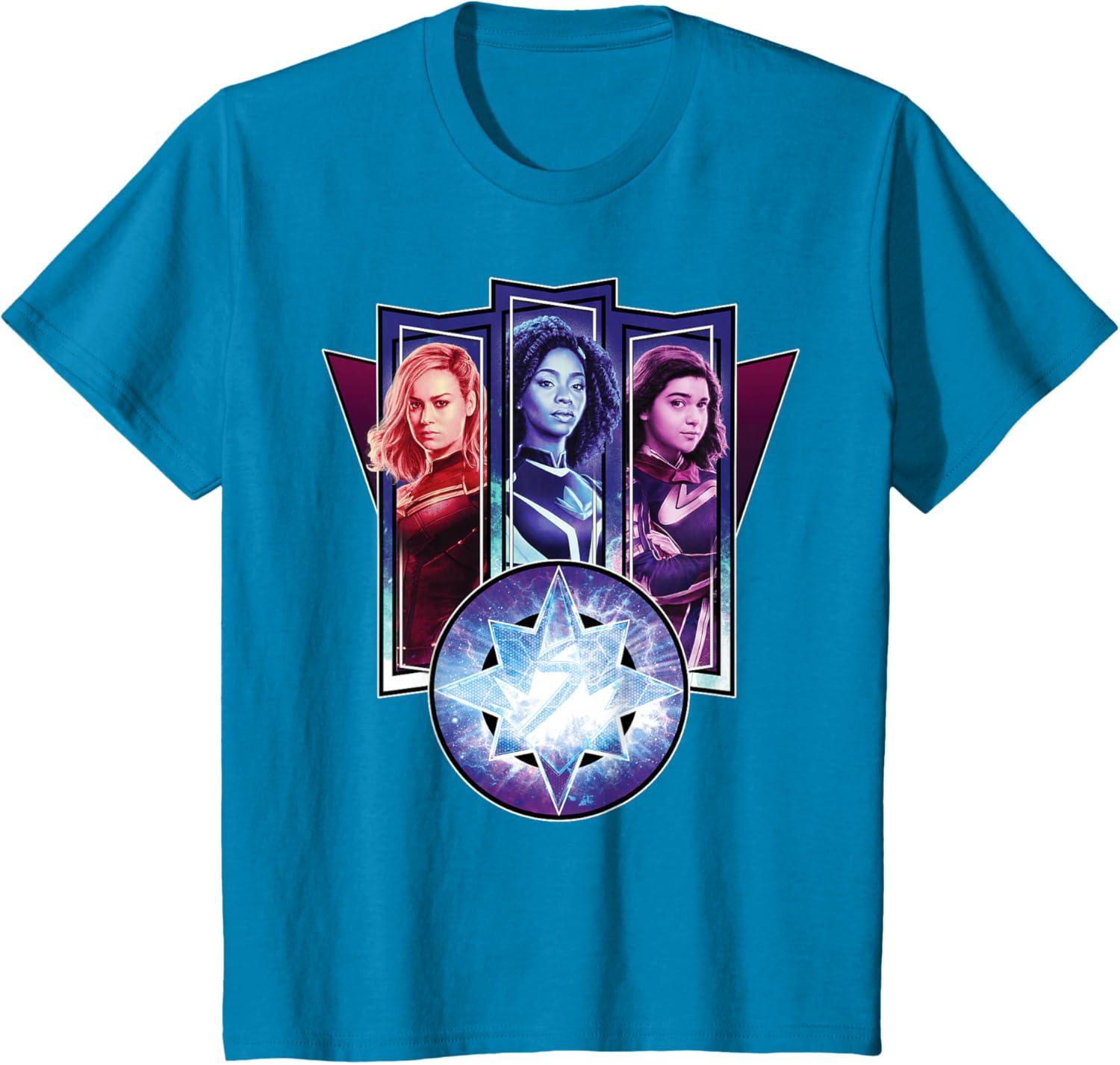 Three Marvels unite in Marvel Studios’ cosmic new movie “The Marvels”, the sequel to “Captain Marvel” and the newest exciting chapter in the Marvel Cinematic Universe! This official tee or hoodie features awesome images of Captain Marvel, Photon, and Ms. Marvel – a.k.a. Carol Danvers (“Captain Marvel”), Monica Rambeau (“WandaVision”), and Kamala Khan (“Ms. Marvel”) – along with an icon combining all three of their symbols. When these super heroes team up, incredible adventure is in store. A great gift for a fan of The Marvels or the MCU! Available in youth and adult sizes. Find it in a t-shirt, premium t-shirt, tank top, v-neck, long sleeve tee, hoodie, and sweatshirt.