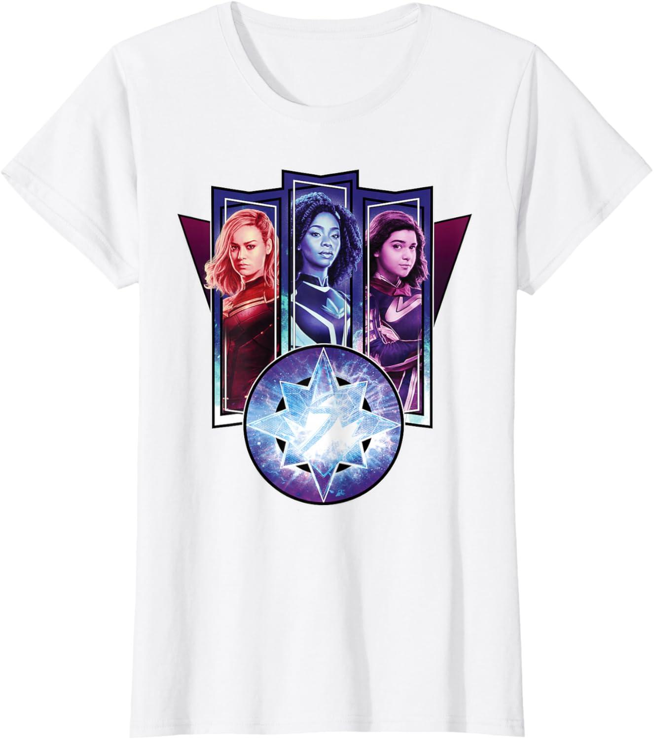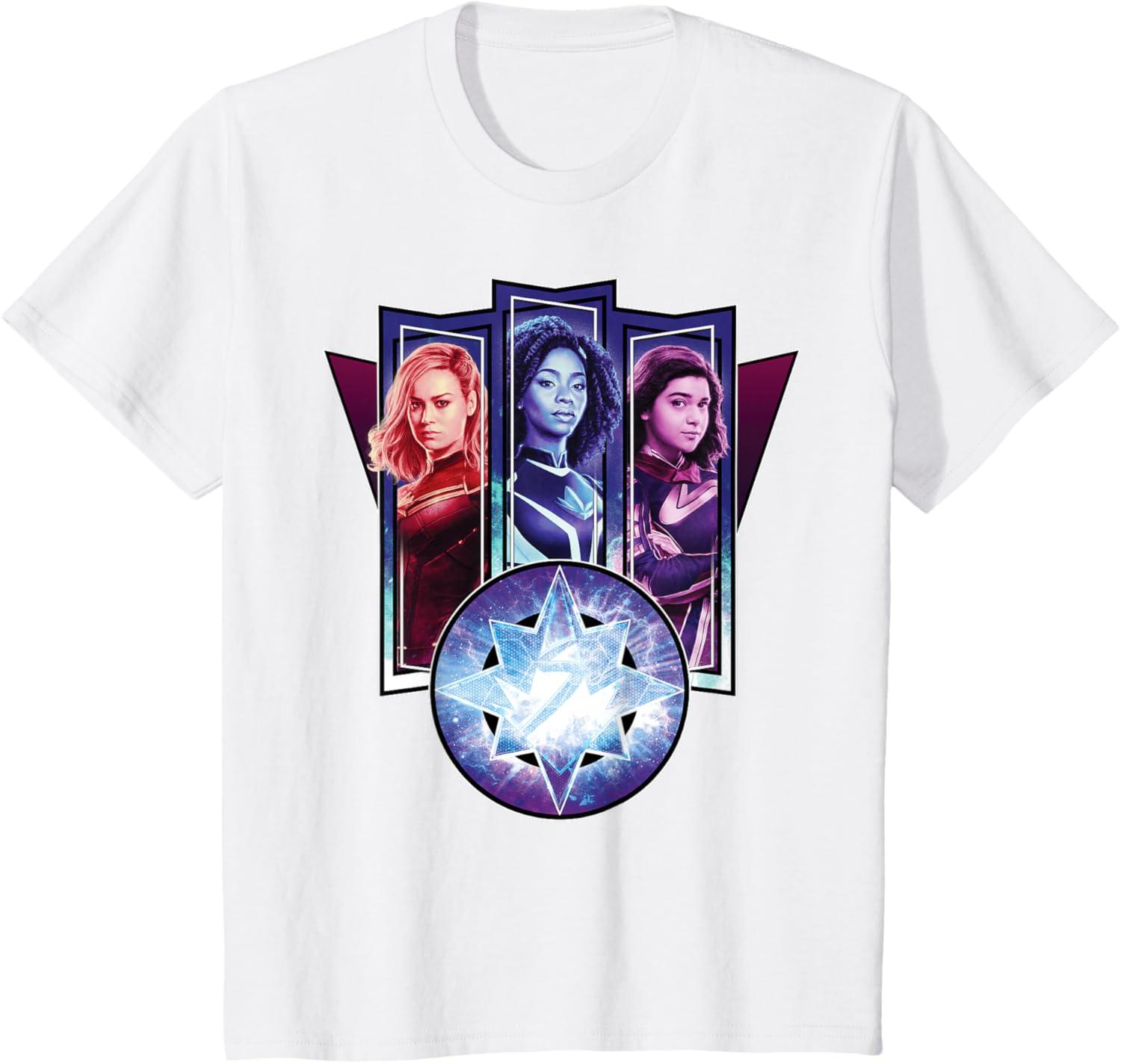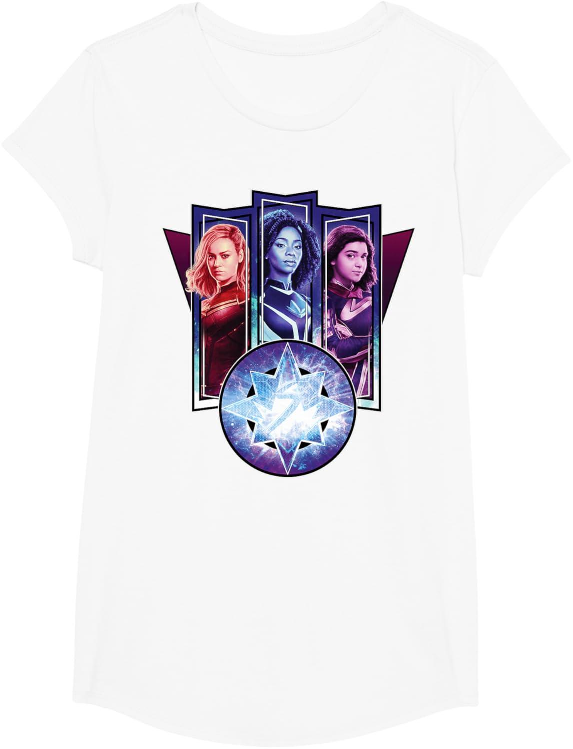 Three Marvels unite in Marvel Studios’ cosmic new movie “The Marvels”, the sequel to “Captain Marvel” and the newest exciting chapter in the Marvel Cinematic Universe! This official tee or hoodie features awesome images of Captain Marvel, Photon, and Ms. Marvel – a.k.a. Carol Danvers (“Captain Marvel”), Monica Rambeau (“WandaVision”), and Kamala Khan (“Ms. Marvel”) – along with an icon combining all three of their symbols. When these super heroes team up, incredible adventure is in store. A great gift for a fan of The Marvels or the MCU! Available in youth and adult sizes. Find it in a t-shirt, premium t-shirt, tank top, v-neck, long sleeve tee, hoodie, and sweatshirt.