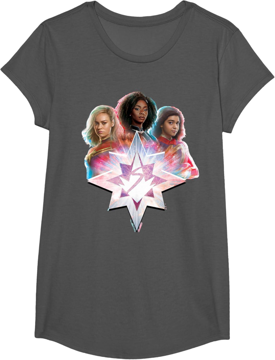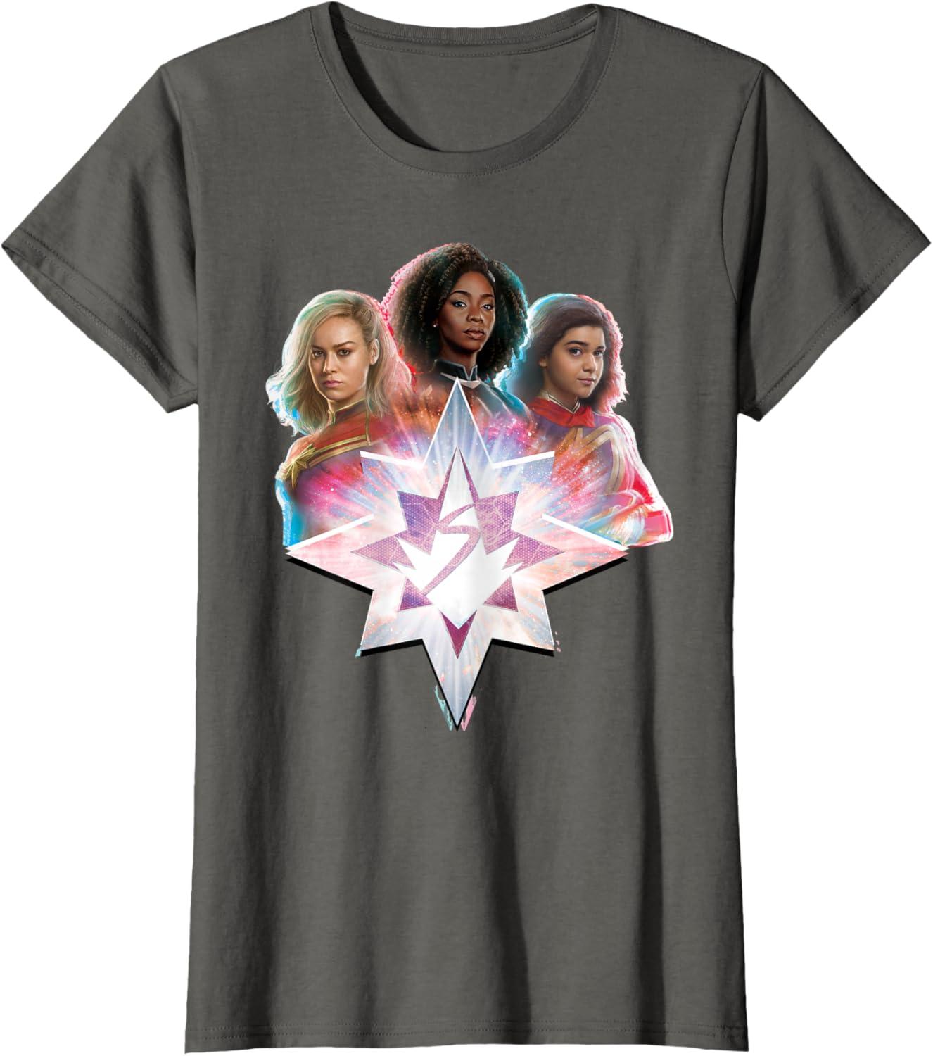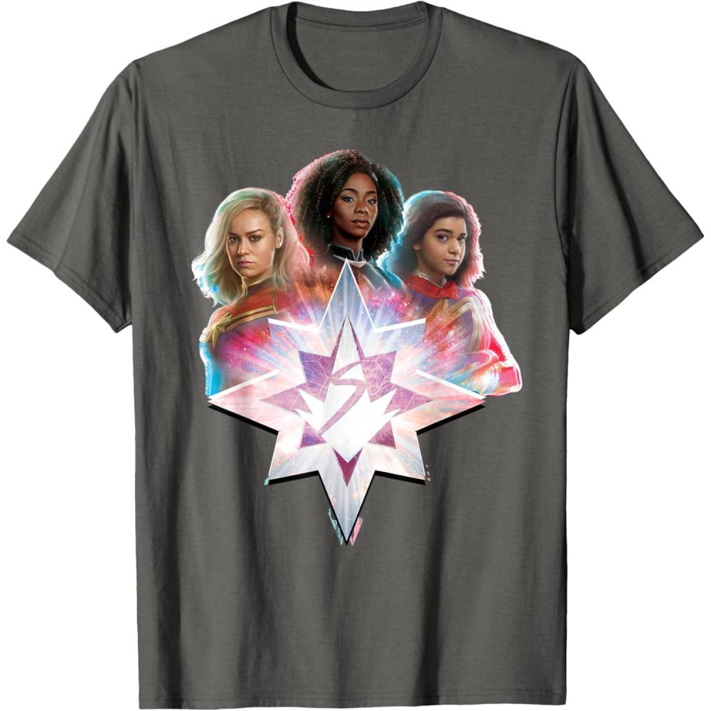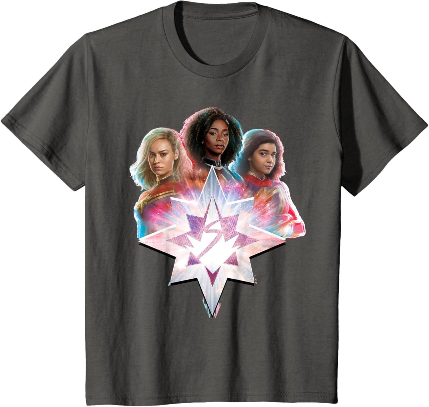 Three Marvels unite in Marvel Studios’ exciting new movie “The Marvels”, the sequel to “Captain Marvel” and the newest thrilling chapter in the Marvel Cinematic Universe! This official tee or hoodie features awesome images of Captain Marvel, Photon, and Ms. Marvel – a.k.a. Carol Danvers (“Captain Marvel”), Monica Rambeau (“WandaVision”), and Kamala Khan (“Ms. Marvel”) – with an icon combining all three of their symbols and radiating cosmic power. When these super heroes team up, incredible adventure is in store. A great gift for a fan of The Marvels or the MCU! Available in youth and adult sizes. Find it in a t-shirt, premium t-shirt, tank top, v-neck, long sleeve tee, hoodie, and sweatshirt.