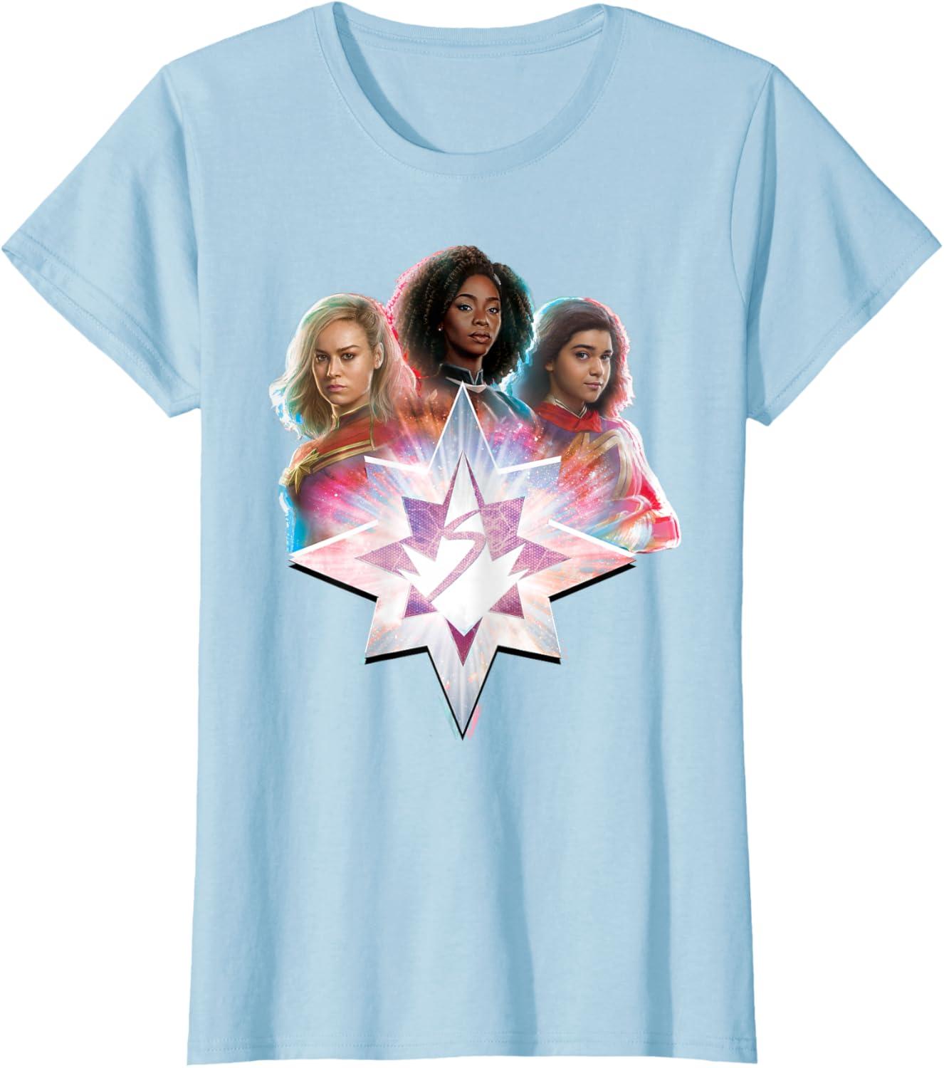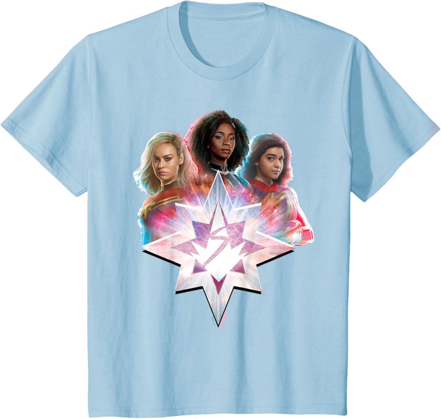 Three Marvels unite in Marvel Studios’ exciting new movie “The Marvels”, the sequel to “Captain Marvel” and the newest thrilling chapter in the Marvel Cinematic Universe! This official tee or hoodie features awesome images of Captain Marvel, Photon, and Ms. Marvel – a.k.a. Carol Danvers (“Captain Marvel”), Monica Rambeau (“WandaVision”), and Kamala Khan (“Ms. Marvel”) – with an icon combining all three of their symbols and radiating cosmic power. When these super heroes team up, incredible adventure is in store. A great gift for a fan of The Marvels or the MCU! Available in youth and adult sizes. Find it in a t-shirt, premium t-shirt, tank top, v-neck, long sleeve tee, hoodie, and sweatshirt.