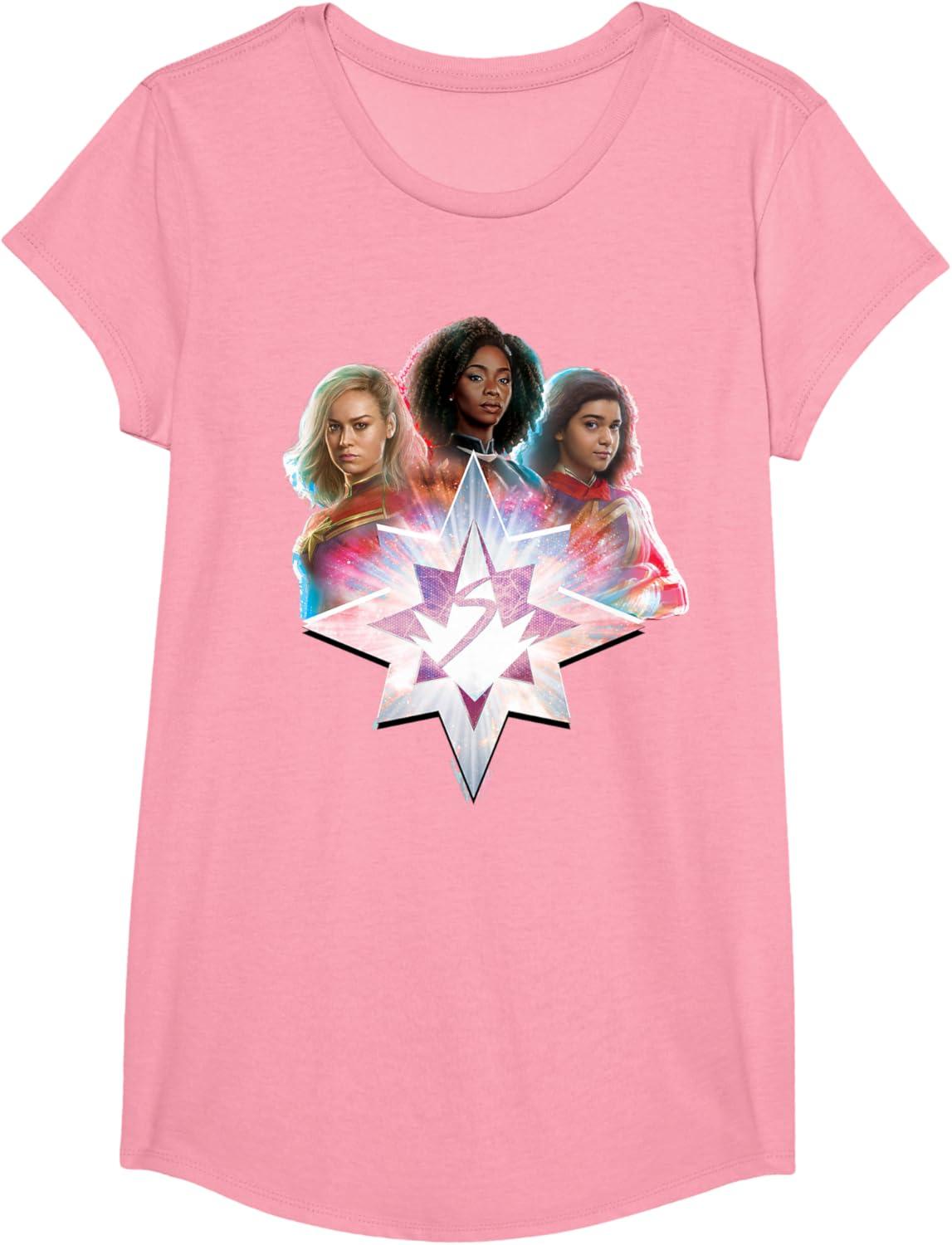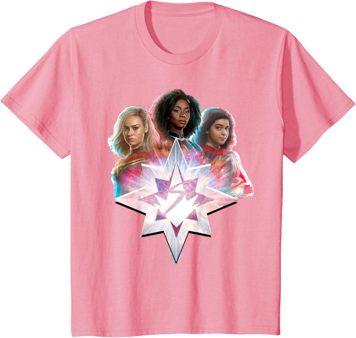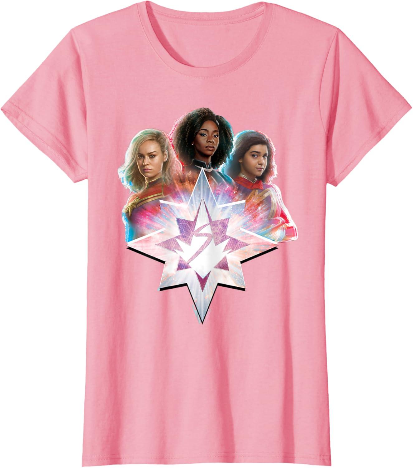 Marvel Studios The Marvels Carol Monica Kamala Power Icon T-Shirt(Pink)