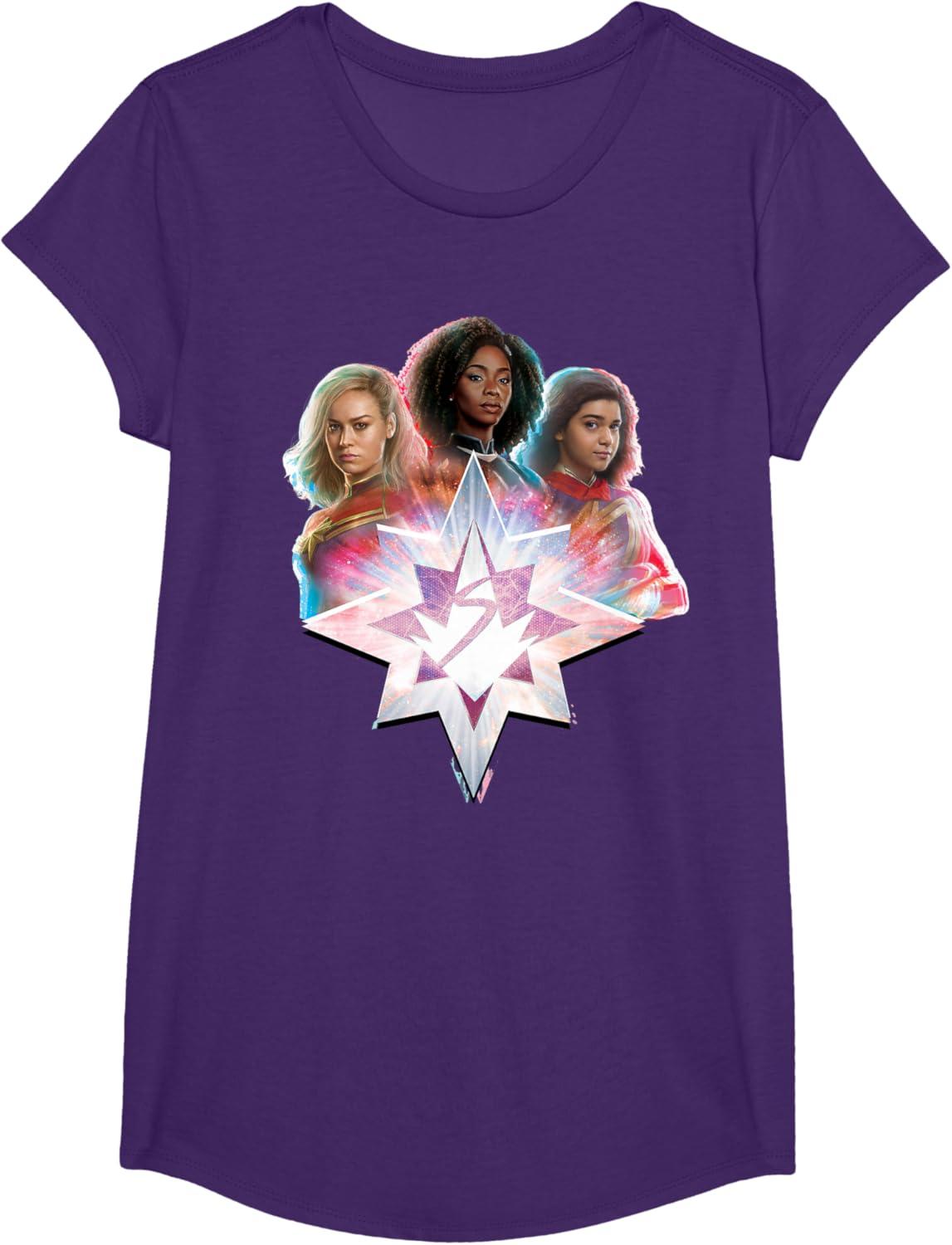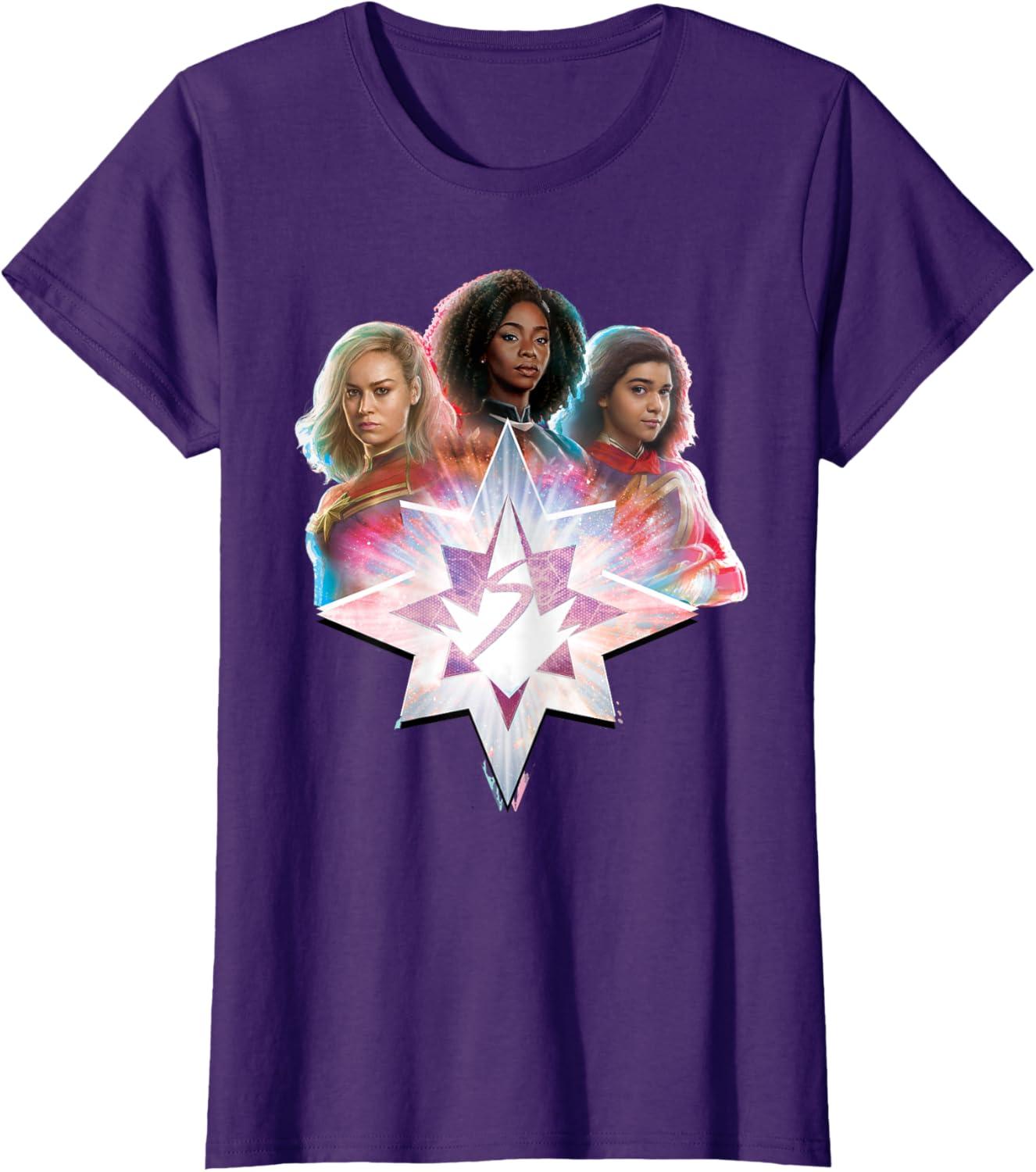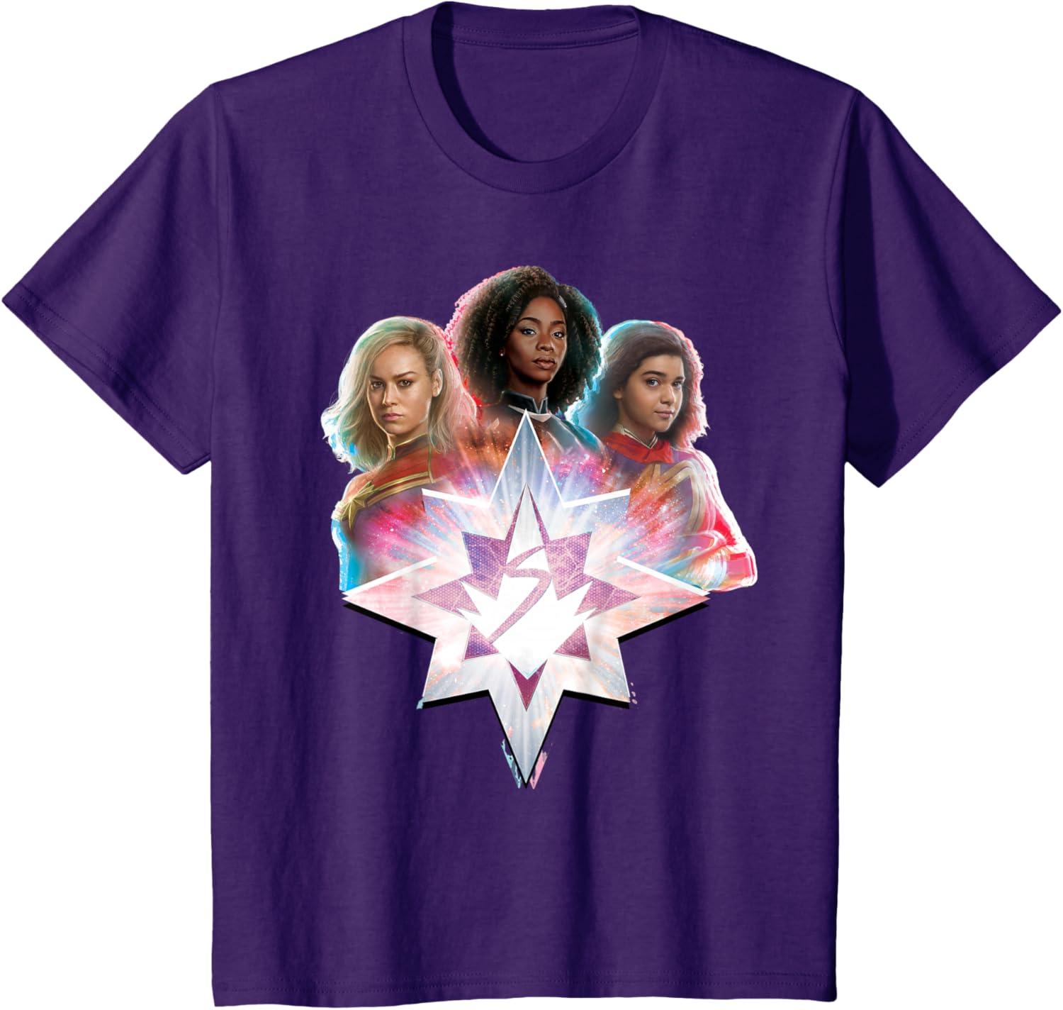 Marvel Studios The Marvels Carol Monica Kamala Power Icon T-Shirt(Purple)