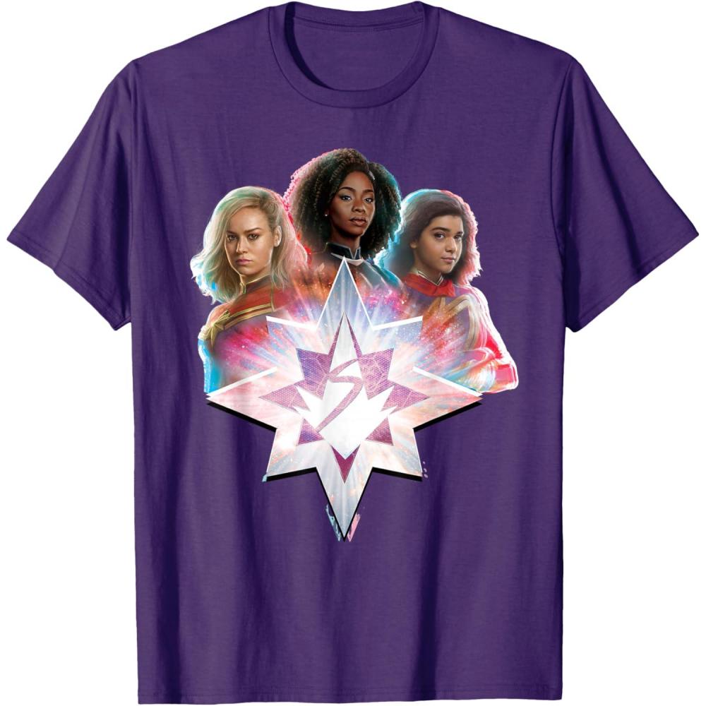 Three Marvels unite in Marvel Studios’ exciting new movie “The Marvels”, the sequel to “Captain Marvel” and the newest thrilling chapter in the Marvel Cinematic Universe! This official tee or hoodie features awesome images of Captain Marvel, Photon, and Ms. Marvel – a.k.a. Carol Danvers (“Captain Marvel”), Monica Rambeau (“WandaVision”), and Kamala Khan (“Ms. Marvel”) – with an icon combining all three of their symbols and radiating cosmic power. When these super heroes team up, incredible adventure is in store. A great gift for a fan of The Marvels or the MCU! Available in youth and adult sizes. Find it in a t-shirt, premium t-shirt, tank top, v-neck, long sleeve tee, hoodie, and sweatshirt.