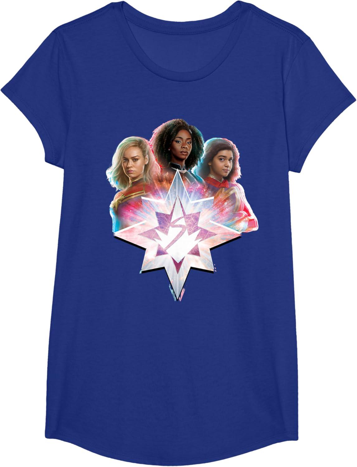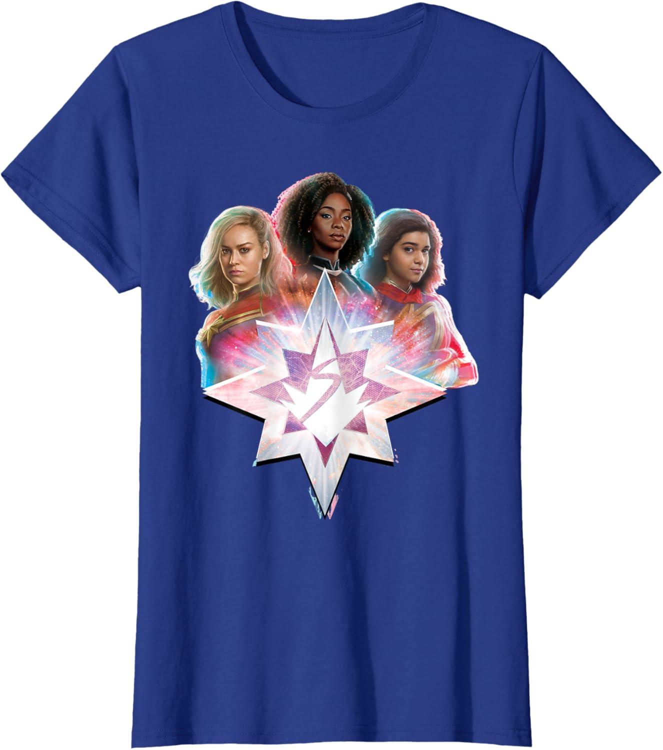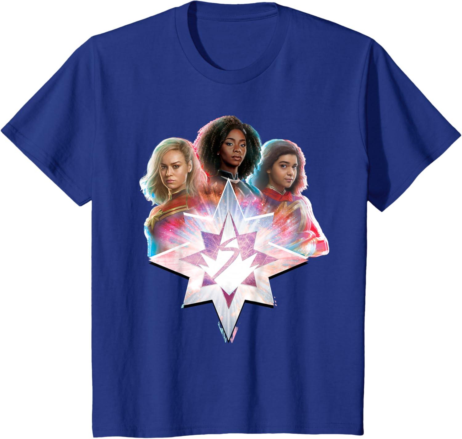 Marvel Studios The Marvels Carol Monica Kamala Power Icon T-Shirt(Royal Blue)