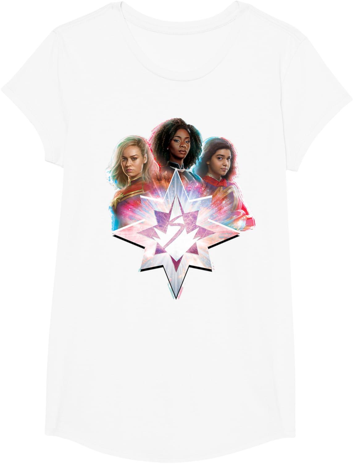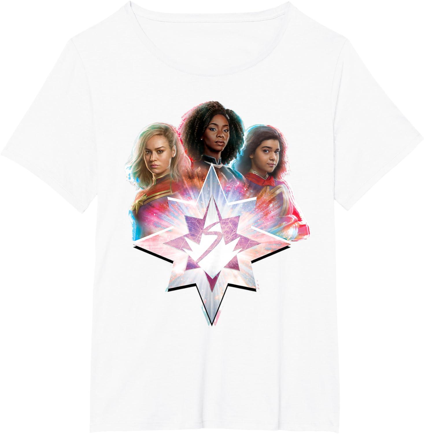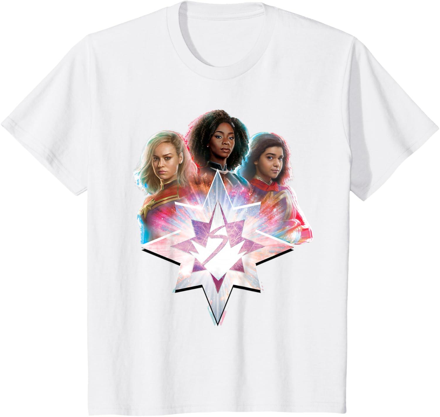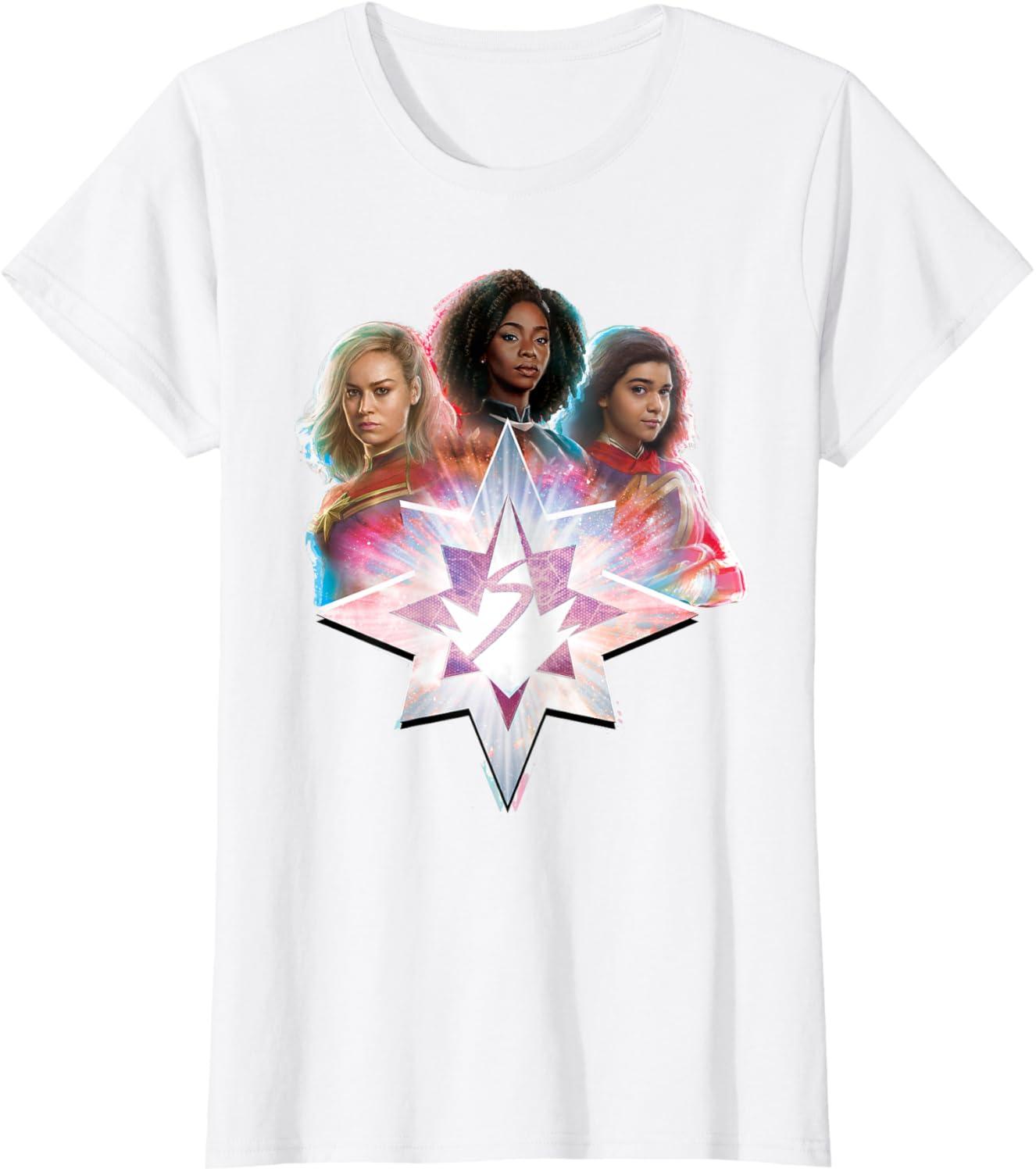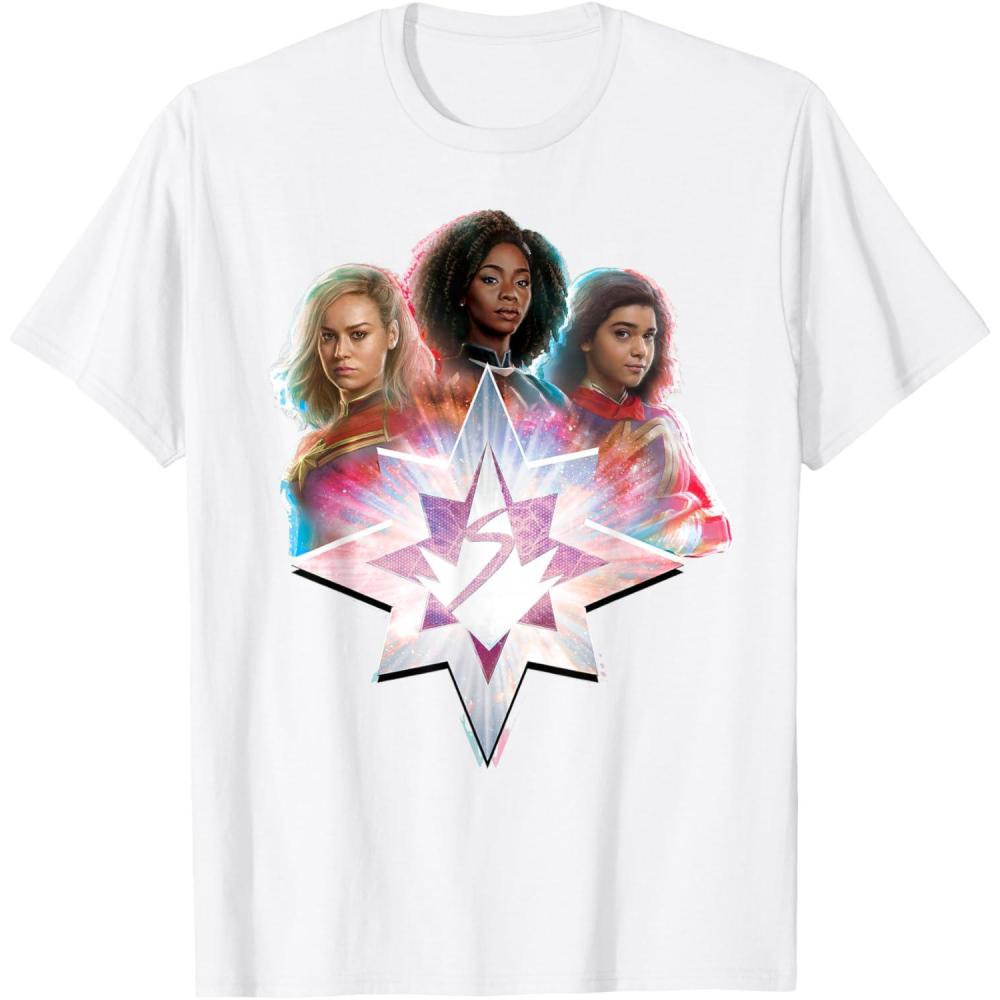 Three Marvels unite in Marvel Studios’ exciting new movie “The Marvels”, the sequel to “Captain Marvel” and the newest thrilling chapter in the Marvel Cinematic Universe! This official tee or hoodie features awesome images of Captain Marvel, Photon, and Ms. Marvel – a.k.a. Carol Danvers (“Captain Marvel”), Monica Rambeau (“WandaVision”), and Kamala Khan (“Ms. Marvel”) – with an icon combining all three of their symbols and radiating cosmic power. When these super heroes team up, incredible adventure is in store. A great gift for a fan of The Marvels or the MCU! Available in youth and adult sizes. Find it in a t-shirt, premium t-shirt, tank top, v-neck, long sleeve tee, hoodie, and sweatshirt.