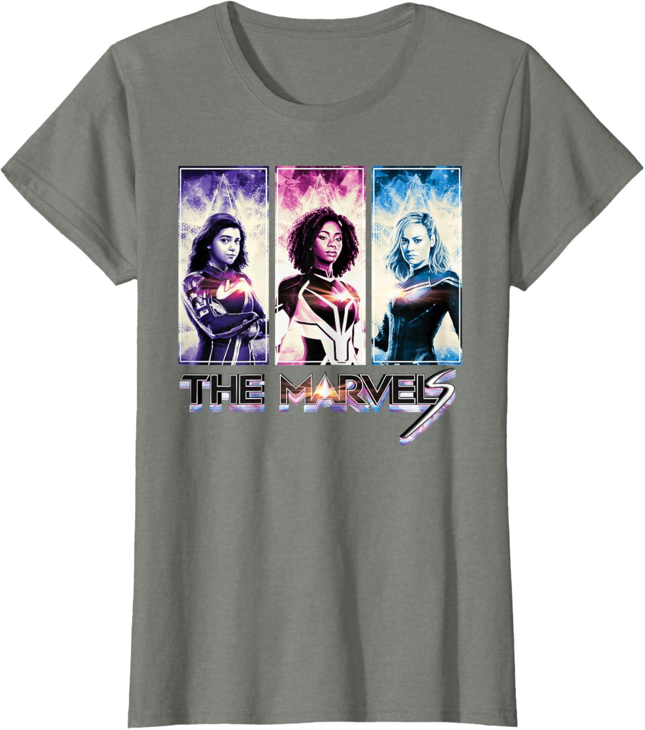 Three Marvels unite in Marvel Studios’ cosmic new movie “The Marvels”, the sequel to “Captain Marvel” and the newest exciting chapter in the Marvel Cinematic Universe! This official tee or hoodie features awesome images of Ms. Marvel, Photon, and Captain Marvel – a.k.a. Kamala Khan (“Ms. Marvel”), Monica Rambeau (“WandaVision”), and Carol Danvers (“Captain Marvel”) – along with the movie logo. When these super heroes team up, incredible adventure is in store. A great gift for a fan of The Marvels or the MCU! Available in youth and adult sizes. Find it in a t-shirt, premium t-shirt, tank top, v-neck, long sleeve tee, hoodie, and sweatshirt.