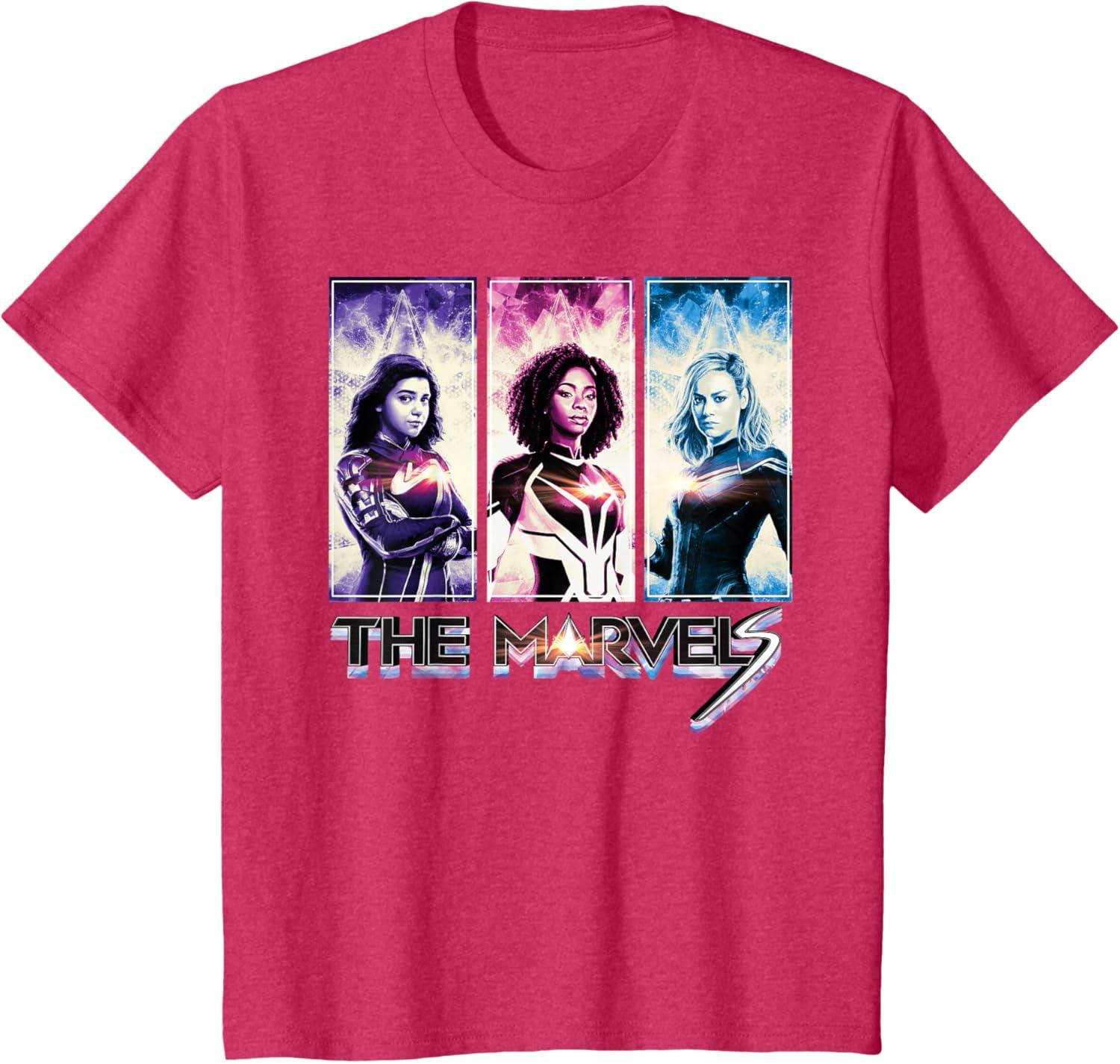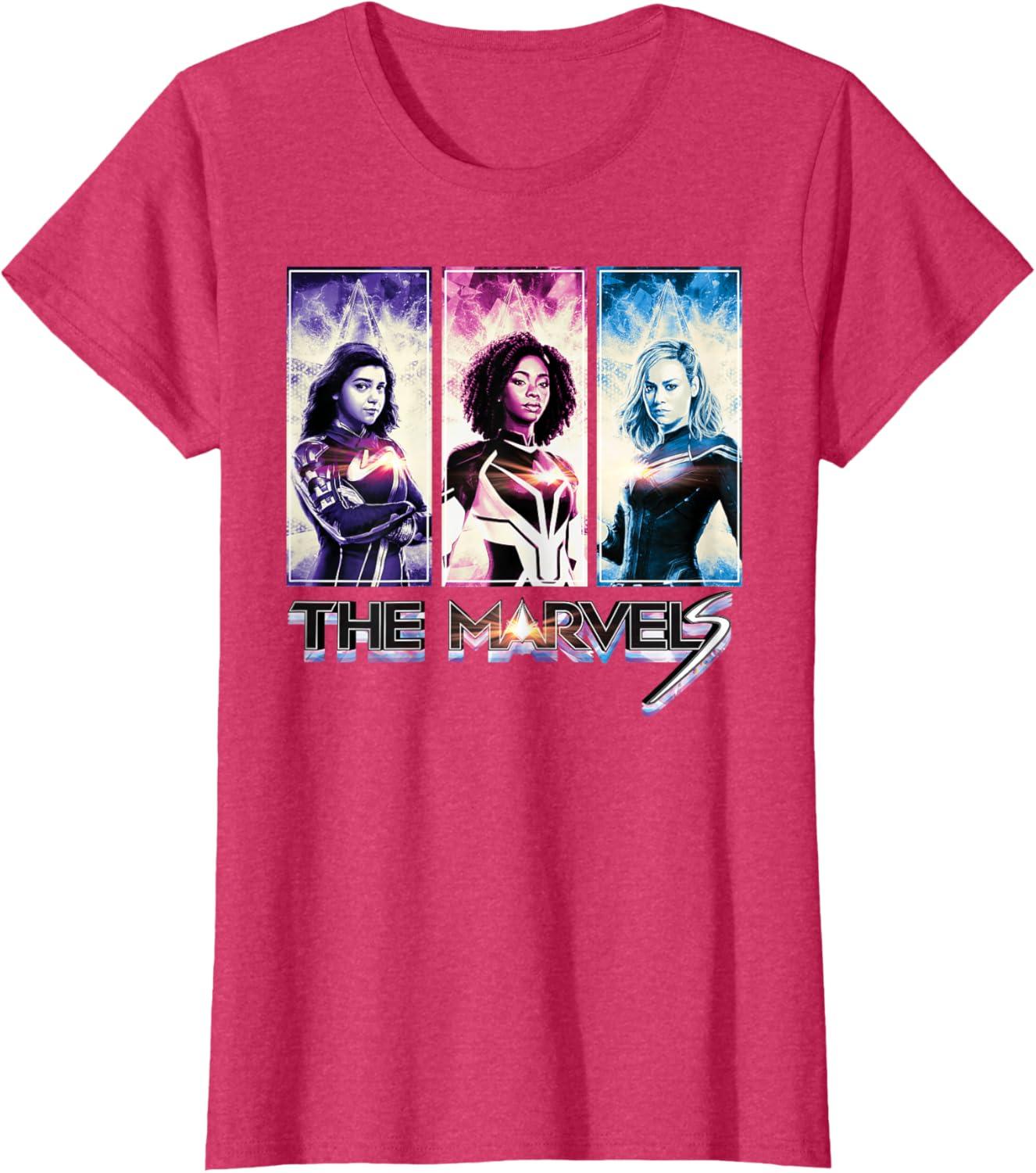 Three Marvels unite in Marvel Studios’ cosmic new movie “The Marvels”, the sequel to “Captain Marvel” and the newest exciting chapter in the Marvel Cinematic Universe! This official tee or hoodie features awesome images of Ms. Marvel, Photon, and Captain Marvel – a.k.a. Kamala Khan (“Ms. Marvel”), Monica Rambeau (“WandaVision”), and Carol Danvers (“Captain Marvel”) – along with the movie logo. When these super heroes team up, incredible adventure is in store. A great gift for a fan of The Marvels or the MCU! Available in youth and adult sizes. Find it in a t-shirt, premium t-shirt, tank top, v-neck, long sleeve tee, hoodie, and sweatshirt.