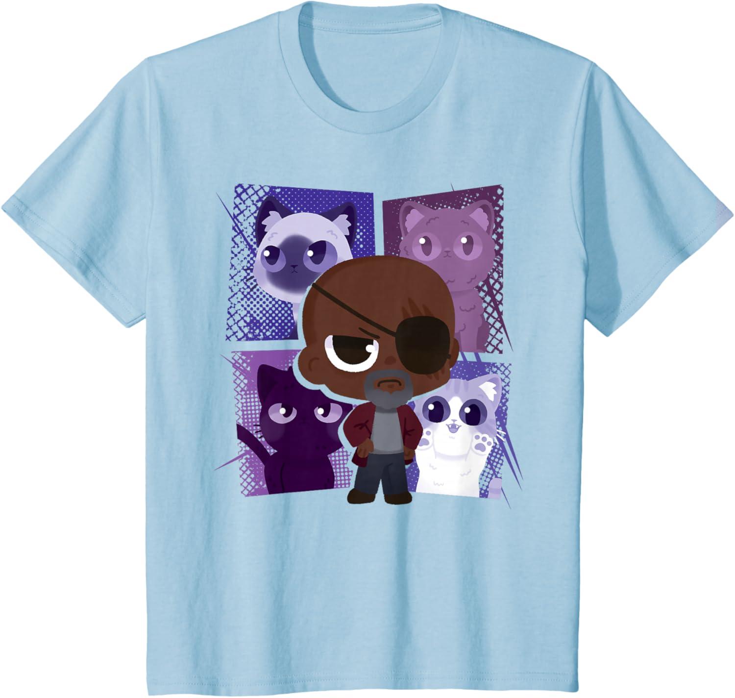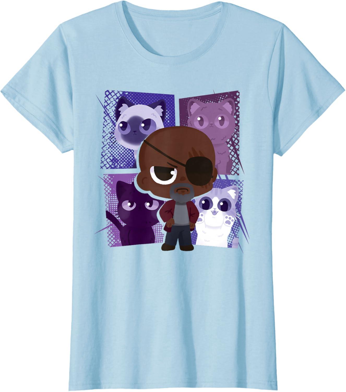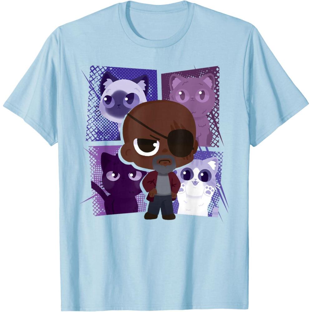 Aww, how dangerously cute they all are! Nick Fury and a quartet of Goose the Flerken’s adorable baby Flerkittens take center stage on this super stylized official tee or hoodie from Marvel Studios’ cosmic new movie “The Marvels”, the sequel to “Captain Marvel”. A great gift for a fan of The Marvels, Goose, alien cat-like creatures, and the MCU! Available in youth and adult sizes. Find it in a t-shirt, premium t-shirt, tank top, v-neck, long sleeve tee, hoodie, and sweatshirt.