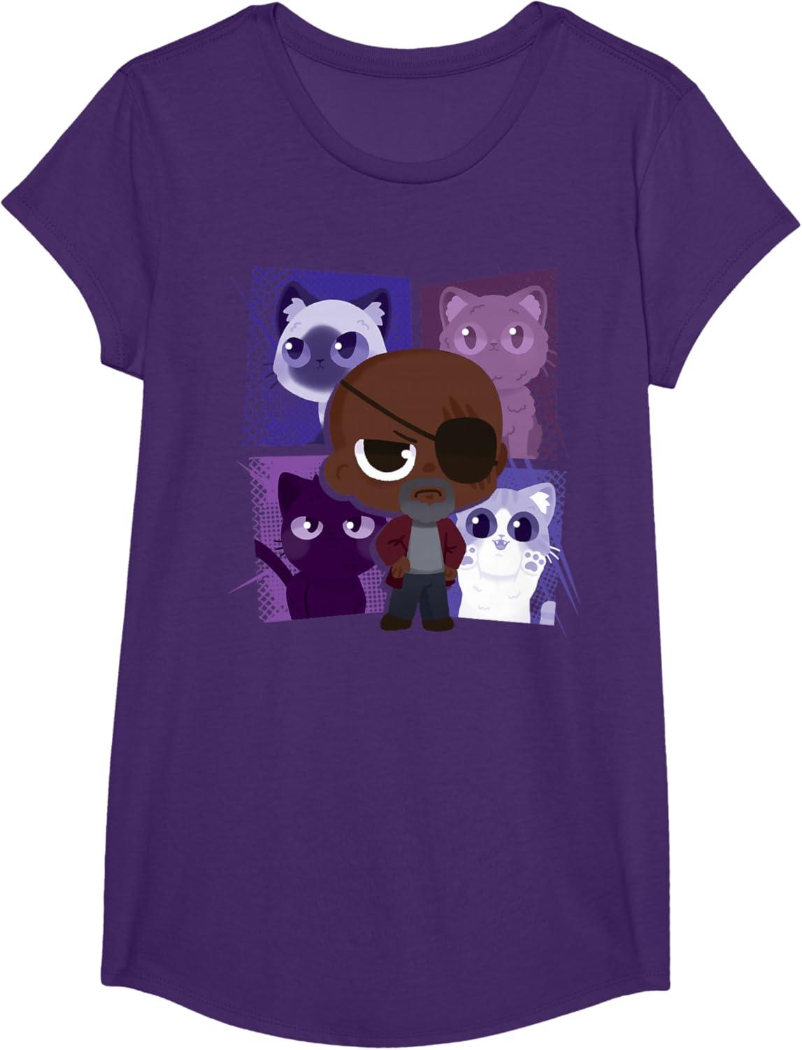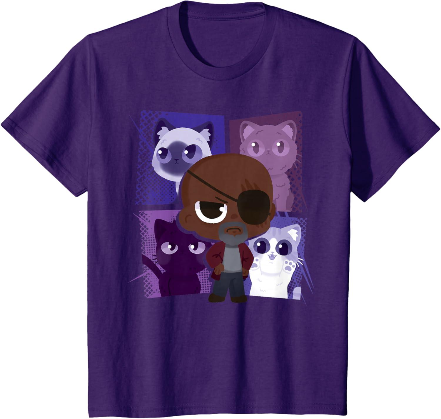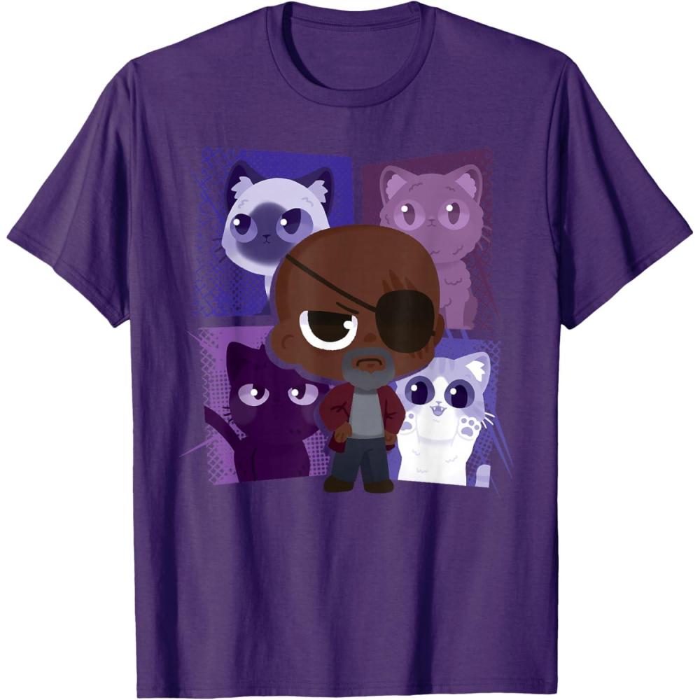 Marvel Studios The Marvels Nick Fury and Flerkittens Cute T-Shirt(Purple)