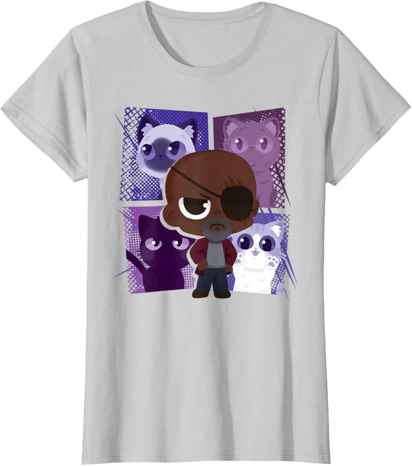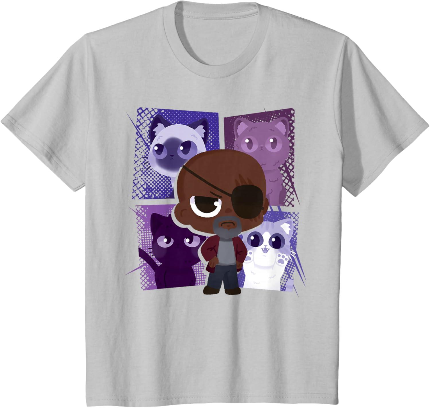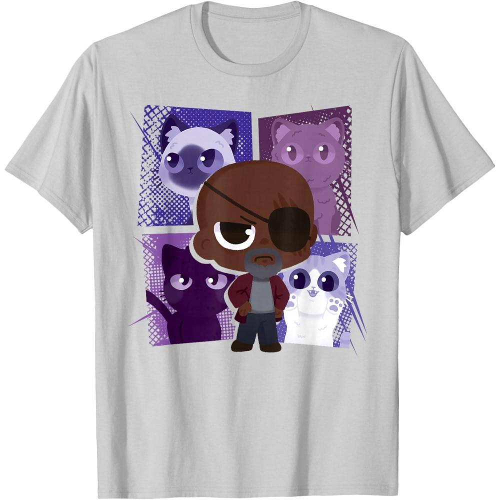 Marvel Studios The Marvels Nick Fury and Flerkittens Cute T-Shirt(Silver Grey)