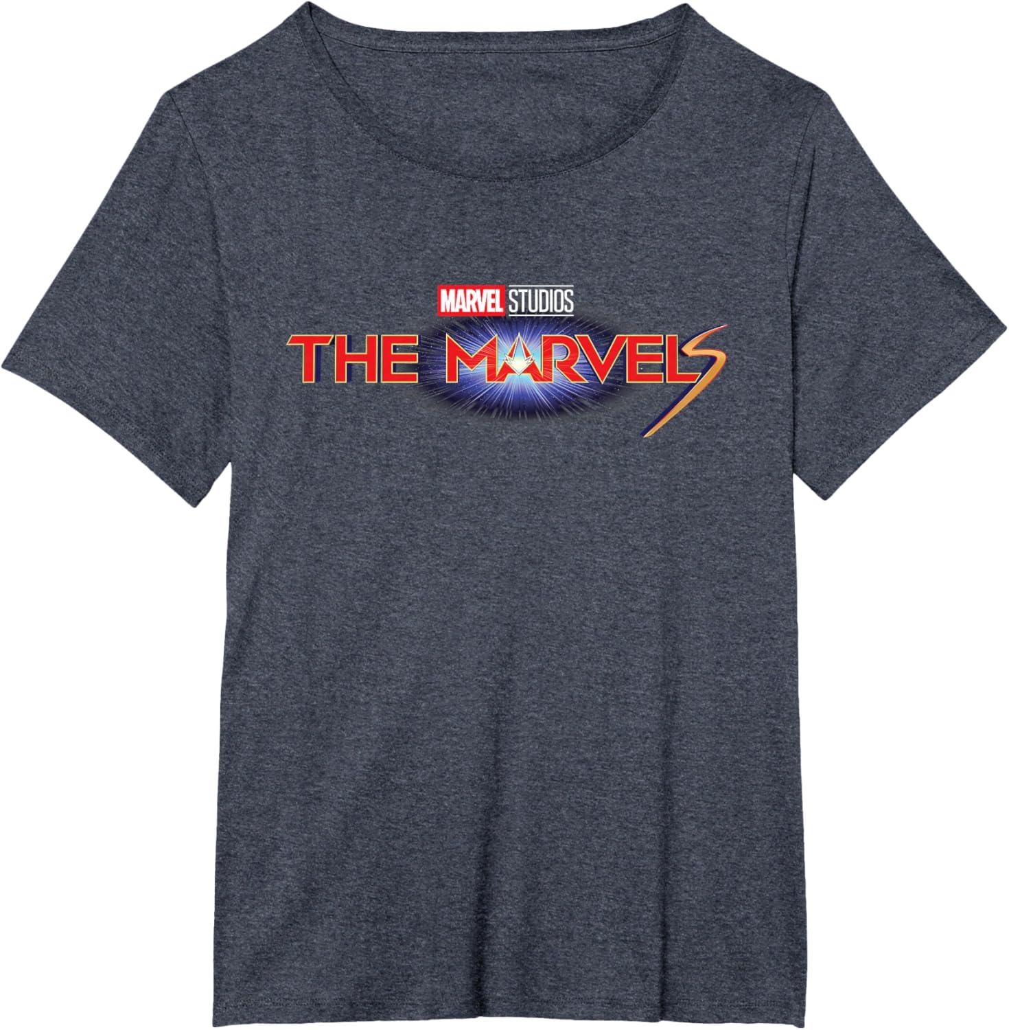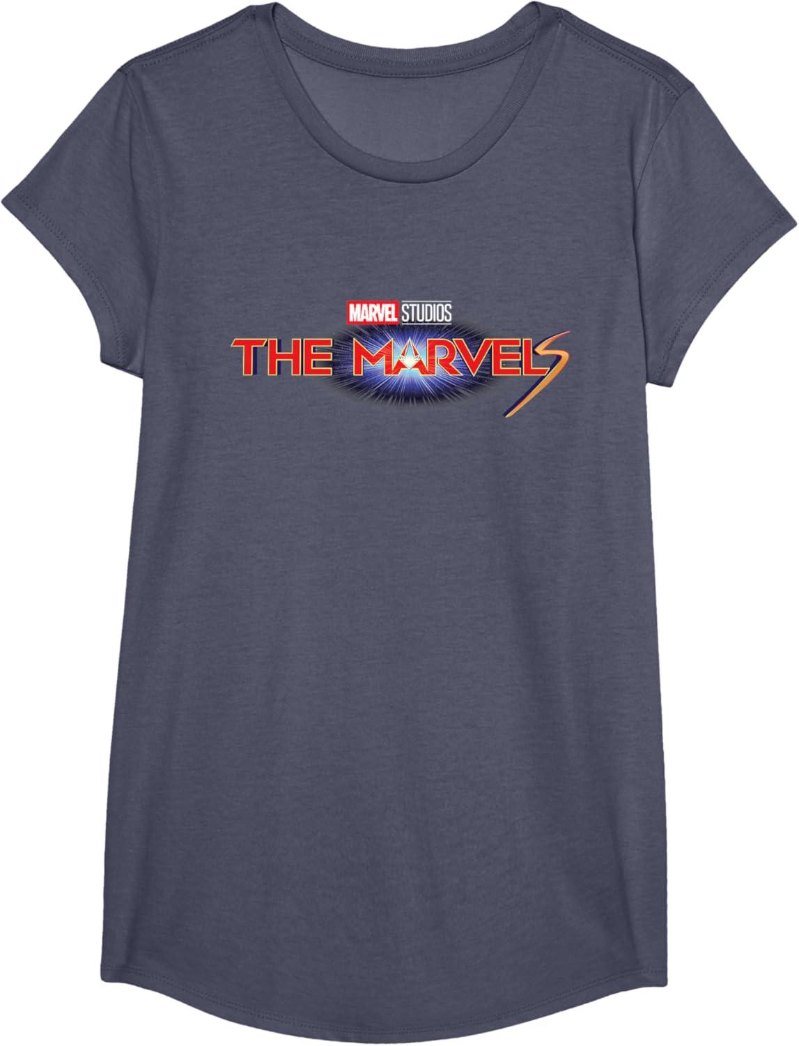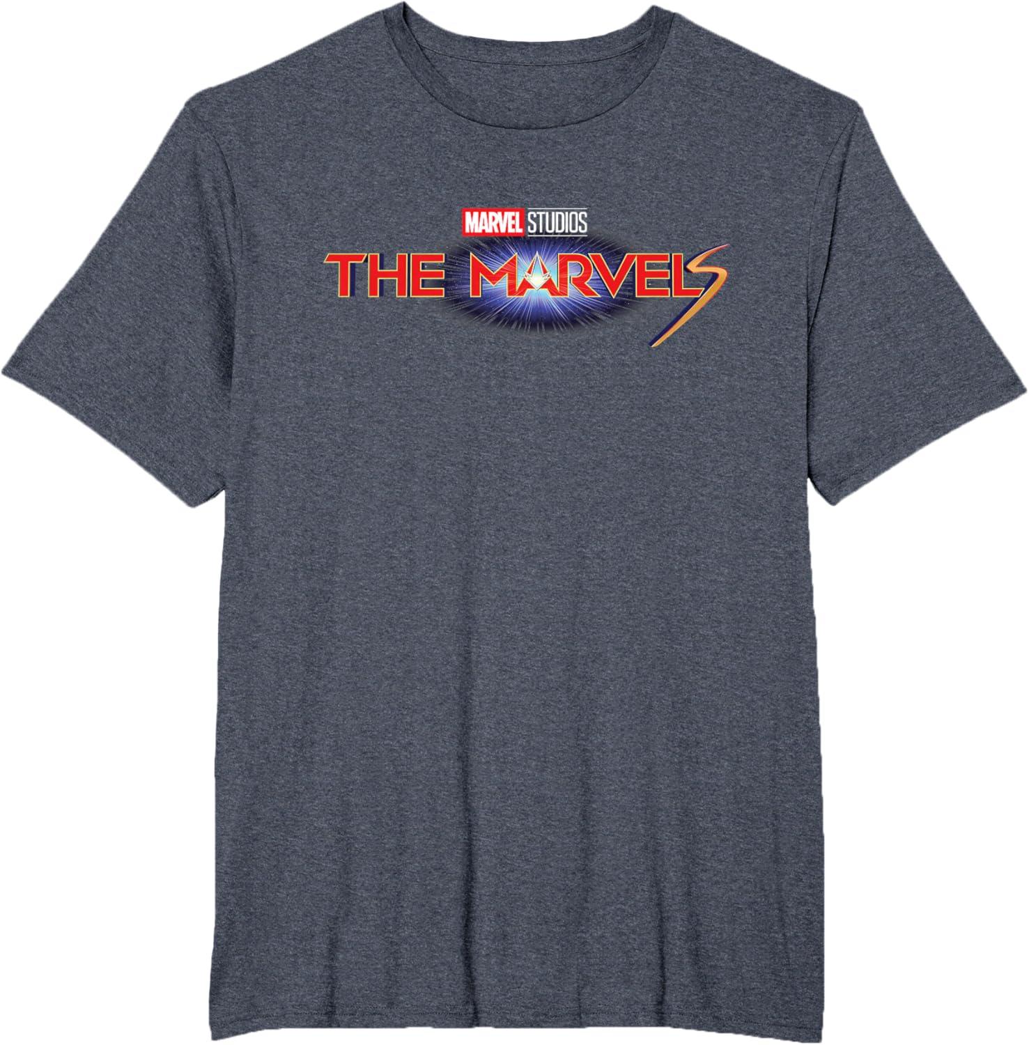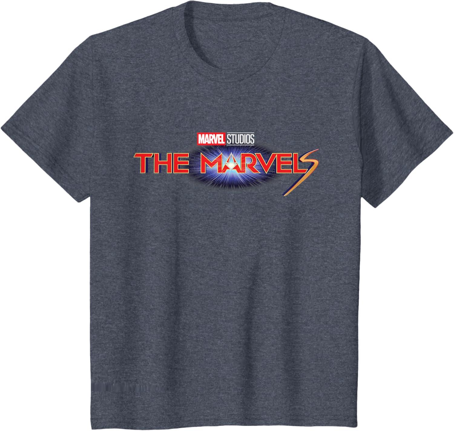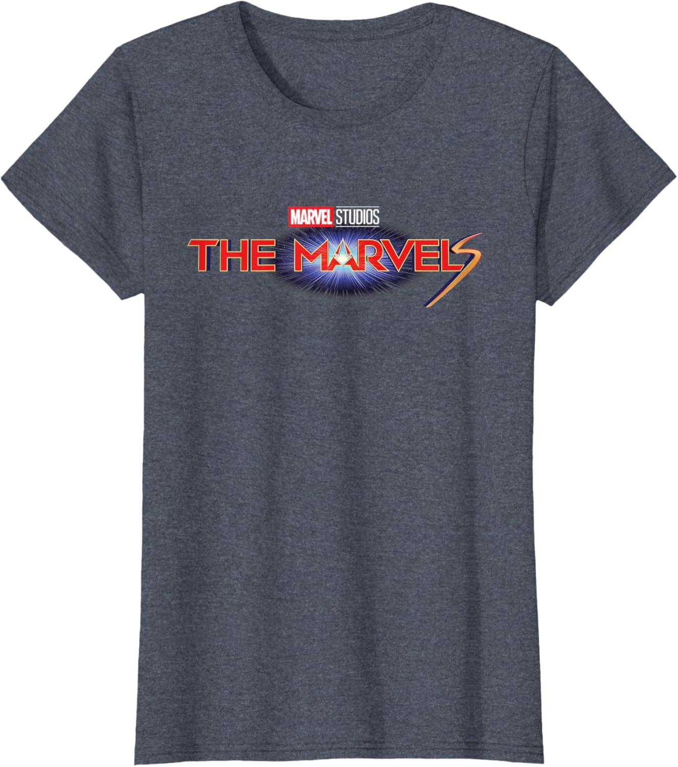 Marvel Studios The Marvels Official Movie Logo T-Shirt(Heather Blue)