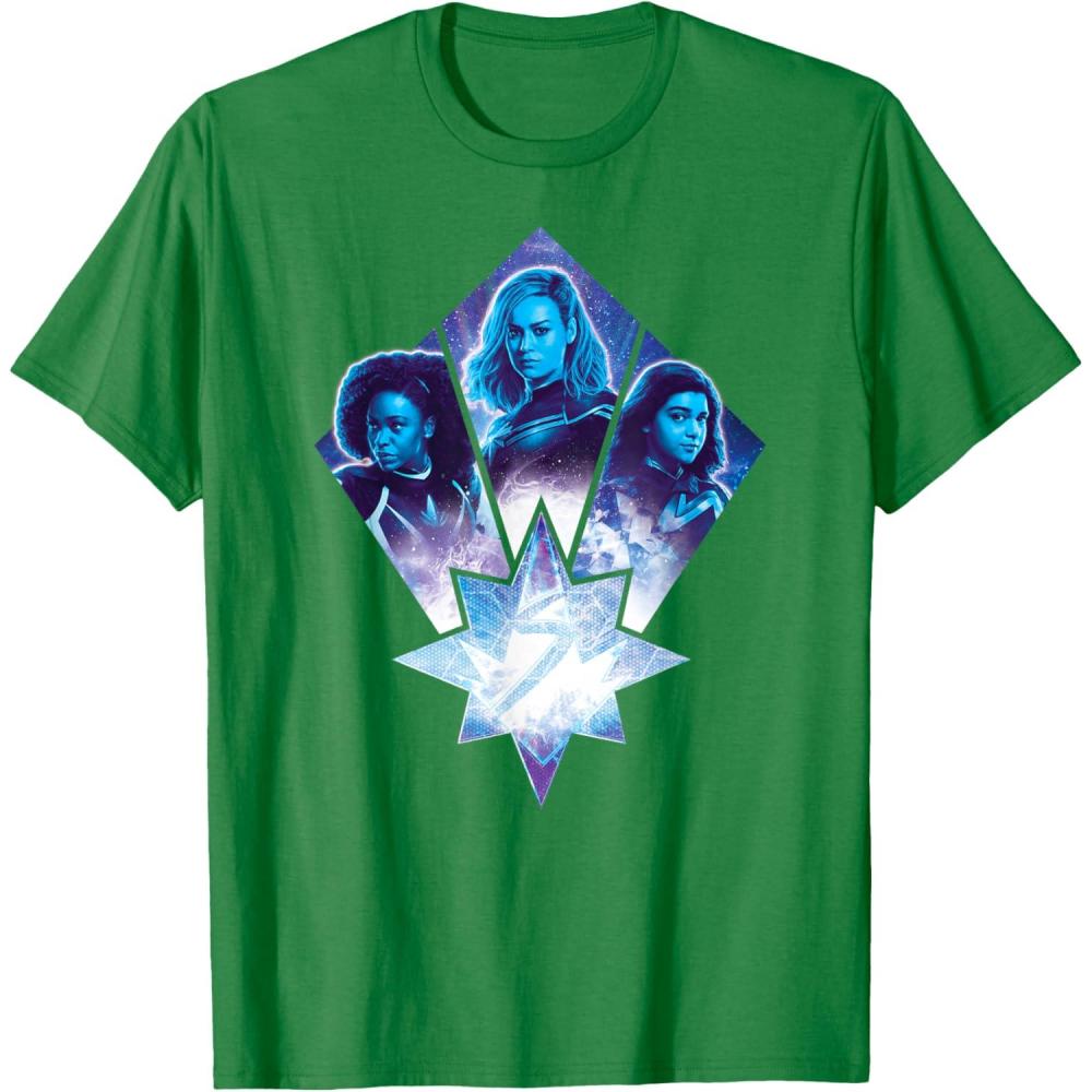 Three Marvels unite in Marvel Studios’ cosmic new movie “The Marvels”, the sequel to “Captain Marvel” and the newest exciting chapter in the Marvel Cinematic Universe! This official tee or hoodie features awesome images of Photon, Captain Marvel, and Ms. Marvel – a.k.a. Monica Rambeau (“WandaVision”), Carol Danvers (“Captain Marvel”), and Kamala Khan (“Ms. Marvel”) – along with an icon combining all three of their symbols. When these super heroes team up, incredible adventure is in store. A great gift for a fan of The Marvels or the MCU! Available in youth and adult sizes. Find it in a t-shirt, premium t-shirt, tank top, v-neck, long sleeve tee, hoodie, and sweatshirt.