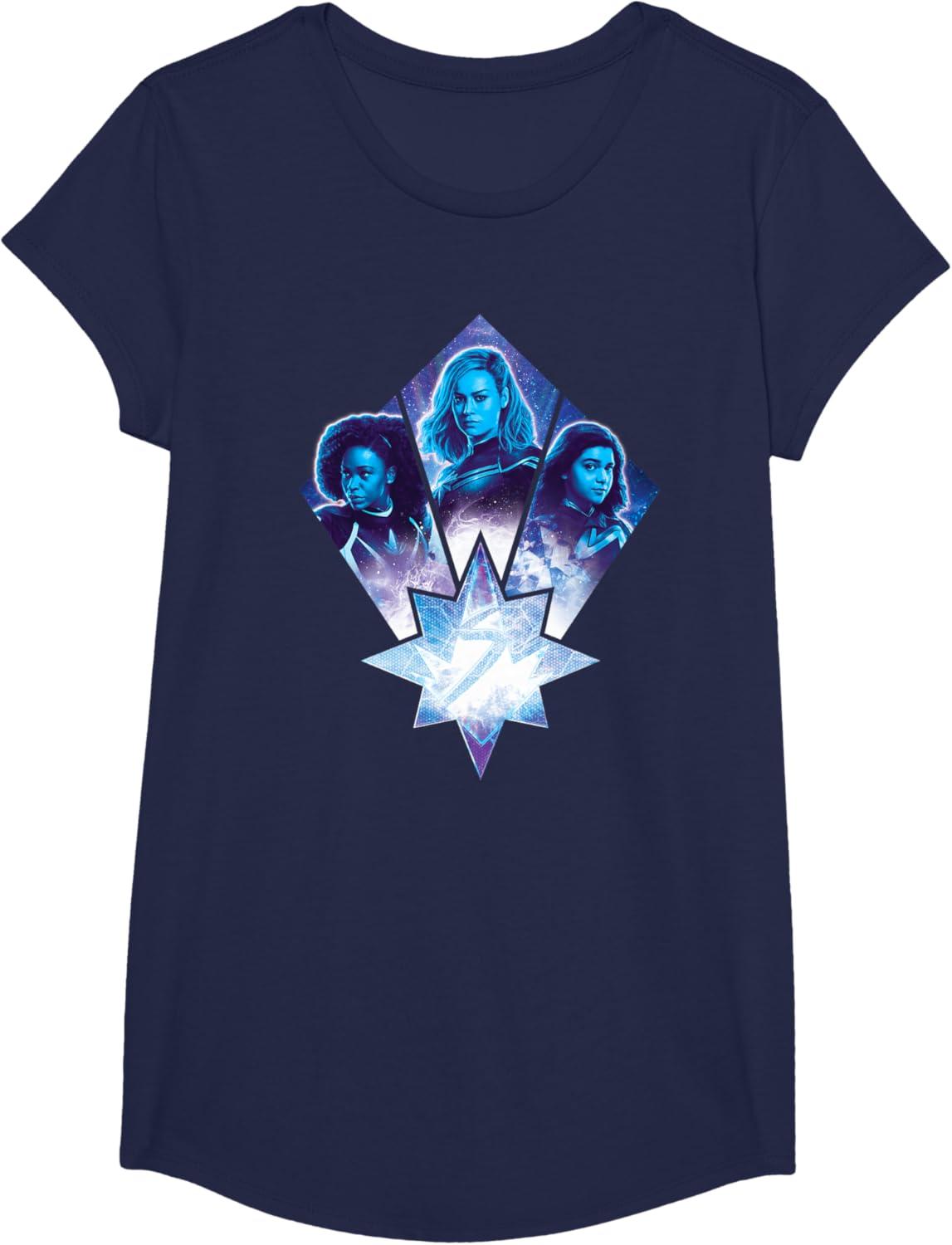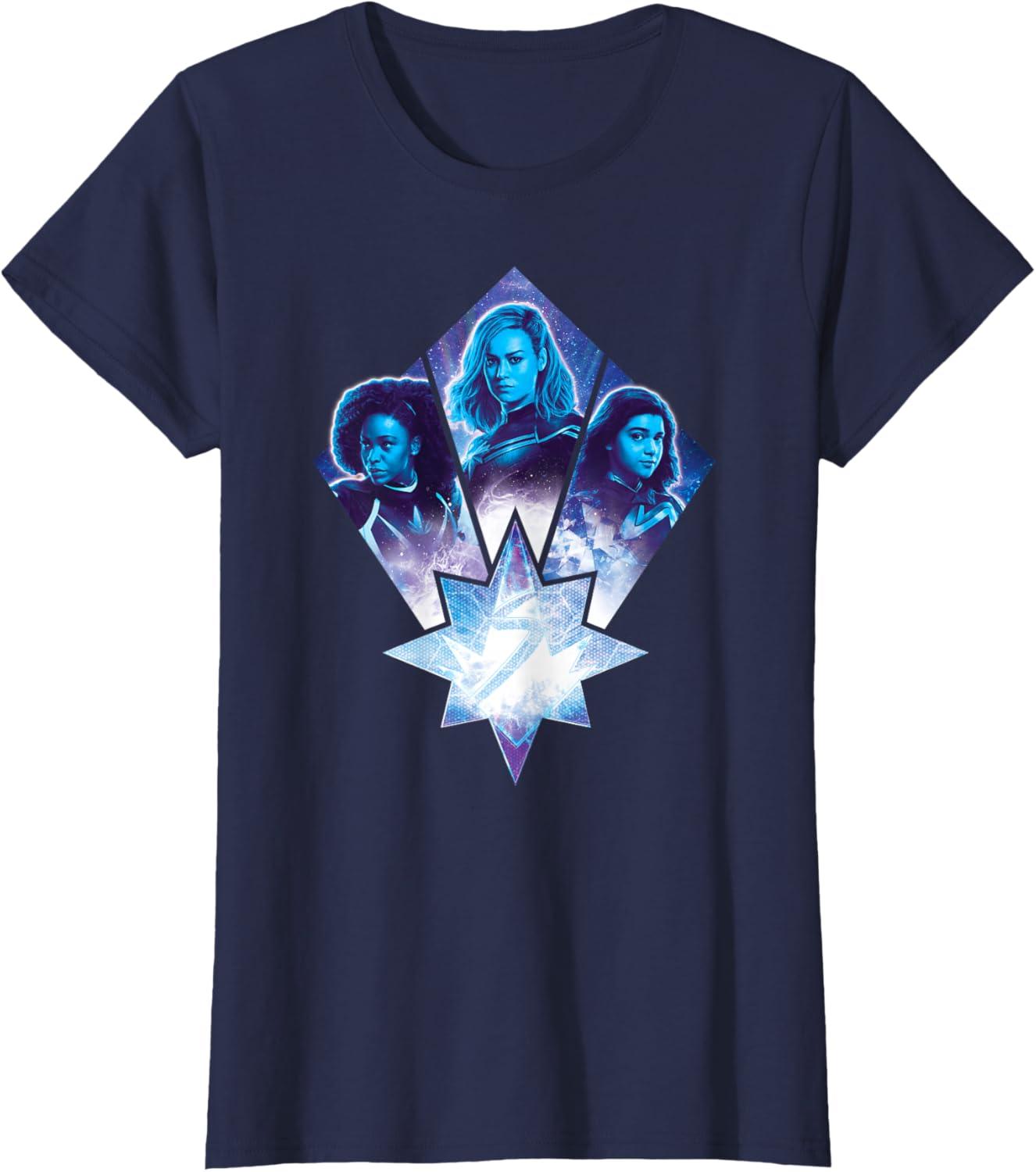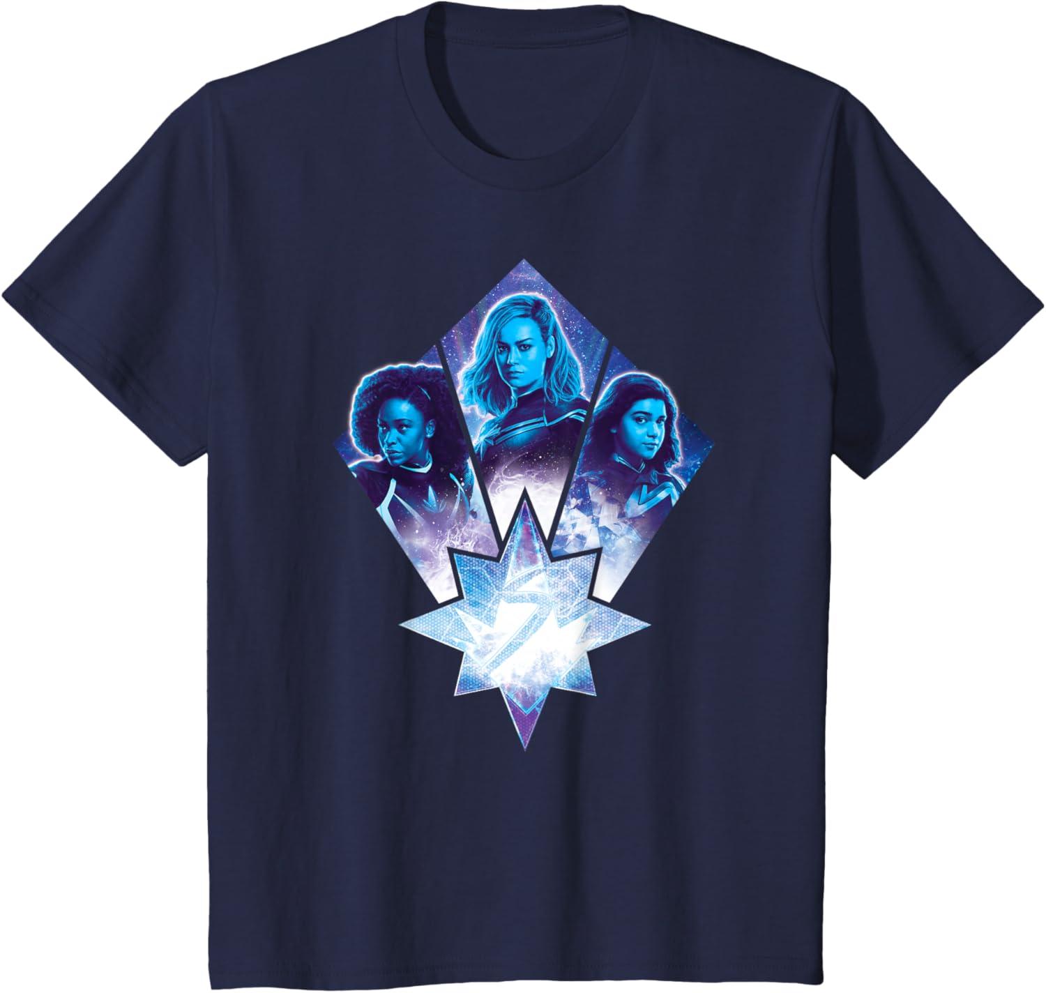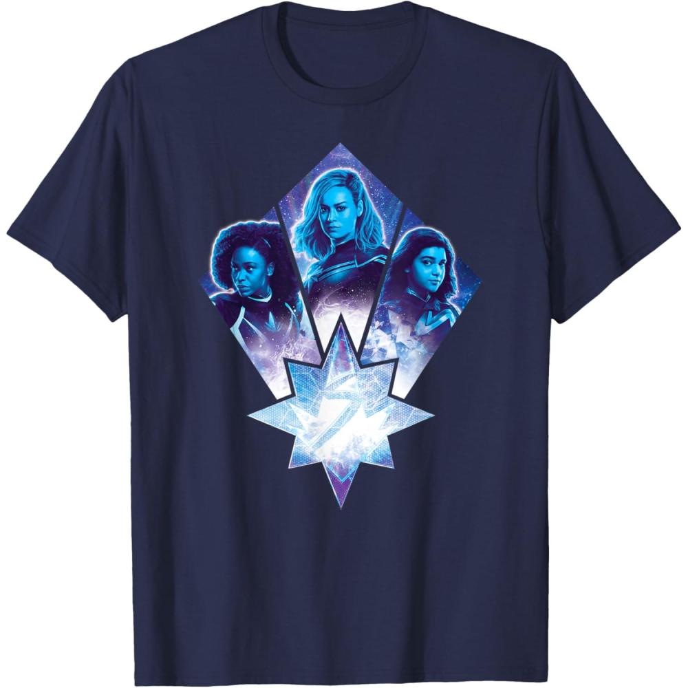 Three Marvels unite in Marvel Studios’ cosmic new movie “The Marvels”, the sequel to “Captain Marvel” and the newest exciting chapter in the Marvel Cinematic Universe! This official tee or hoodie features awesome images of Photon, Captain Marvel, and Ms. Marvel – a.k.a. Monica Rambeau (“WandaVision”), Carol Danvers (“Captain Marvel”), and Kamala Khan (“Ms. Marvel”) – along with an icon combining all three of their symbols. When these super heroes team up, incredible adventure is in store. A great gift for a fan of The Marvels or the MCU! Available in youth and adult sizes. Find it in a t-shirt, premium t-shirt, tank top, v-neck, long sleeve tee, hoodie, and sweatshirt.
