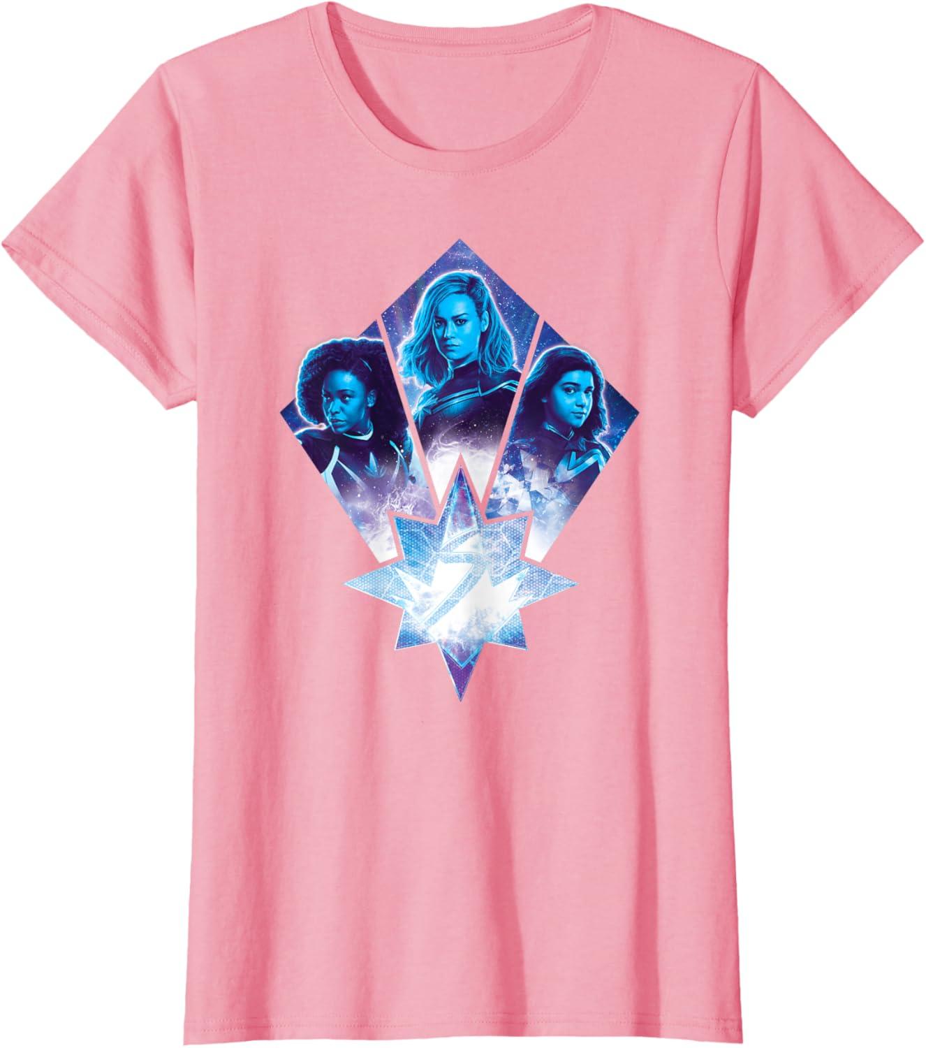 Three Marvels unite in Marvel Studios’ cosmic new movie “The Marvels”, the sequel to “Captain Marvel” and the newest exciting chapter in the Marvel Cinematic Universe! This official tee or hoodie features awesome images of Photon, Captain Marvel, and Ms. Marvel – a.k.a. Monica Rambeau (“WandaVision”), Carol Danvers (“Captain Marvel”), and Kamala Khan (“Ms. Marvel”) – along with an icon combining all three of their symbols. When these super heroes team up, incredible adventure is in store. A great gift for a fan of The Marvels or the MCU! Available in youth and adult sizes. Find it in a t-shirt, premium t-shirt, tank top, v-neck, long sleeve tee, hoodie, and sweatshirt.