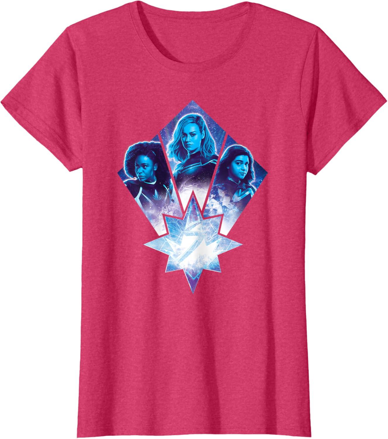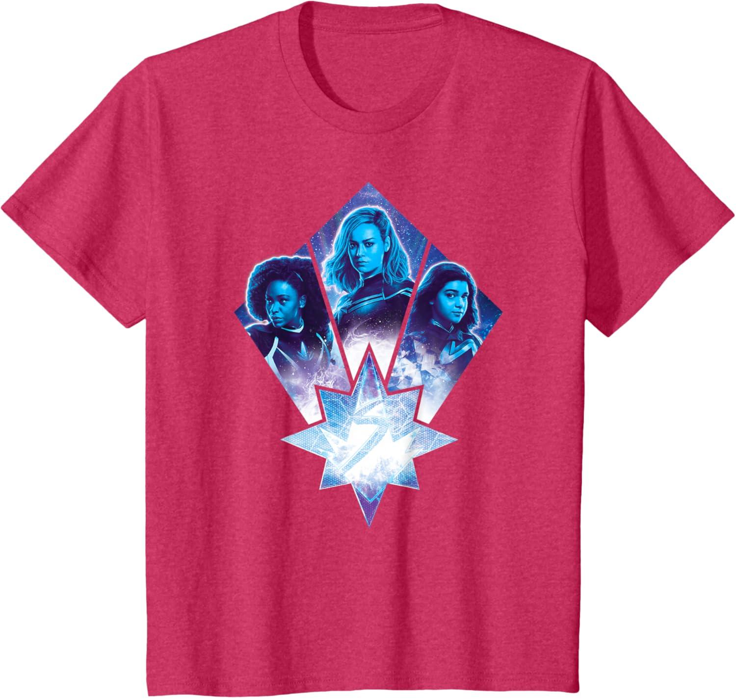 Three Marvels unite in Marvel Studios’ cosmic new movie “The Marvels”, the sequel to “Captain Marvel” and the newest exciting chapter in the Marvel Cinematic Universe! This official tee or hoodie features awesome images of Photon, Captain Marvel, and Ms. Marvel – a.k.a. Monica Rambeau (“WandaVision”), Carol Danvers (“Captain Marvel”), and Kamala Khan (“Ms. Marvel”) – along with an icon combining all three of their symbols. When these super heroes team up, incredible adventure is in store. A great gift for a fan of The Marvels or the MCU! Available in youth and adult sizes. Find it in a t-shirt, premium t-shirt, tank top, v-neck, long sleeve tee, hoodie, and sweatshirt.