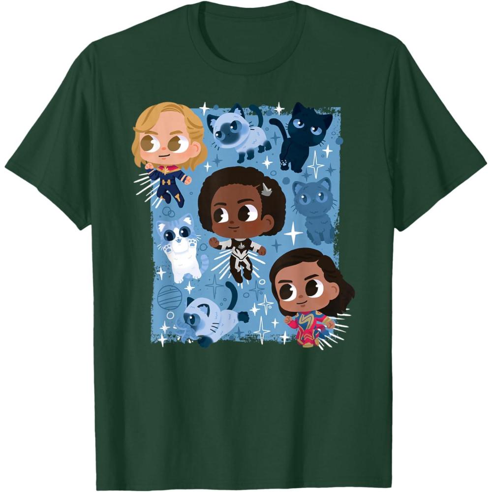 Marvel Studios The Marvels Super Heroes and Flerkittens Cute T-Shirt(Dark Green)