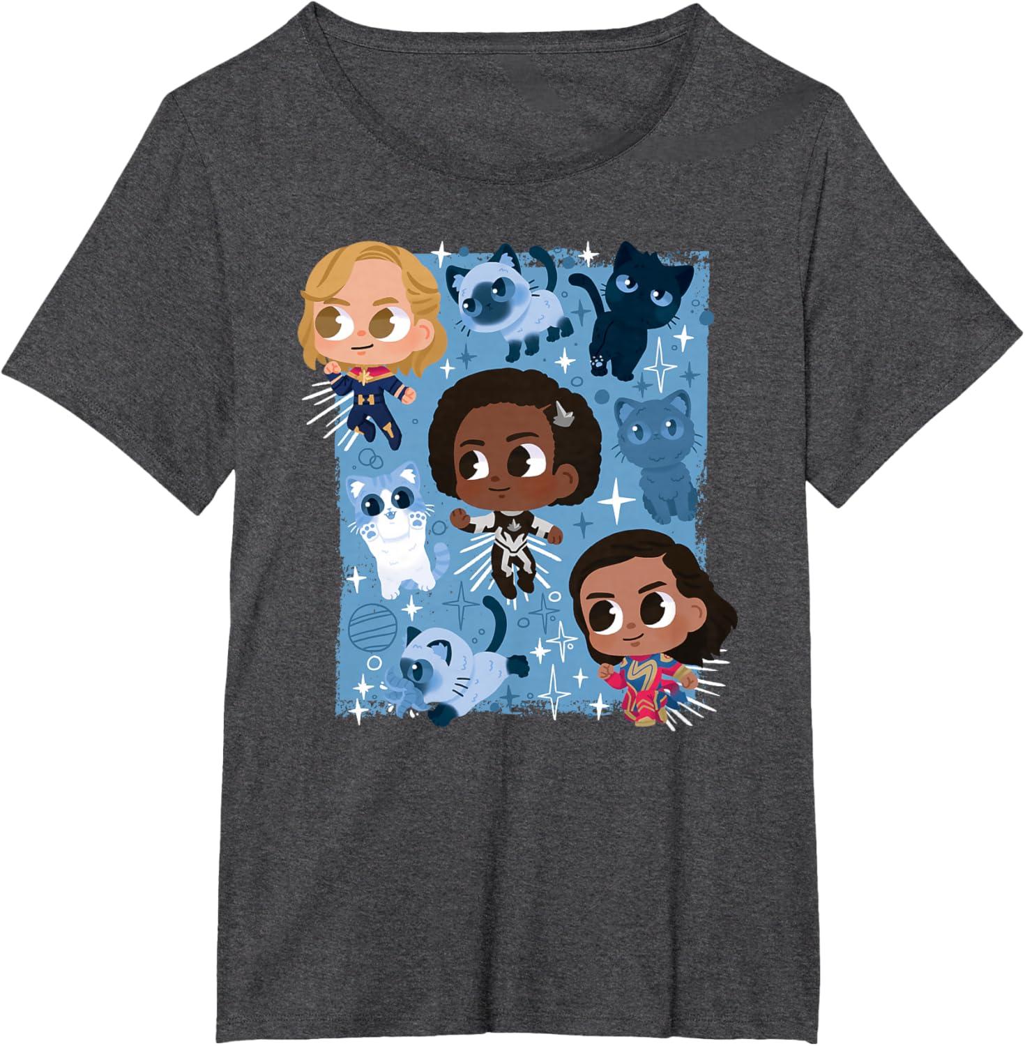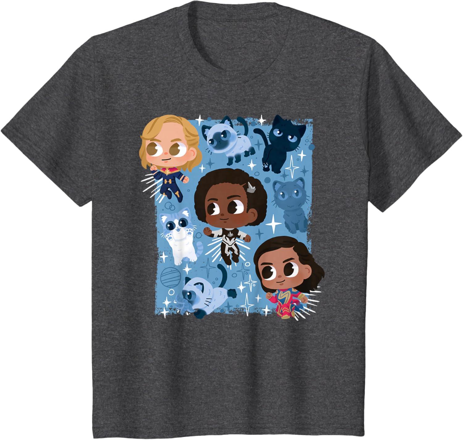 Marvel Studios The Marvels Super Heroes and Flerkittens Cute T-Shirt(Sapphire Blue)