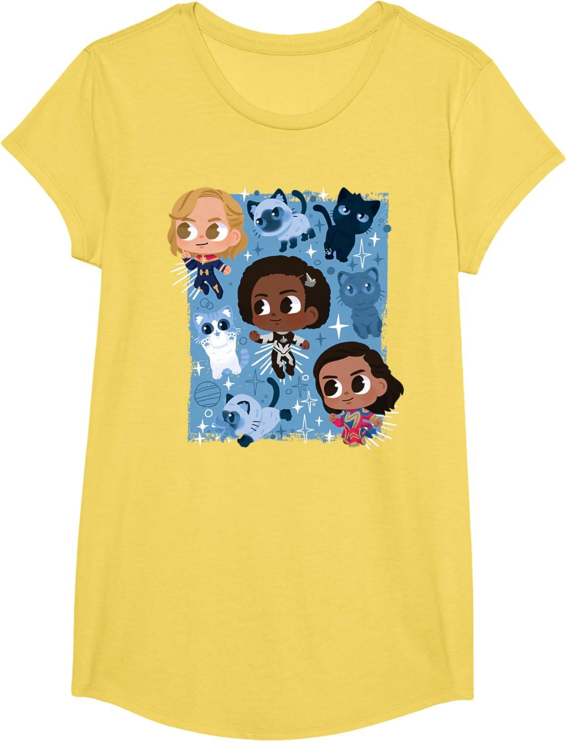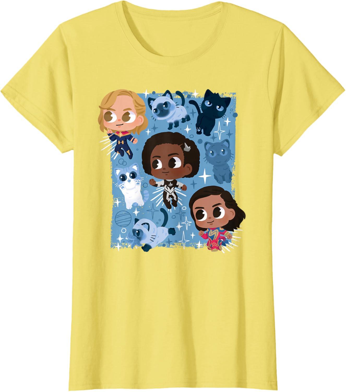 Marvel Studios The Marvels Super Heroes and Flerkittens Cute T-Shirt(Lemon Yellow)