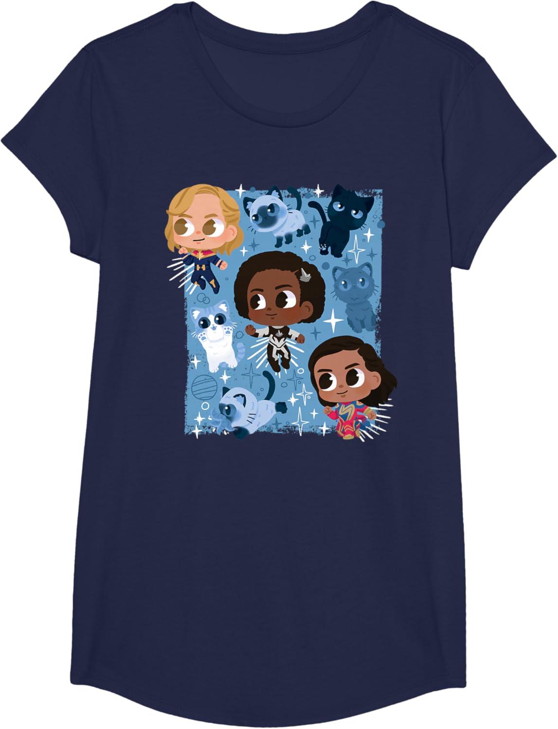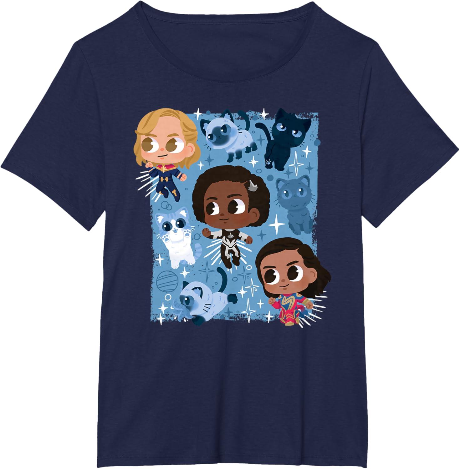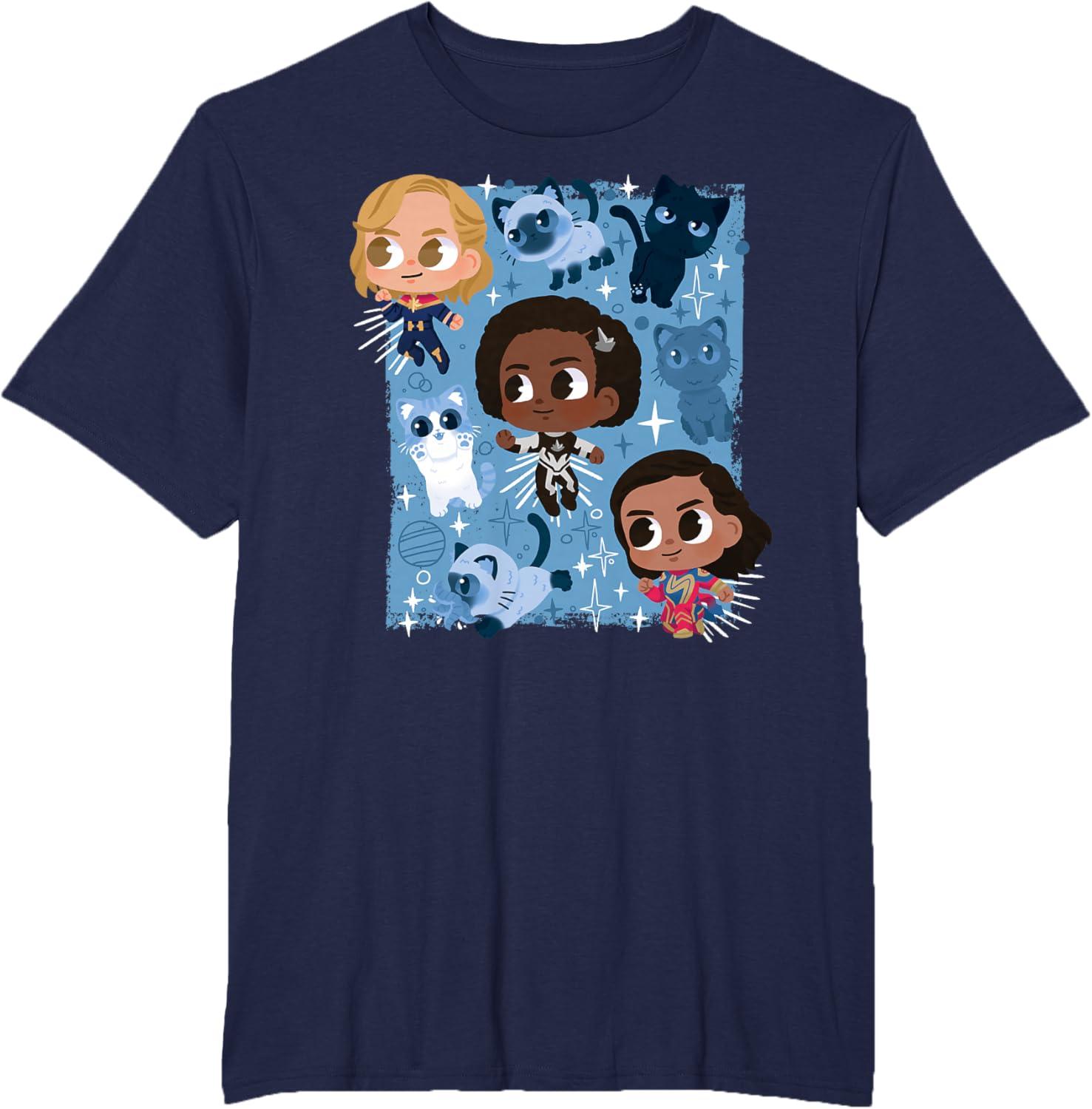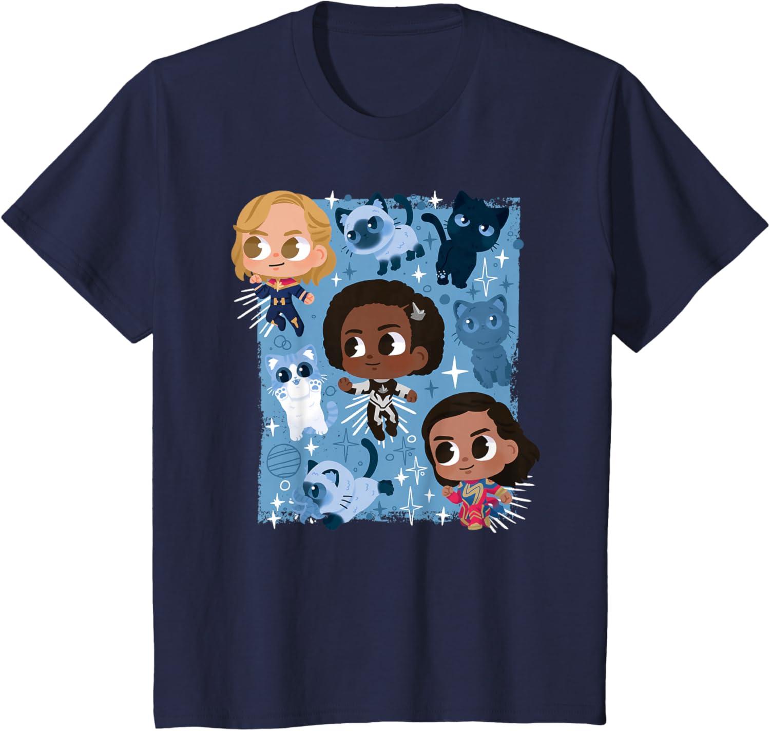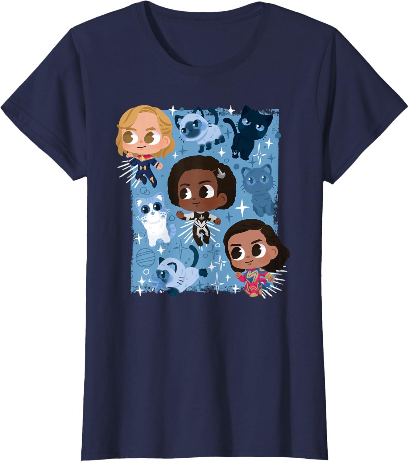Marvel Studios The Marvels Super Heroes and Flerkittens Cute T-Shirt(Navy Blue)