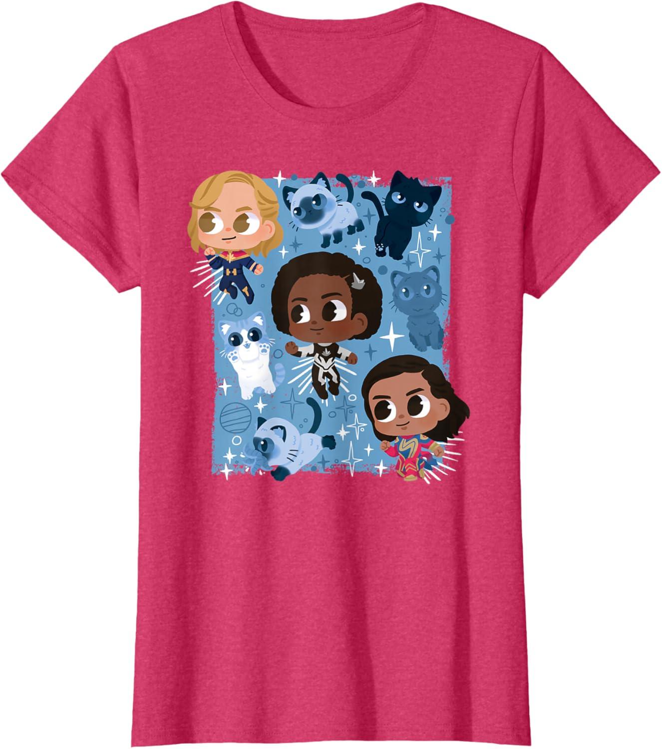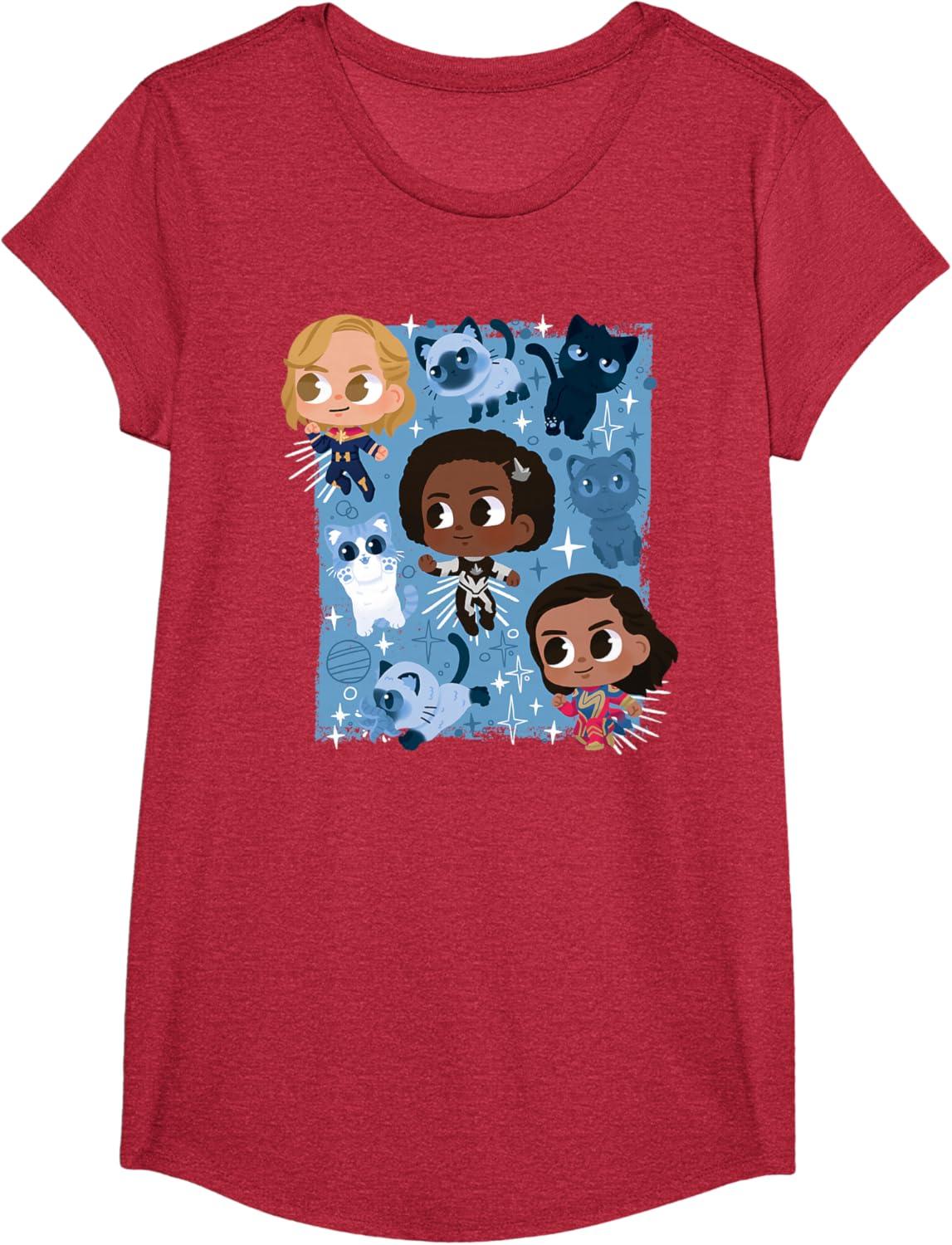 Marvel Studios The Marvels Super Heroes and Flerkittens Cute T-Shirt(Red Heather)