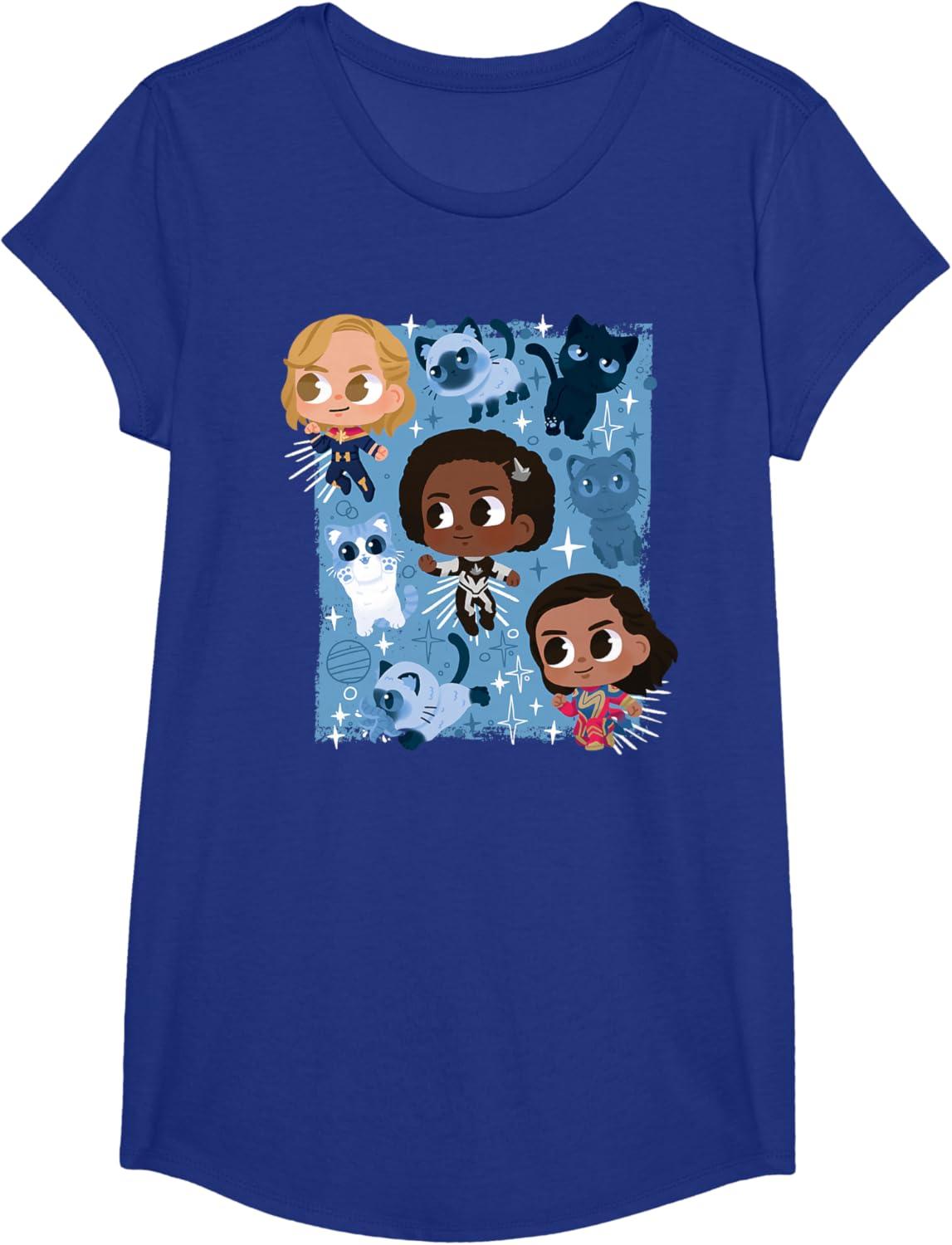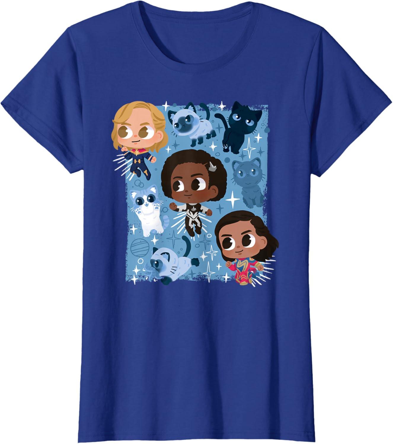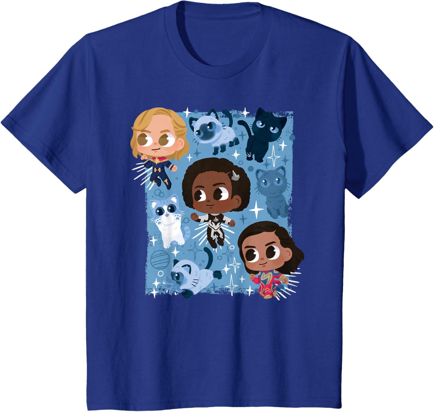 Marvel Studios The Marvels Super Heroes and Flerkittens Cute T-Shirt(Royal Blue)