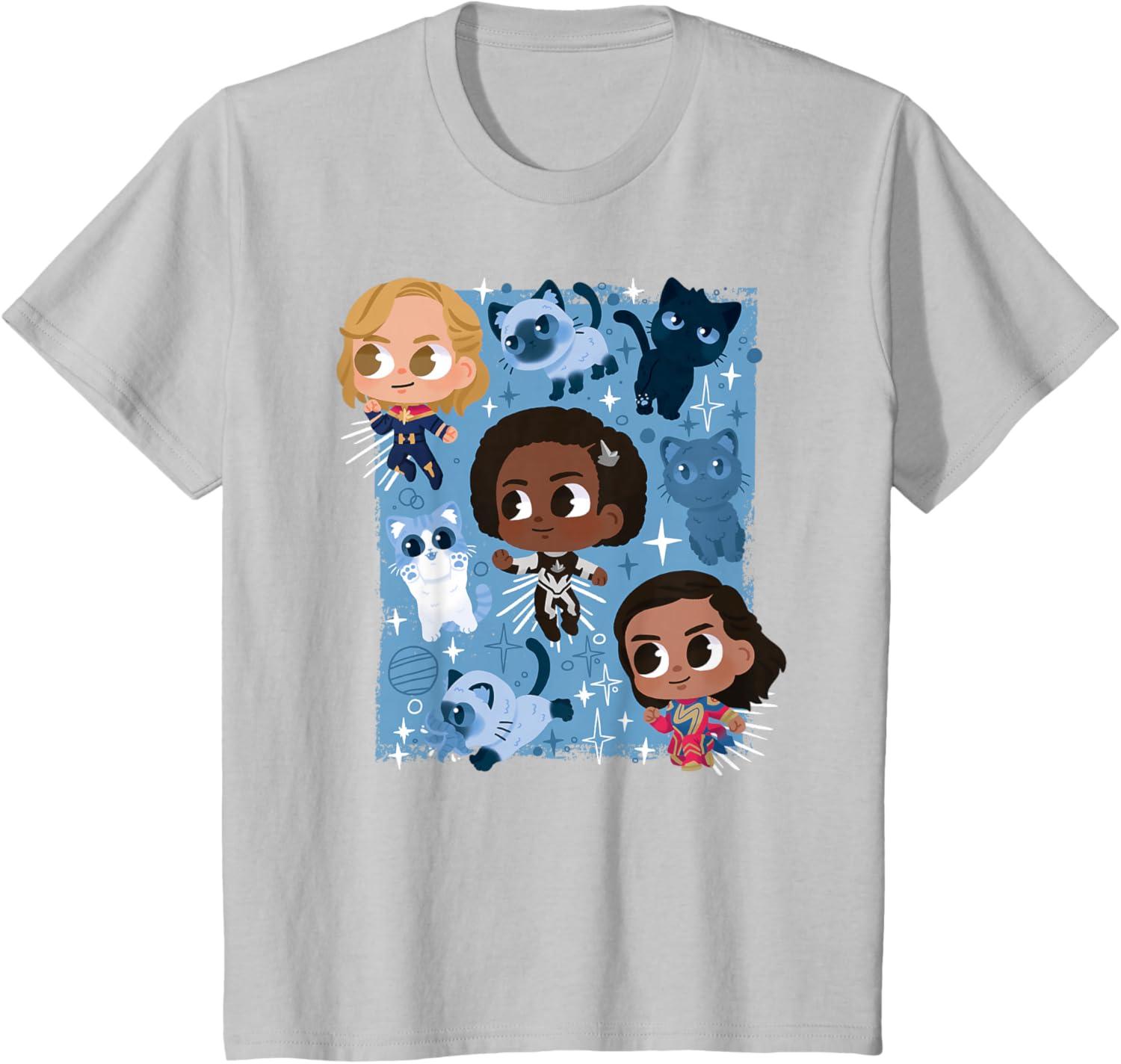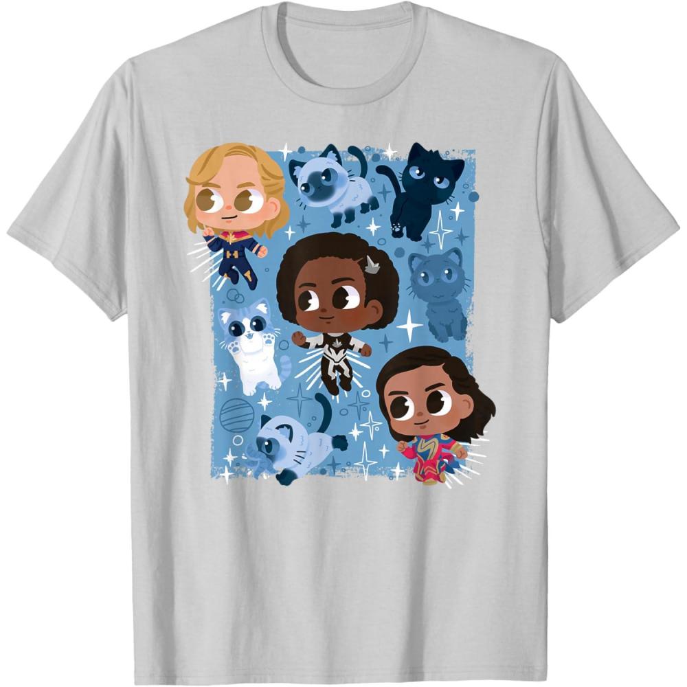 Marvel Studios The Marvels Super Heroes and Flerkittens Cute T-Shirt(Silver Grey)