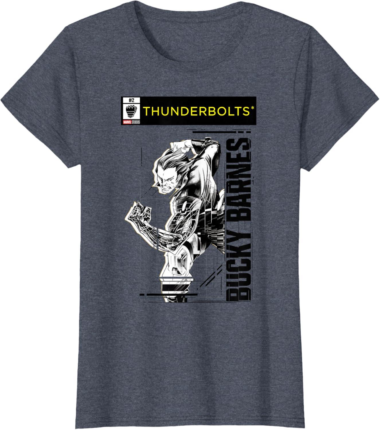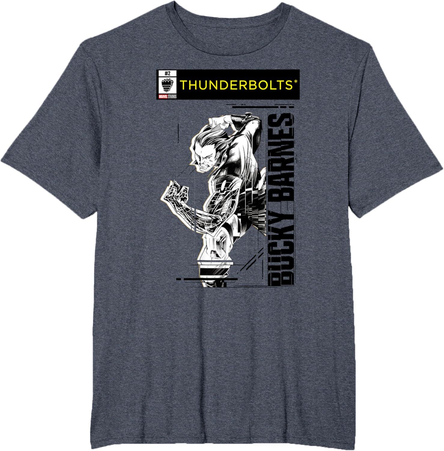 Marvel Studios Thunderbolts Bucky Barnes B&W Comic Cover #2 T-Shirt(Heather Blue)